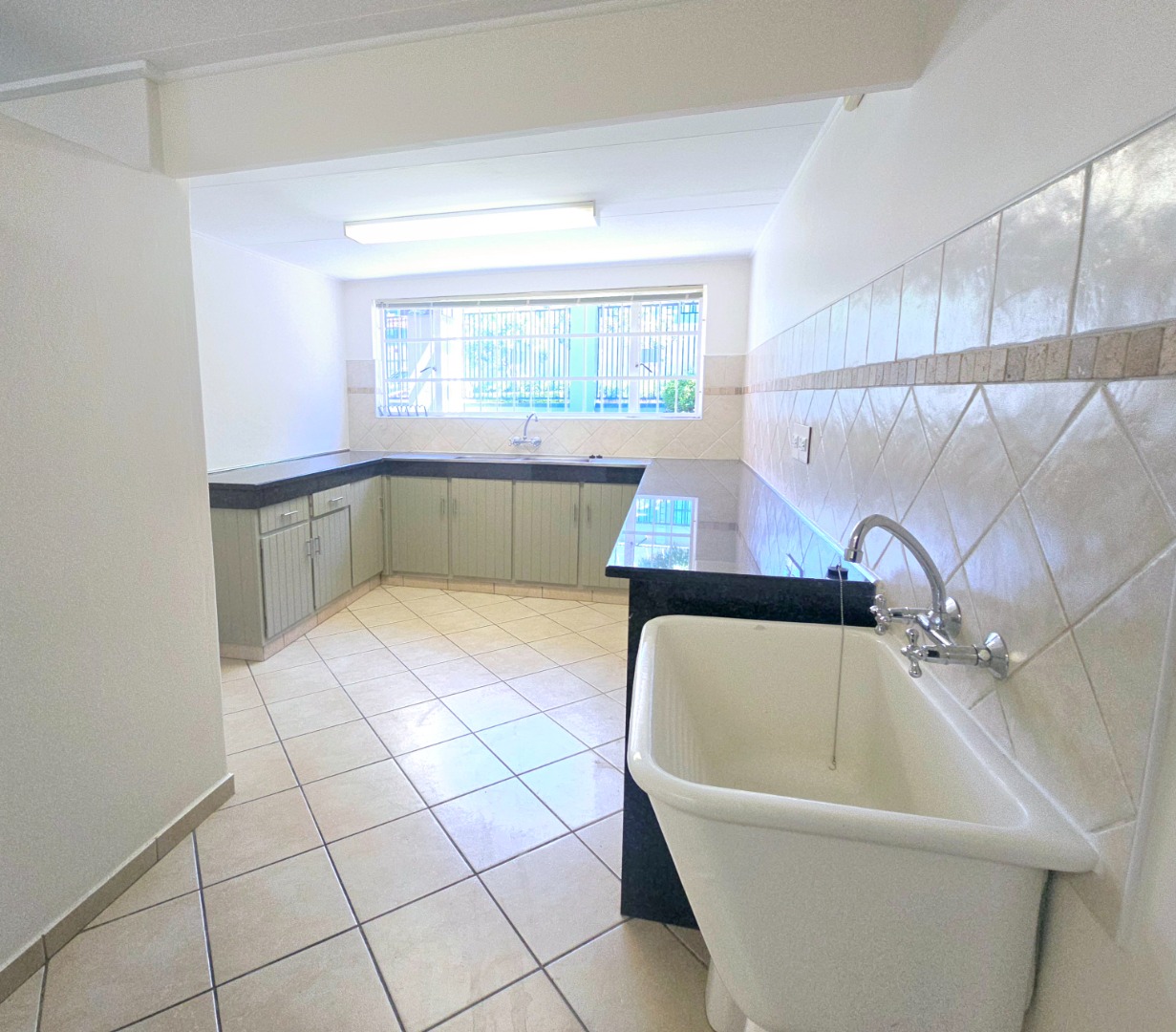 The heart of the home is a modern kitchen, two electrical ovens, space for a double fridge and stylish pendant lighting over a practical breakfast bar. Ample cabinetry and tiled flooring ensure both aesthetic appeal and ease of maintenance. The scullery offers space for three appliances.