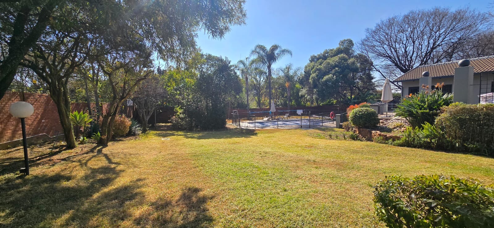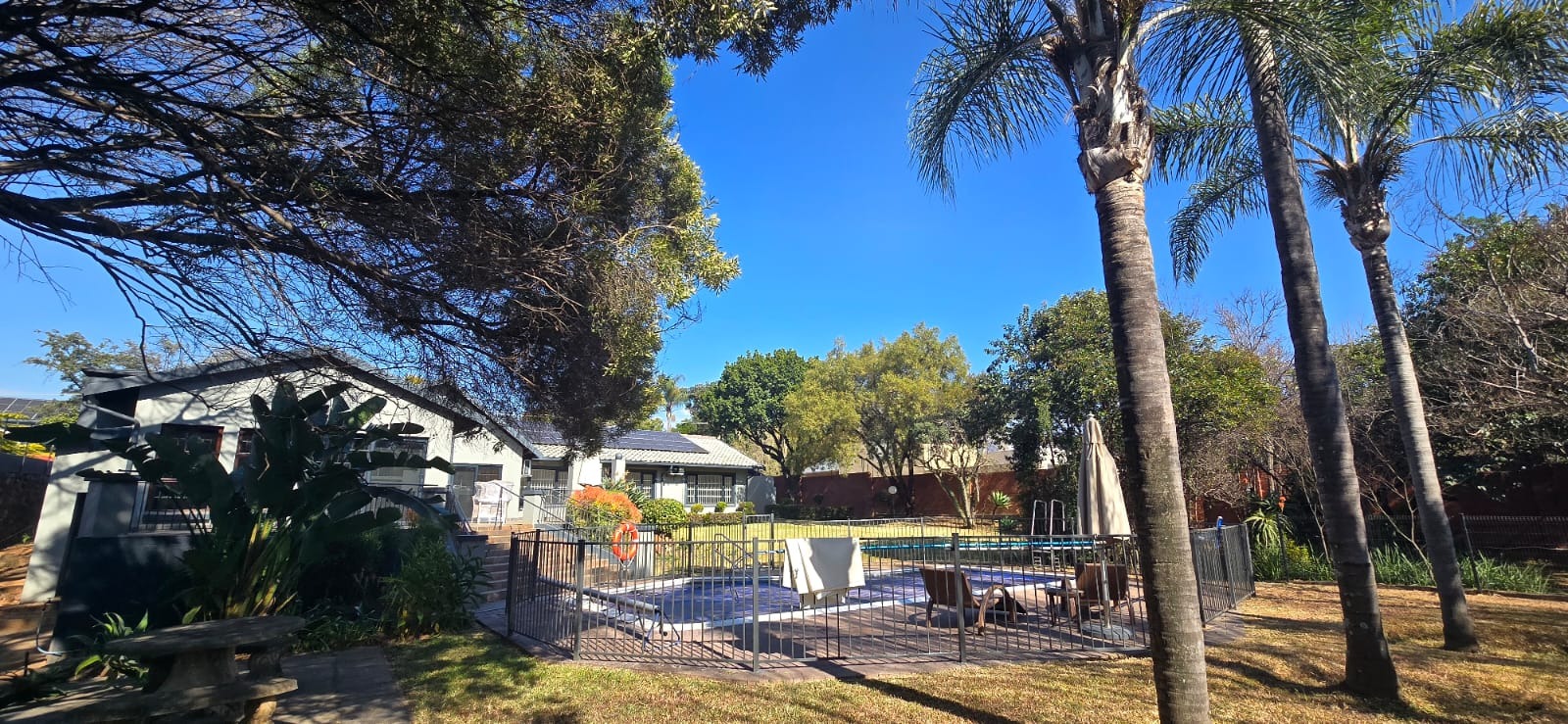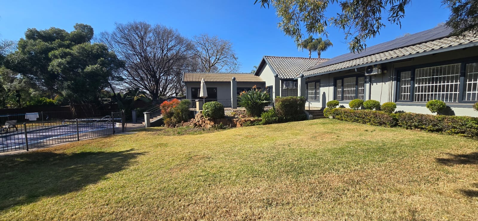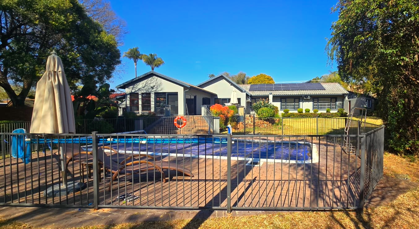 Step outside to embrace a lifestyle of leisure and outdoor enjoyment. The expansive, well-maintained garden, complete with an irrigation system and mature trees, provides a serene backdrop. A fenced swimming pool invites relaxation, while the elevated deck and patio areas, featuring a built-in braai, are perfect for alfresco dining and entertaining. Paved pathways and water tanks add to the property's functionality. Parking is abundant with two garages and four additional parking spaces, alongside dedicated staff quarters and domestic rooms.