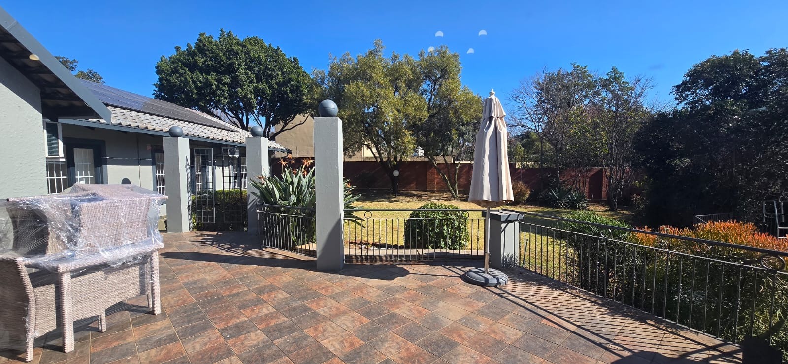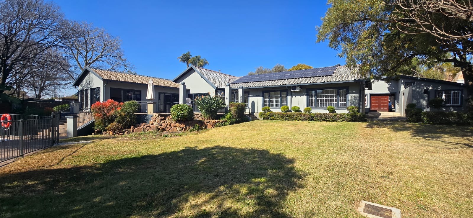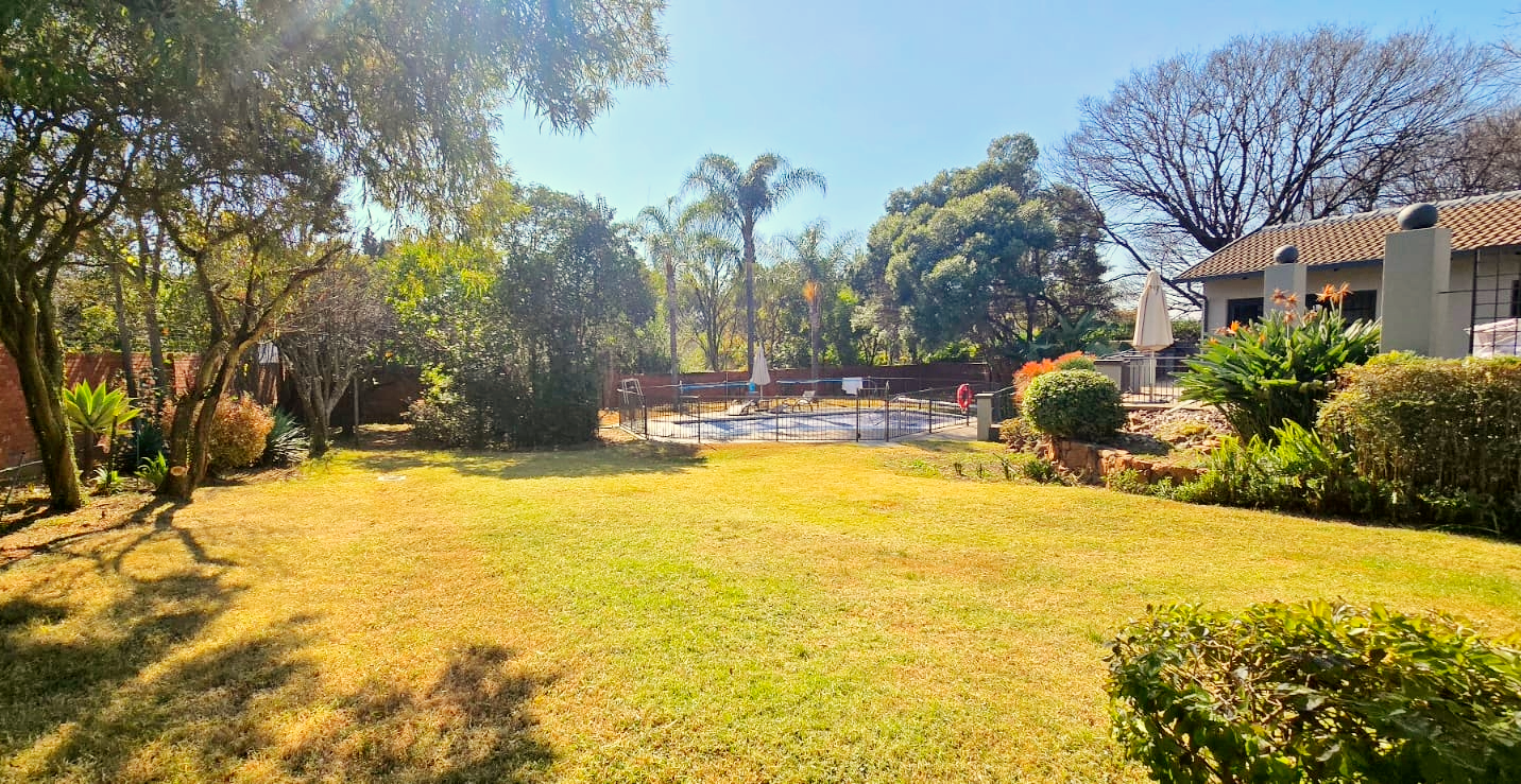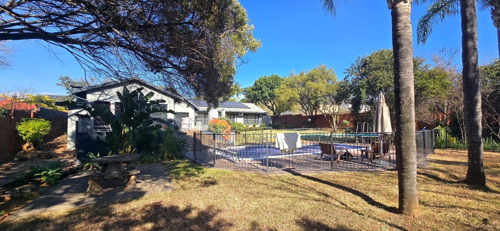 Step outside to embrace a lifestyle of leisure and outdoor enjoyment. The expansive, well-maintained garden, complete with an irrigation system and mature trees, provides a serene backdrop. A fenced swimming pool invites relaxation, while the elevated deck and patio areas, featuring a built-in braai, are perfect for alfresco dining and entertaining. Paved pathways and water tanks add to the property's functionality. Parking is abundant with two garages and four additional parking spaces, alongside dedicated staff quarters and domestic rooms.