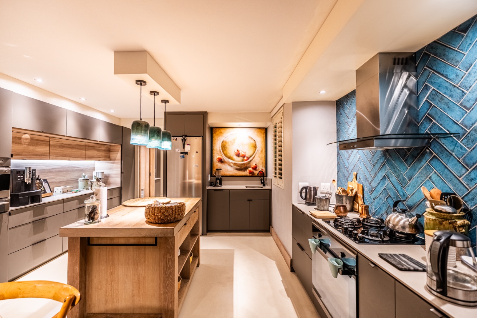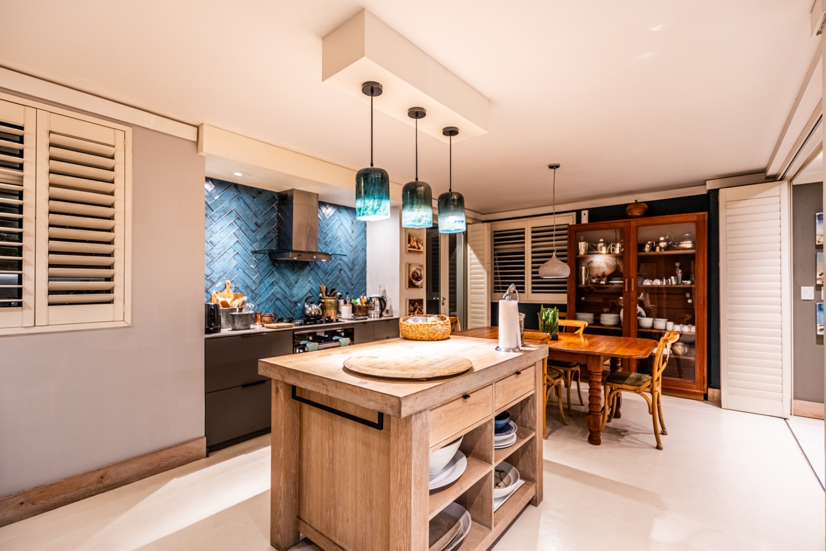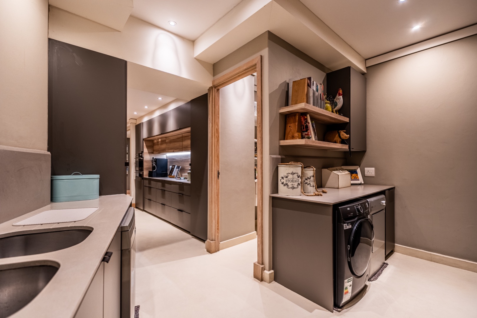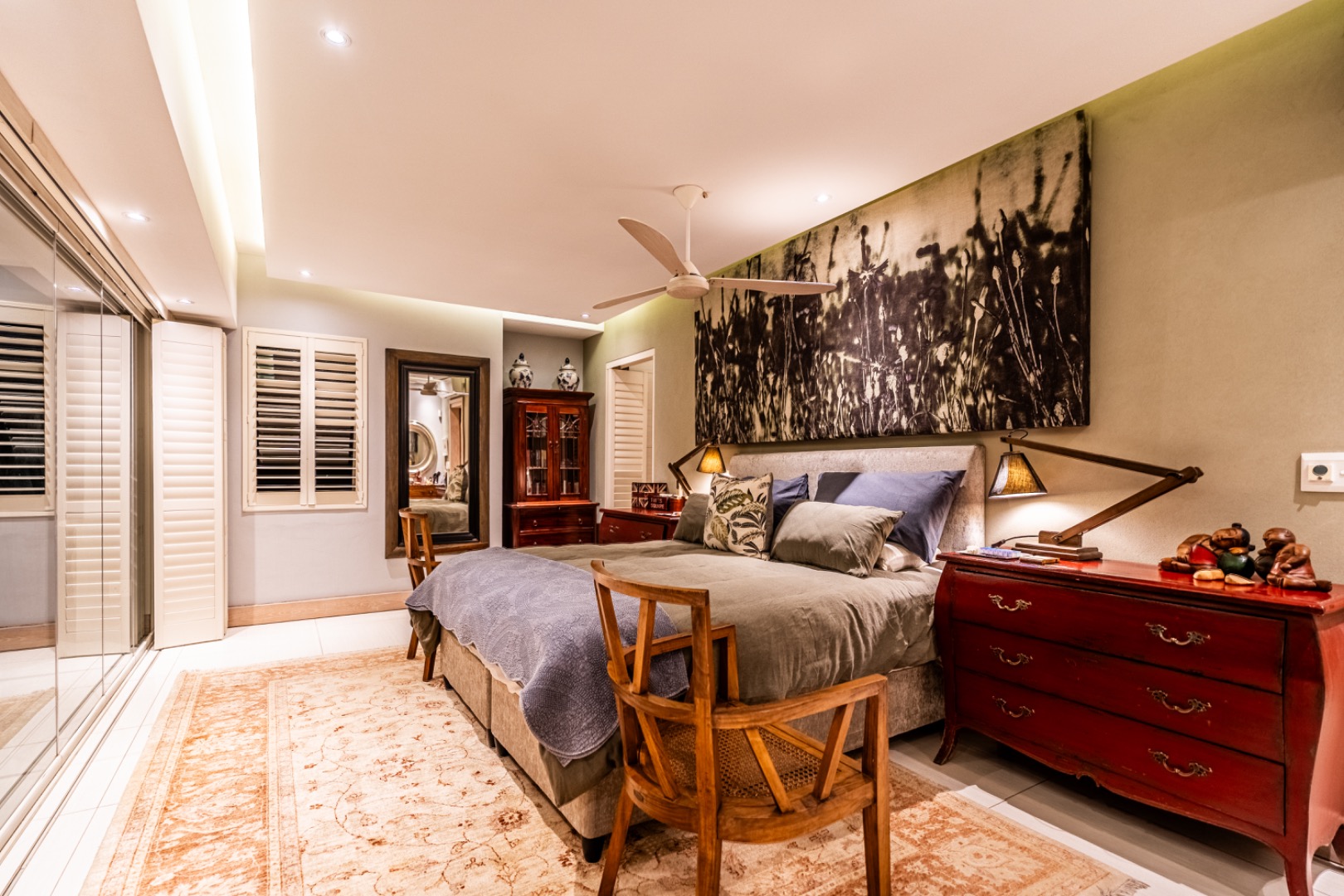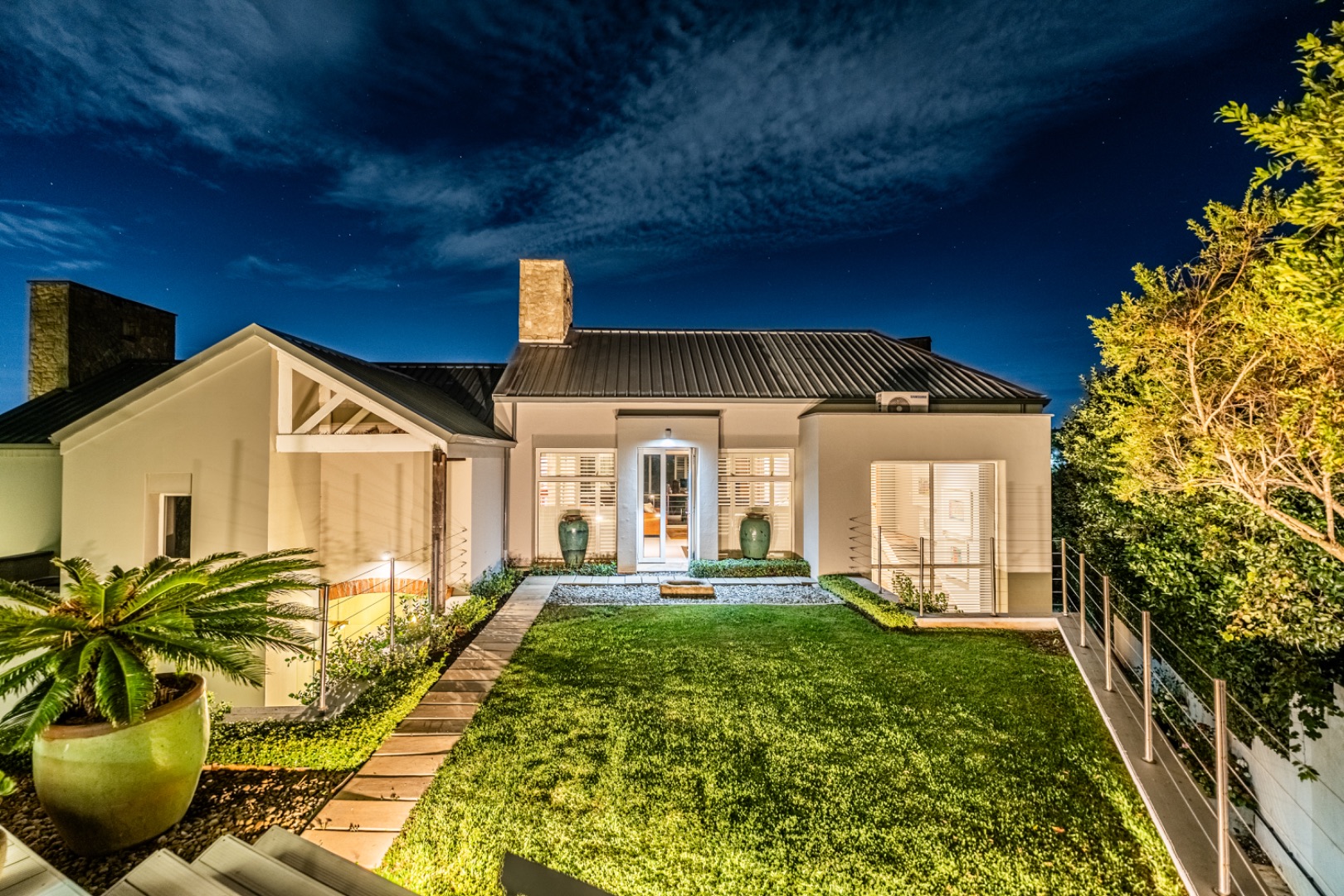 The home is thoughtfully equipped for sustainability and convenience, including four 5,000-litre rainwater harvesting tanks, a comprehensive solar power system, and a generator for uninterrupted living.