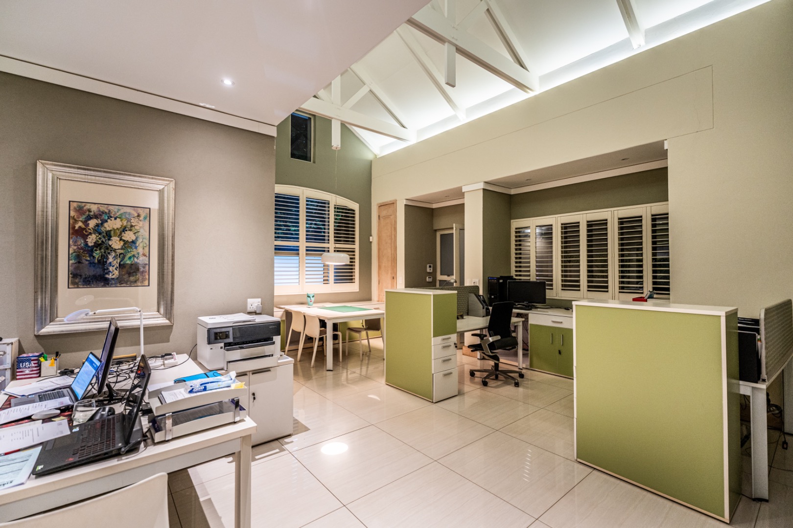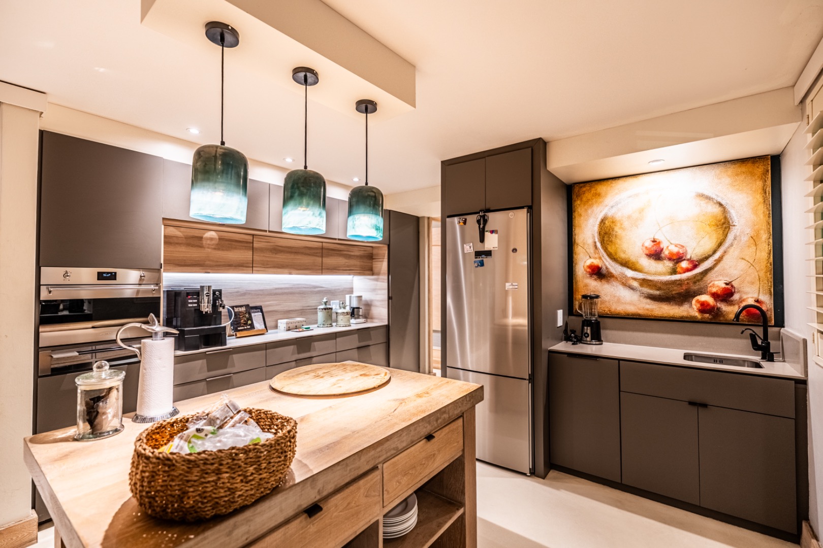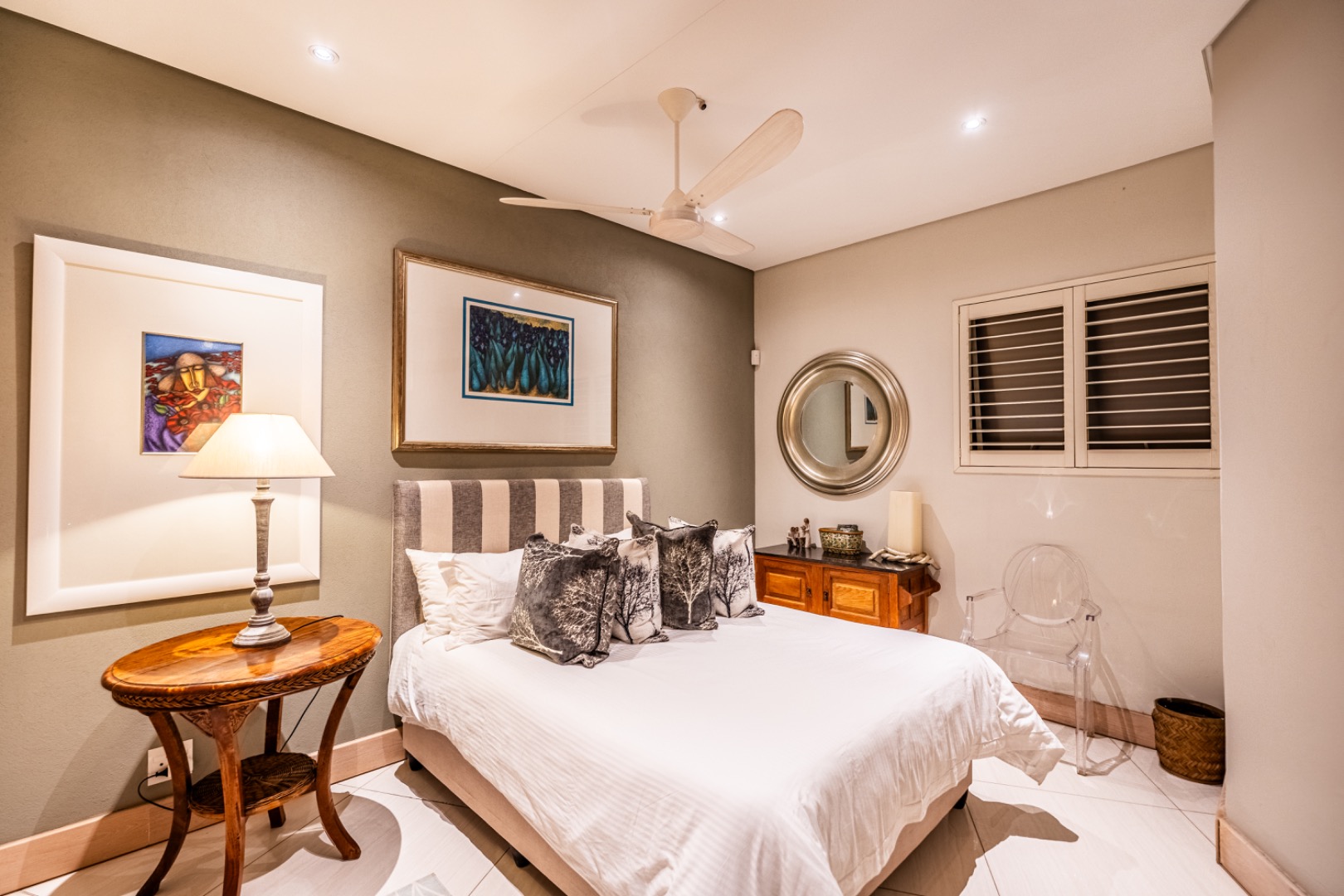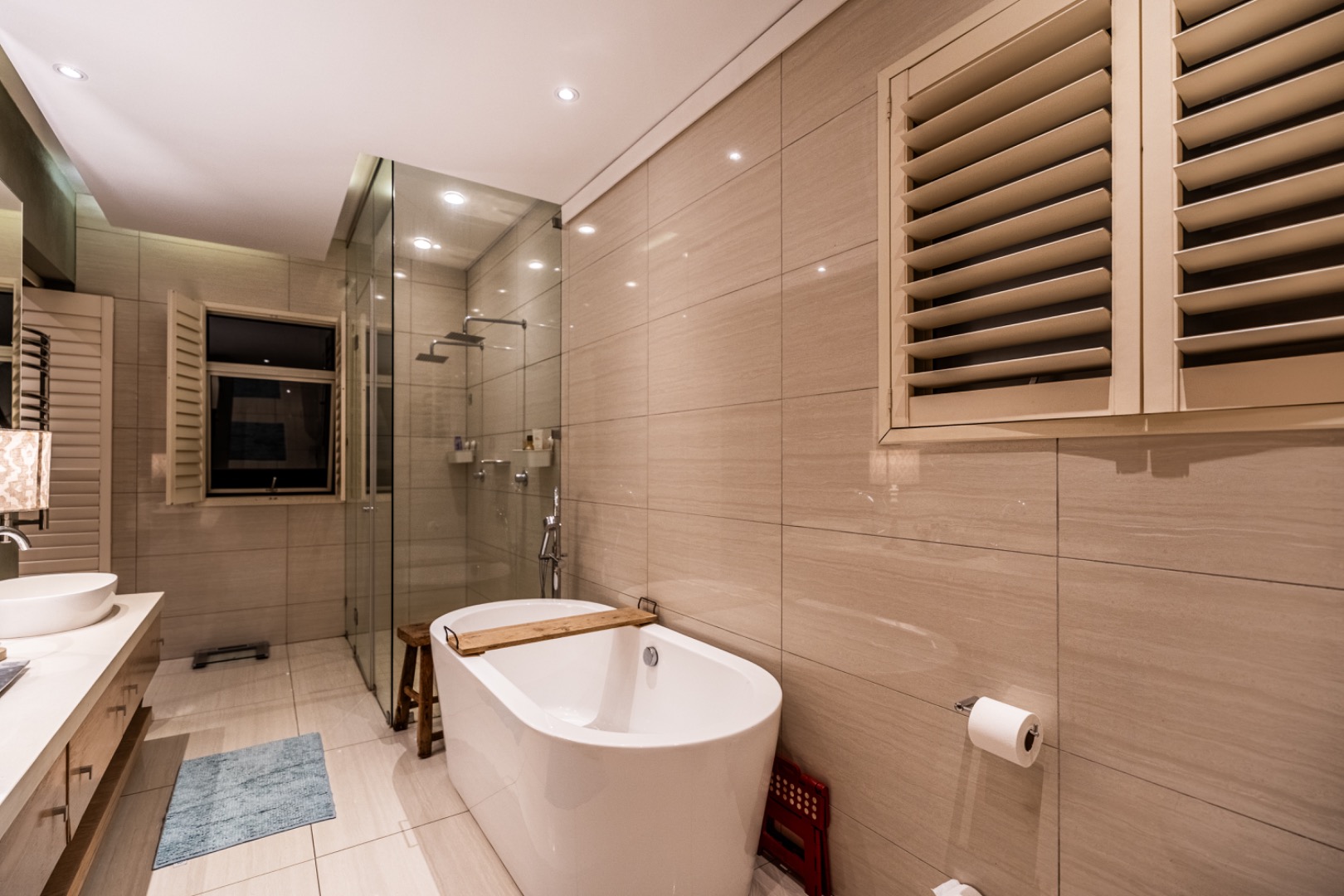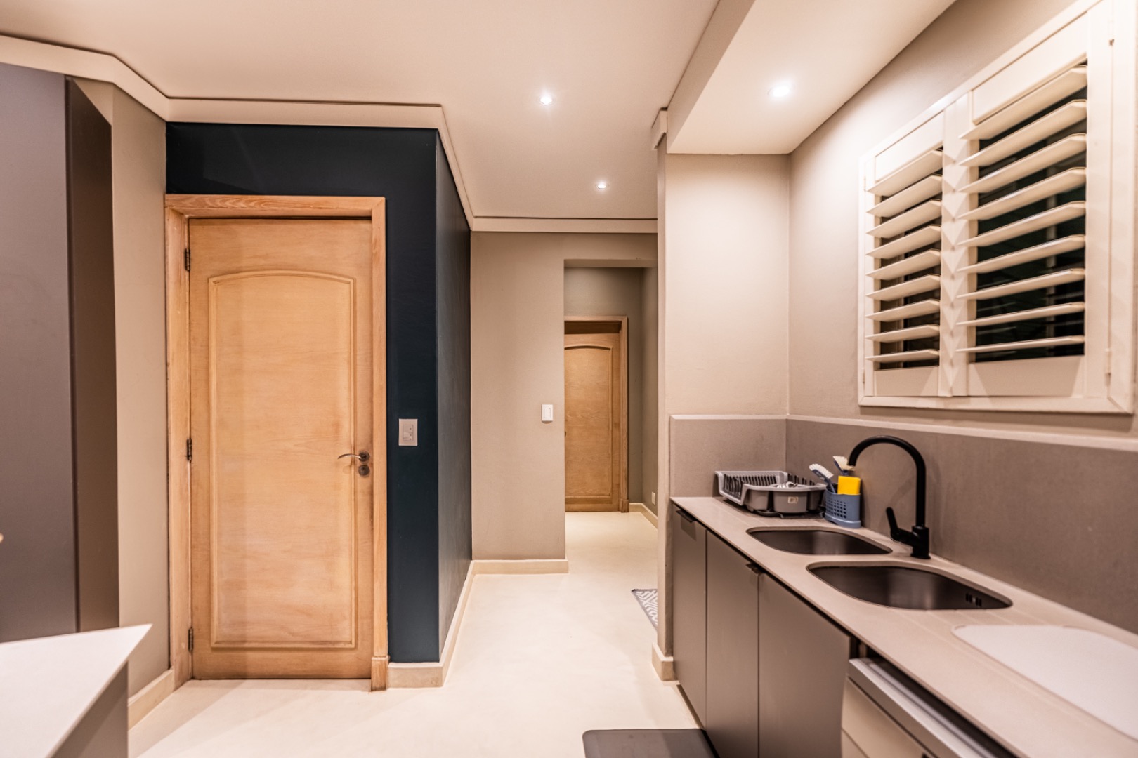 The home is thoughtfully equipped for sustainability and convenience, including four 5,000-litre rainwater harvesting tanks, a comprehensive solar power system, and a generator for uninterrupted living.