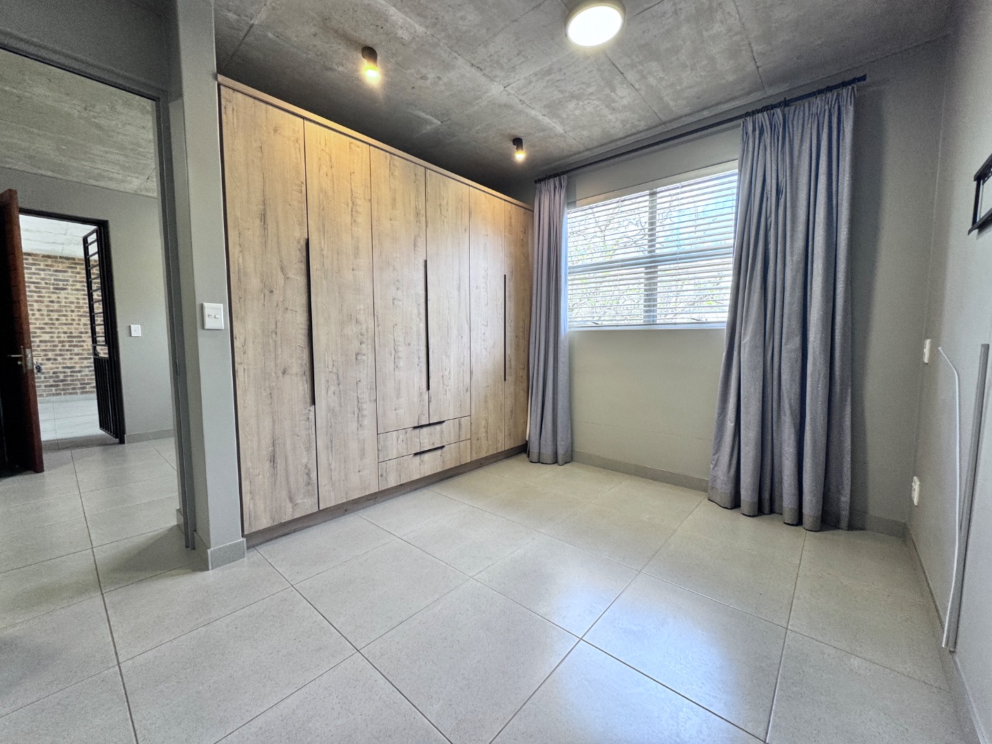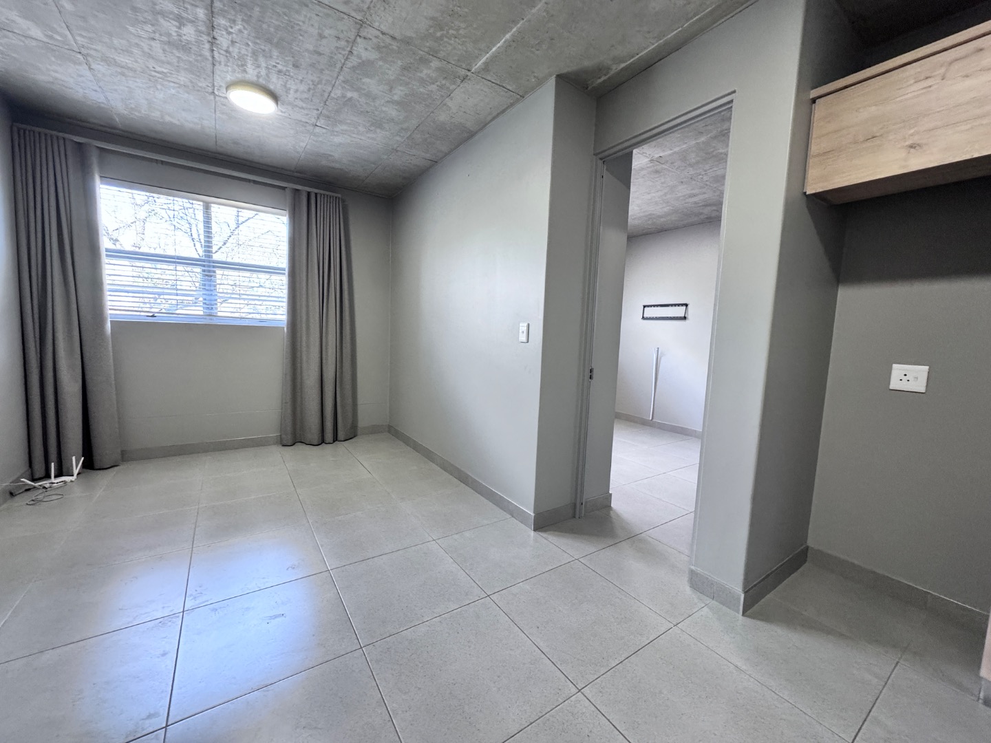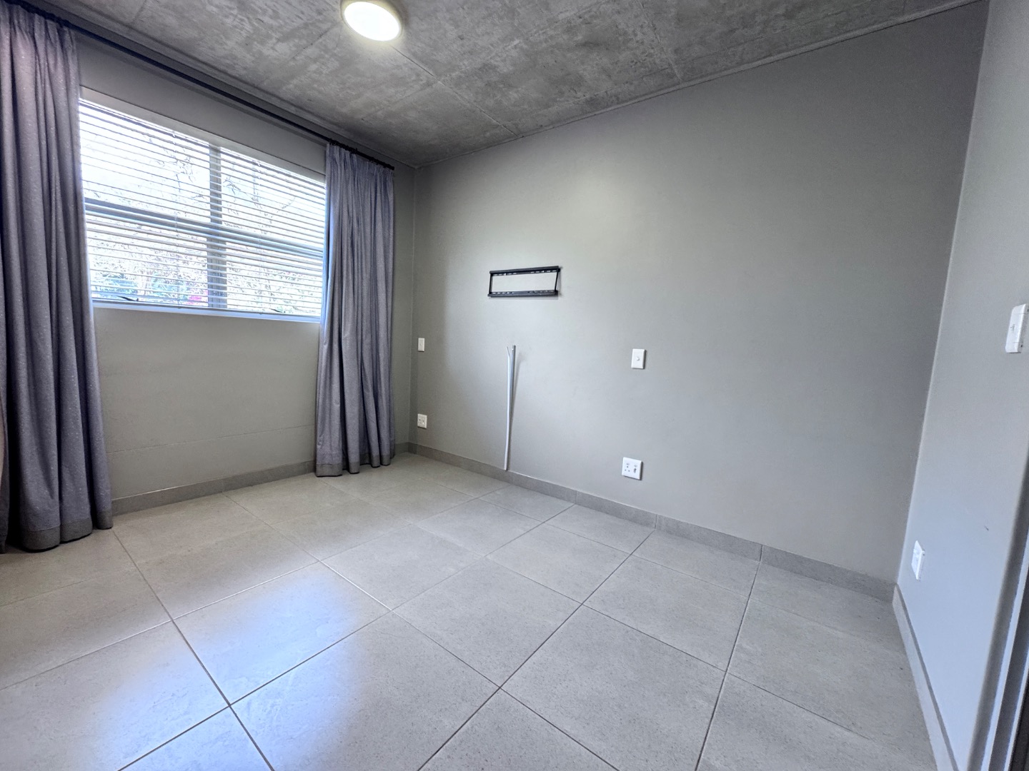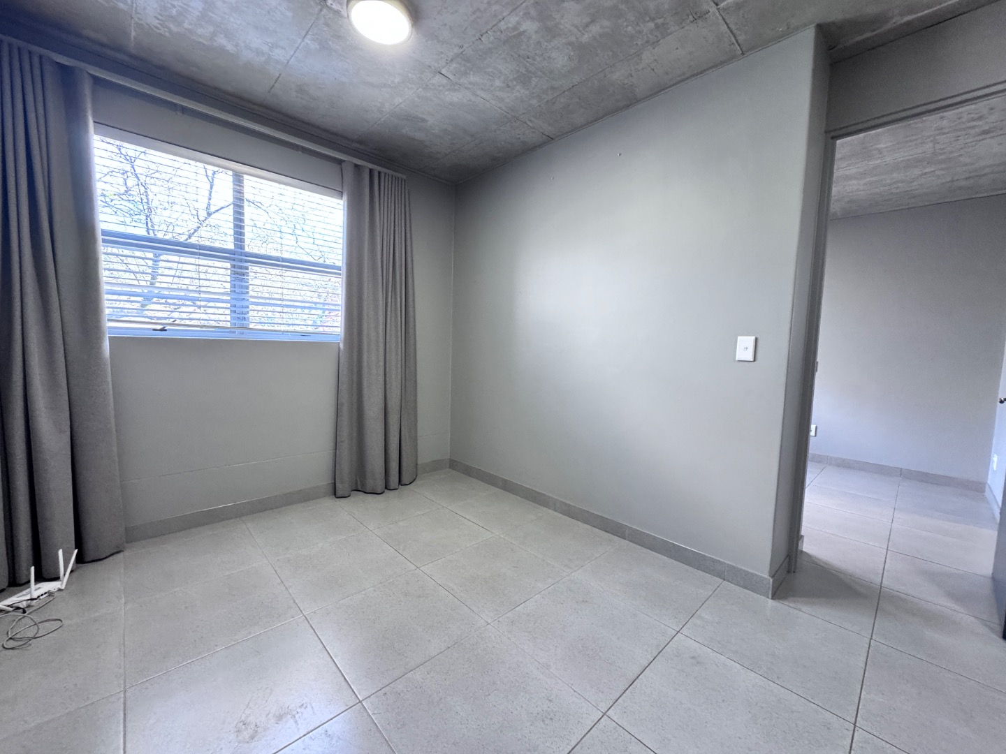 * Exposed concrete ceilings and tiled flooring