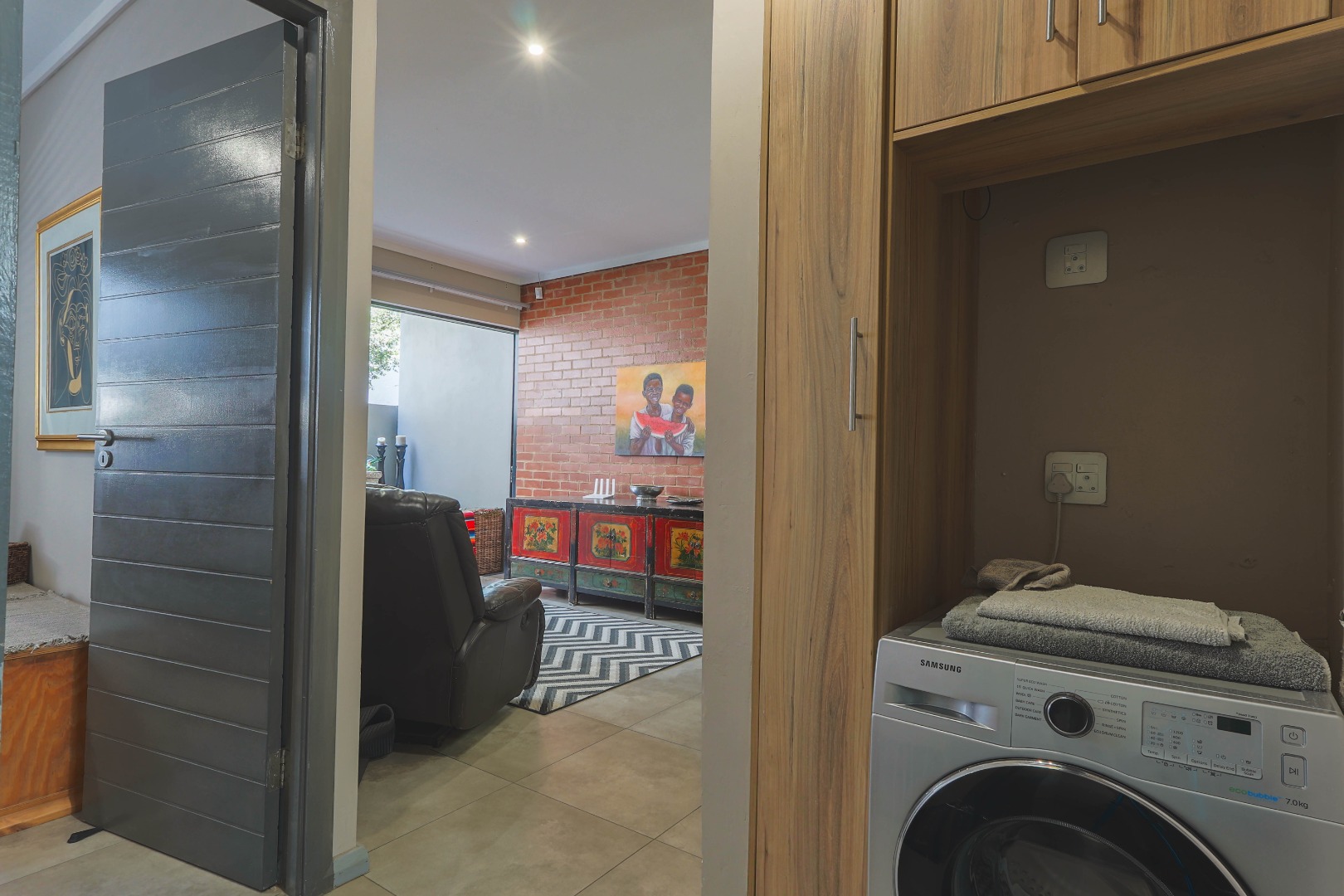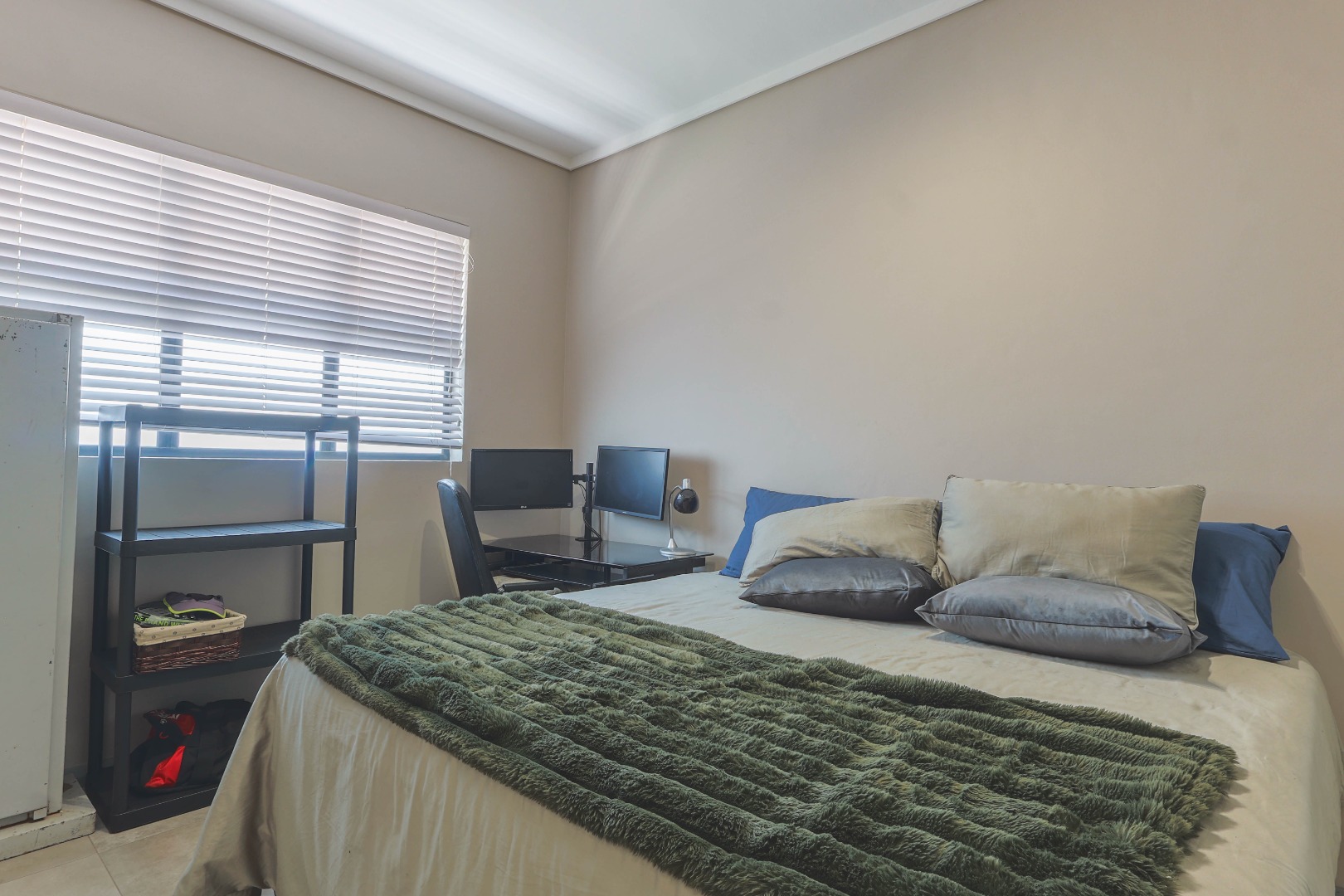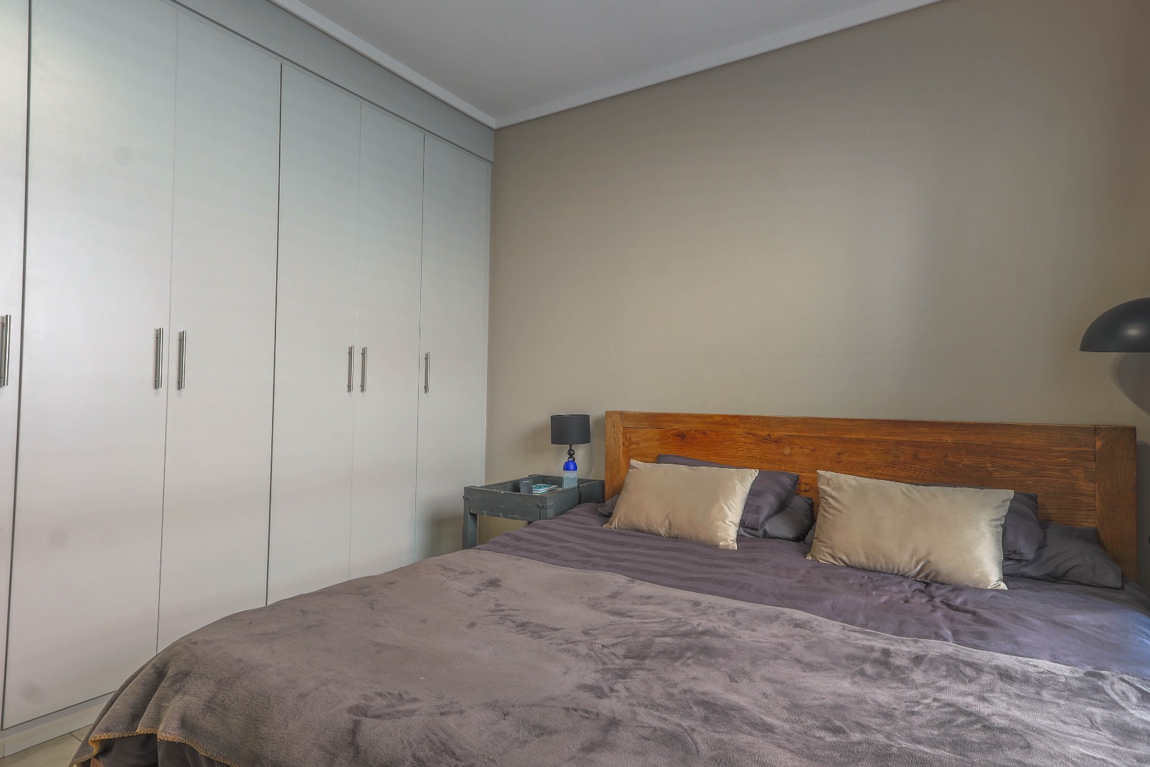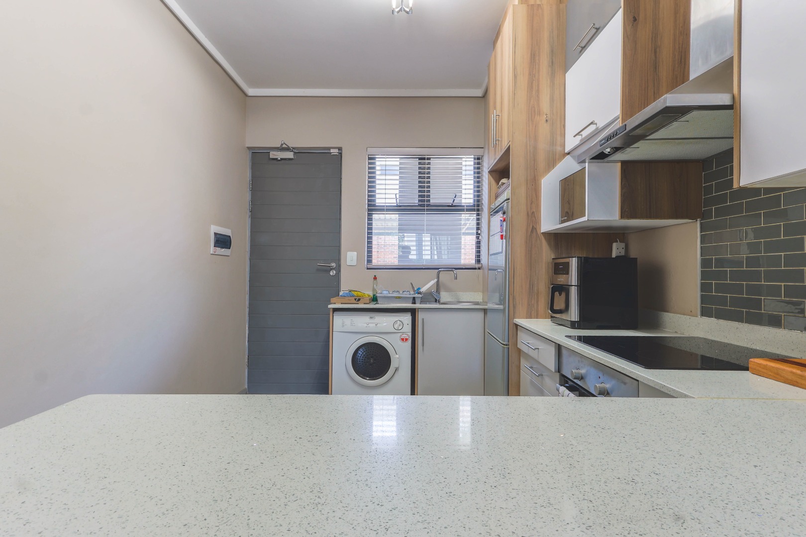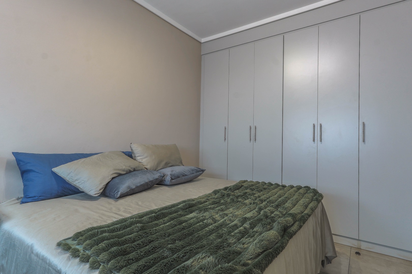 Discover modern living in this inviting 2-bedroom, 1-bathroom apartment located within a secure complex in Brooklyn, Pretoria. The residence features a contemporary open-plan layout, seamlessly connecting the living areas. The kitchen is a highlight, boasting sleek white, wood, and grey cabinetry, integrated appliances, and a practical breakfast bar. The lounge area is enhanced by an exposed brick accent wall, creating a stylish focal point, and benefits from abundant natural light streaming through large sliding doors that open onto a private patio, perfect for relaxation or entertaining. Both bedrooms offer comfortable accommodation with ample storage solutions. One bedroom features a full wall of integrated, light-colored wardrobes, while another includes modern grey built-in wardrobes, ensuring a tidy and organized space. Natural light is present in several rooms, with one bedroom also offering enough space for a dedicated workspace, ideal for remote work or study. The single bathroom is well-appointed, catering to the needs of residents. Outdoor living is facilitated by a private patio, extending the living space outdoors. The property includes one dedicated parking bay, adding convenience for residents. As part of a security complex, this home offers peace of mind with features such as a security post, access gate, electric fencing, and 24-hour security. Fibre connectivity is also available, ensuring high-speed internet access. Located in the desirable suburb of Brooklyn, this apartment provides easy access to local amenities and the vibrant city life of Pretoria.