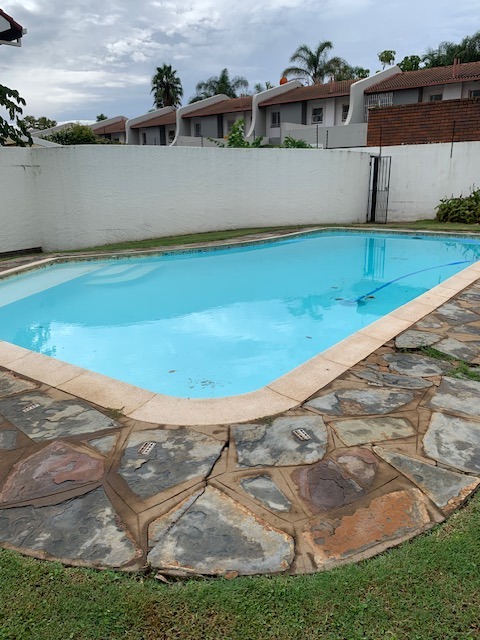 Step outside to enjoy the private outdoor spaces, including a covered patio area perfect for al fresco dining and a small, established grassy lawn. The complex also boasts a refreshing pool, ideal for warm South African days. Parking is well-catered for with a single garage and an additional parking space, all within the secure confines of the complex, which features an access gate.