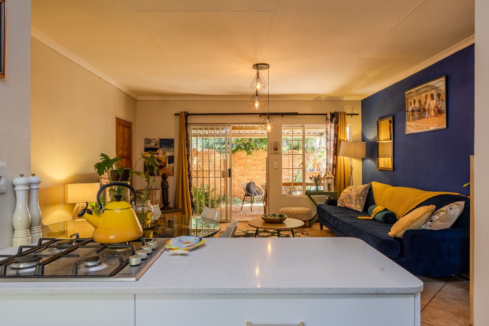 The open-plan living area flows effortlessly out to a private garden, creating the ideal setting for relaxed afternoons, entertaining guests, or simply enjoying a peaceful moment outdoors. Both bedrooms are well-sized with plenty of natural light and share a neat, well-maintained bathroom.