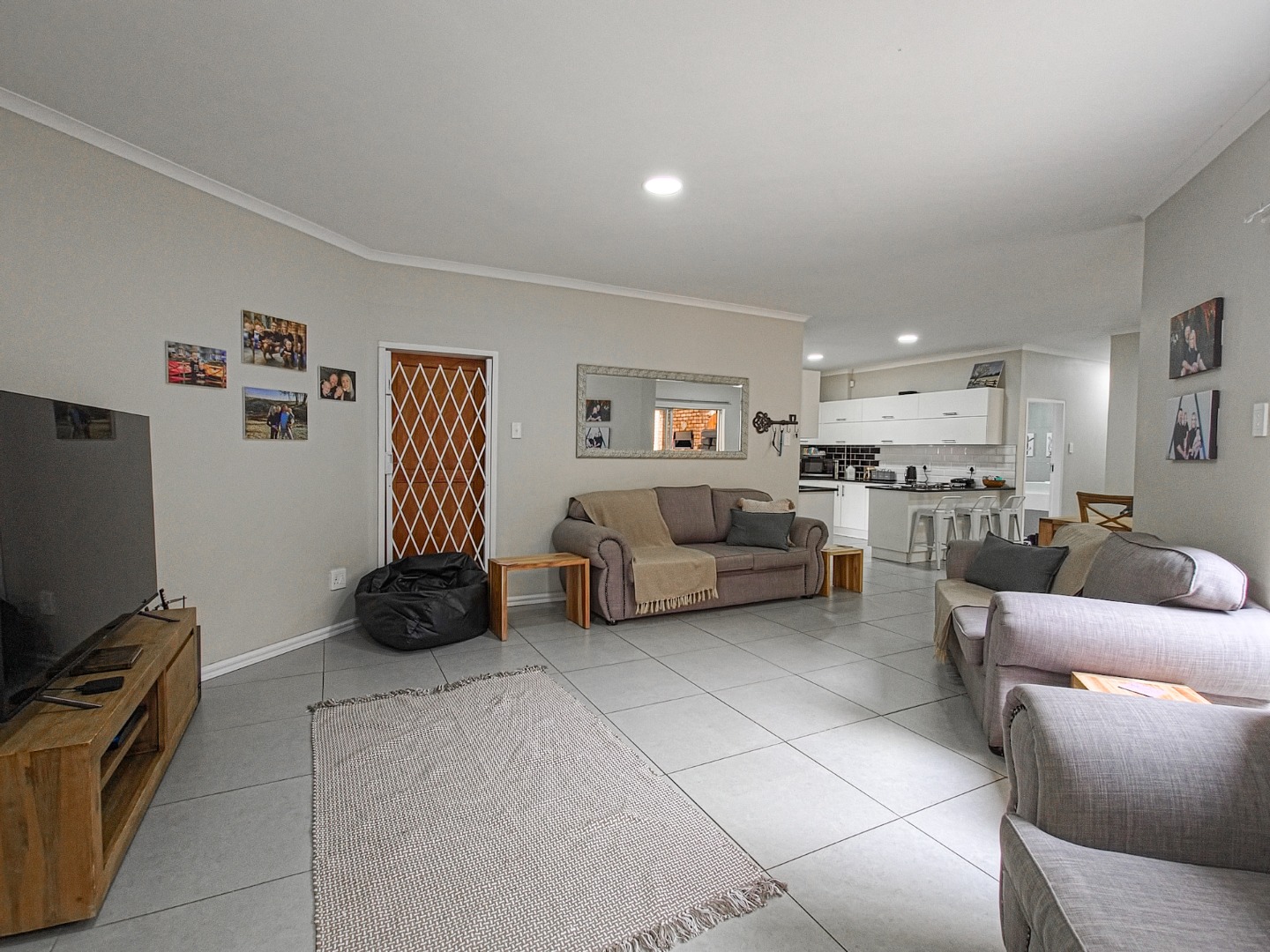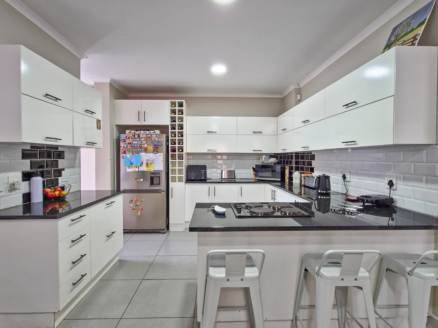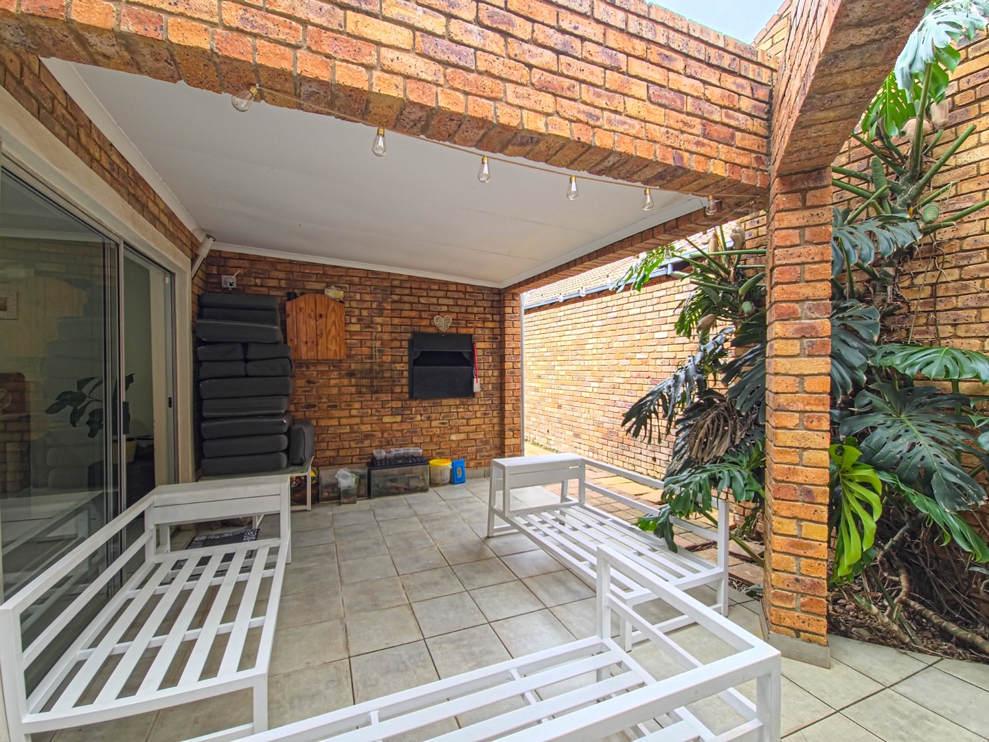 Externally, the property features a charming patio, perfect for al fresco dining and relaxation, alongside a built-in braai for outdoor entertaining. The meticulously maintained garden, enhanced by durable paving, offers a serene private retreat. Security is paramount, with a robust fence and electric fencing ensuring peace of mind. Furthermore, the residence includes two secure garages, providing ample parking and storage solutions.