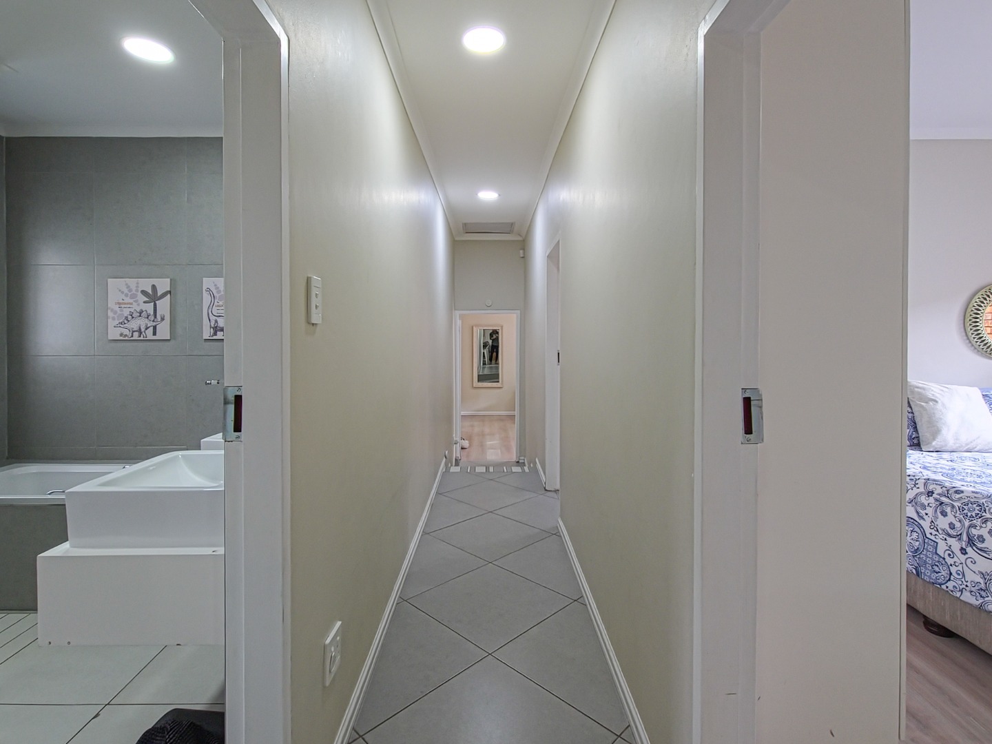 This distinguished three-bedroom residence, situated in the desirable suburban enclave of Elarduspark, Pretoria, offers an exceptional living experience. Spanning a generous 240 square metres of floor area on a 580 square metre erf, this property is meticulously designed for comfort and sophisticated family life. The welcoming entrance hall provides a graceful introduction to a home where modern amenities meet practical elegance.