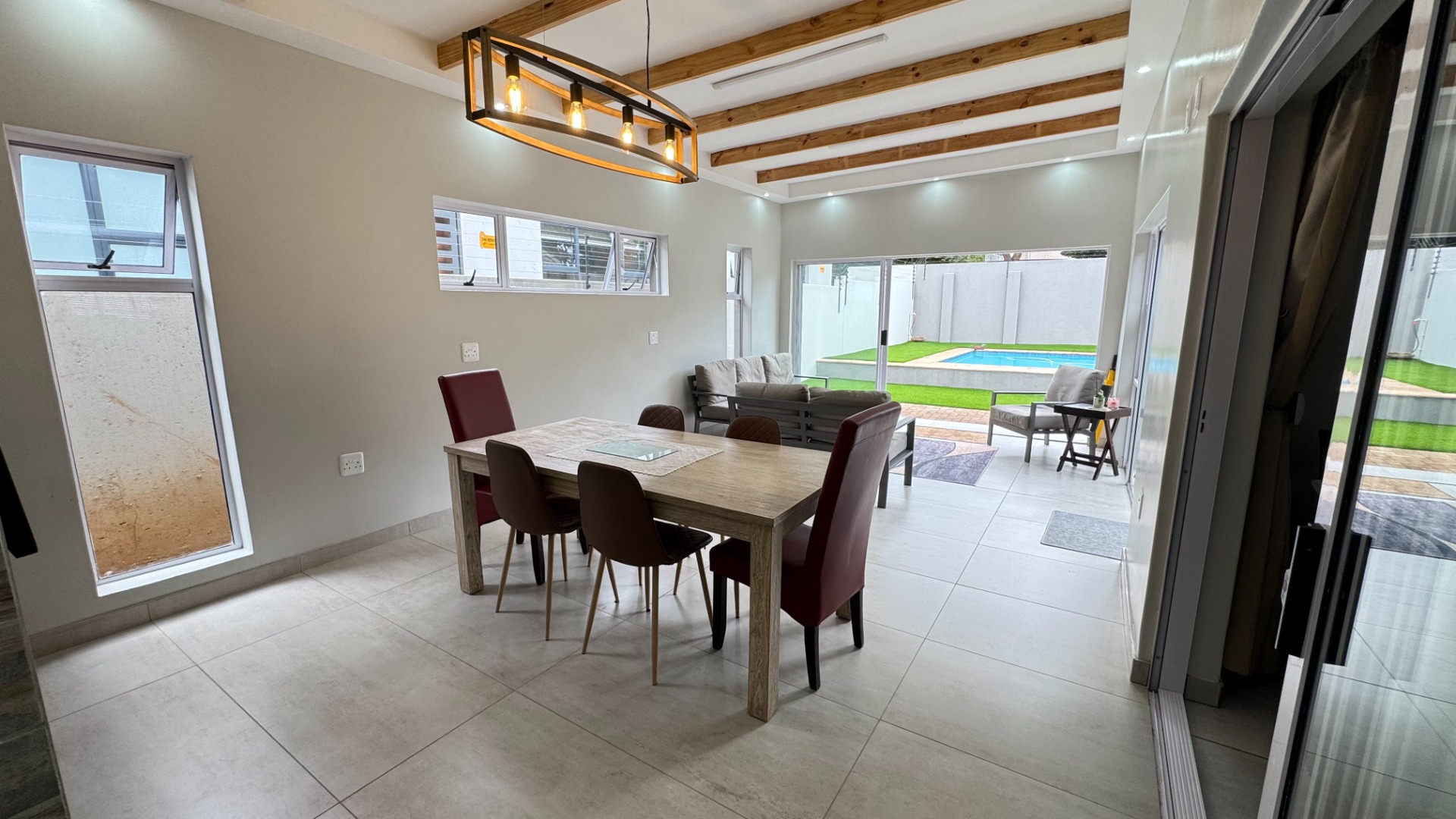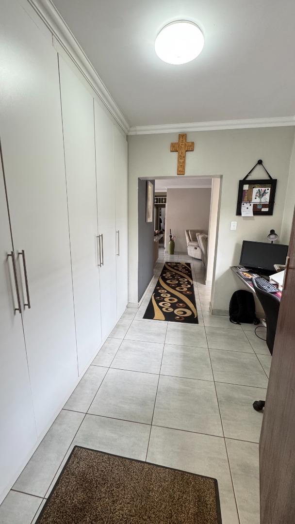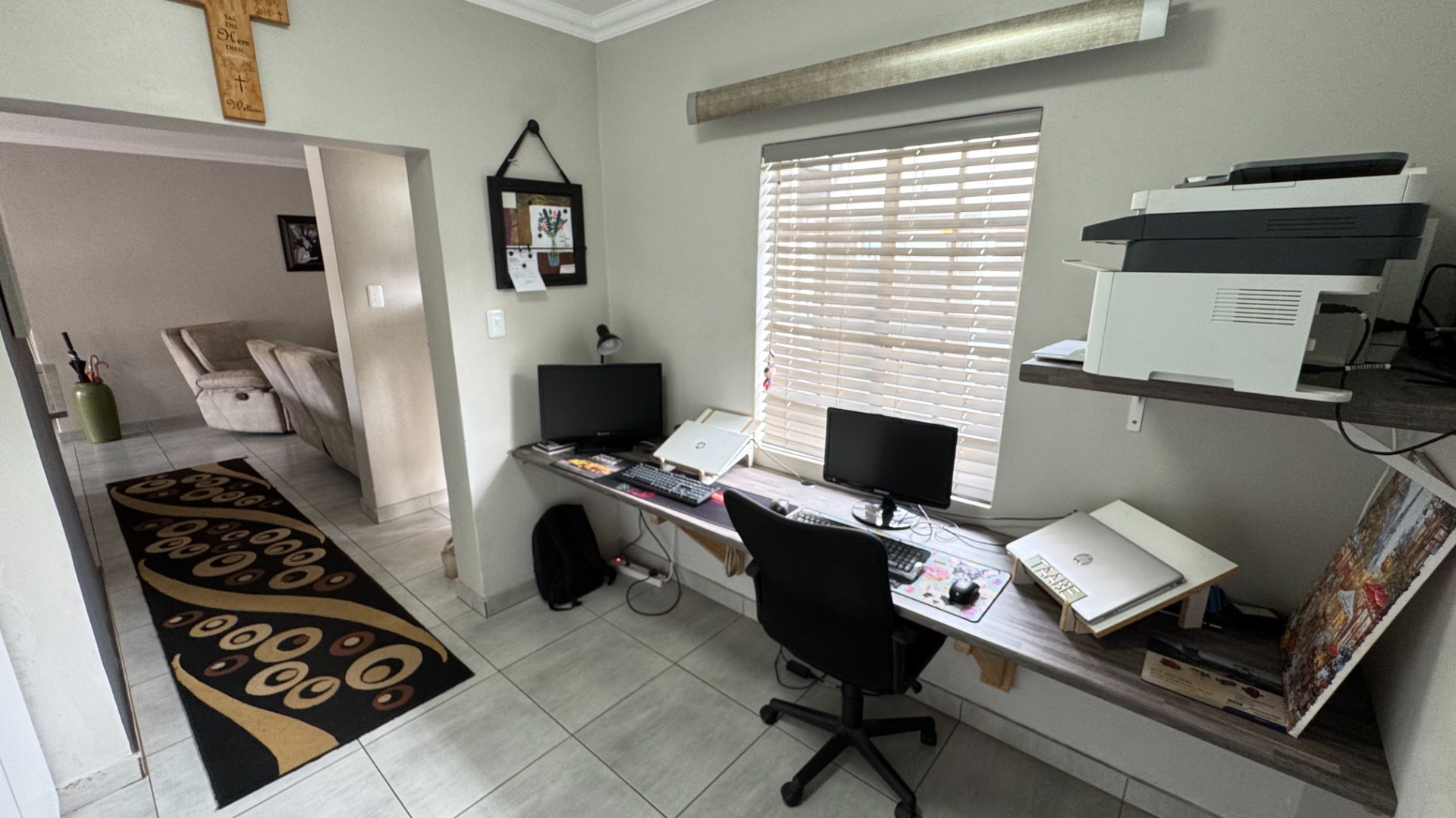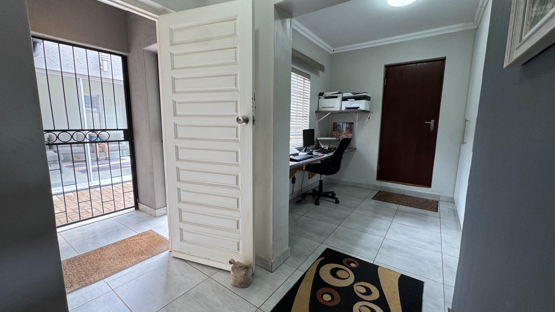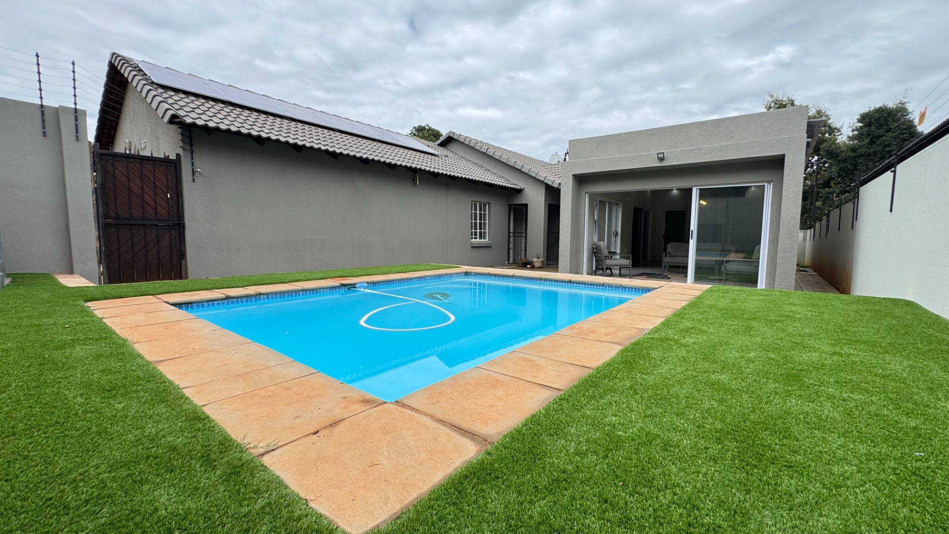 Discover this inviting four-bedroom family home situated in the desirable suburban area of Elarduspark, Pretoria. Boasting a generous 300 sqm under roof on a 490 sqm erf, this residence offers ample space and modern comforts for a contemporary lifestyle. The interior features an open-plan design, seamlessly connecting the lounge, dining room, and a dedicated family TV room, perfect for both relaxation and entertaining. The well-appointed kitchen includes a convenient pantry, while a separate laundry room adds to the home's practicality. Comfort is ensured throughout with air conditioning, and a dedicated study provides an ideal space for work or quiet contemplation. The property offers four spacious bedrooms, with the main bedroom benefiting from a private en-suite bathroom, complemented by a second full bathroom. Step outside to a private oasis designed for outdoor living. The property includes a welcoming patio, a sparkling swimming pool, and a built-in braai, creating the perfect setting for gatherings. The established garden, complete with paving and a driveway, enhances the home's curb appeal. Parking is abundant with three garages and an additional two open parking spaces. Security is a priority, featuring an access gate, electric fencing, intercom system, CCTV, burglar bars, and a security gate, providing peace of mind. This home also embraces modern sustainability with a battery inverter and solar panels, reducing utility costs and ensuring continuous power. Fibre connectivity is available, catering to all your digital needs. Elarduspark is a well-established residential suburb in Pretoria, known for its family-friendly atmosphere and convenient access to local amenities and major routes. Key Features: * 4 Bedrooms, 2 Bathrooms (1 En-suite) * Open Plan Living Areas (Lounge, Dining, Family TV Room) * Kitchen with Pantry & Separate Laundry * Dedicated Study & Air Conditioning * Private Patio, Swimming Pool & Built-in Braai * 3 Garages & 2 Additional Parking Spaces * Enhanced Security: Electric Fencing, CCTV, Intercom, Security Gate * Sustainable Living: Battery Inverter & Solar Panels * Fibre Ready * Pet-Friendly Garden