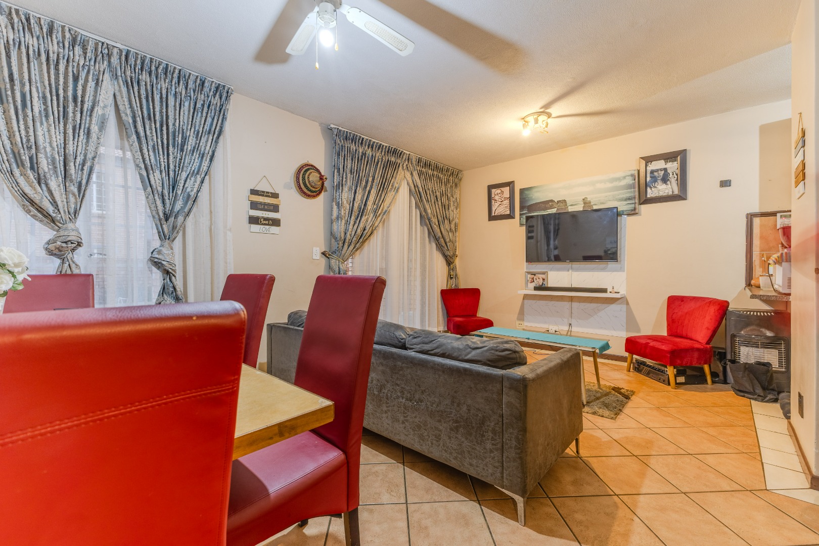Come and discover this lovely 2-bedroom, 1-bathroom apartment nestled in a secure estate in Equestria, Pretoria. This suburban gem offers a comfortable and convenient lifestyle, perfect for those looking for a relaxed pace within a vibrant community. The area is well-regarded for its accessibility and friendly atmosphere. Step inside and you'll find a welcoming space with practical tiled flooring throughout the entryway and living areas. The open-plan living and dining area feels spacious, featuring a comfy grey sectional sofa, red accent chairs, and a wall-mounted TV – great for unwinding after a long day. The kitchen, while having a classic feel, is super functional with a U-shaped layout, plenty of cabinet space, a built-in oven/hob, and a double sink, all brightened by natural light from the window. There's even a dedicated family TV room for extra relaxation. Both bedrooms are cozy, featuring tiled floors and large windows that let in lots of sunshine. One bedroom boasts a full wall of built-in wardrobes, providing ample storage for all your bits and bobs. The neutral wall colours throughout give you a blank canvas to add your personal touch and make it truly your own. Outside, you'll appreciate the durable brick exterior and the private balcony, perfect for enjoying your morning coffee. While the garden area needs a bit of love, it offers fantastic potential for those with a green thumb. You'll also have one dedicated parking bay. Living here means enjoying fantastic communal amenities like a clubhouse, squash court, tennis court, and communal braai areas – perfect for socialising and staying active. Plus, it's pet-friendly, so your furry friends are welcome! Security is a top priority in this gated community and security complex, with 24-hour security, CCTV, and an access gate, giving you complete peace of mind. Some windows even have security bars for an added layer of safety. Key Features: * 2 Bedrooms, 1 Bathroom * 83 sqm Floor Size * Secure Gated Community with 24-hour Security & CCTV * Access to Clubhouse, Squash Court, and Tennis Court * Communal Braai Area * Pet-Friendly * Tiled Flooring Throughout * Balcony Special Feature * 1 Parking Bay