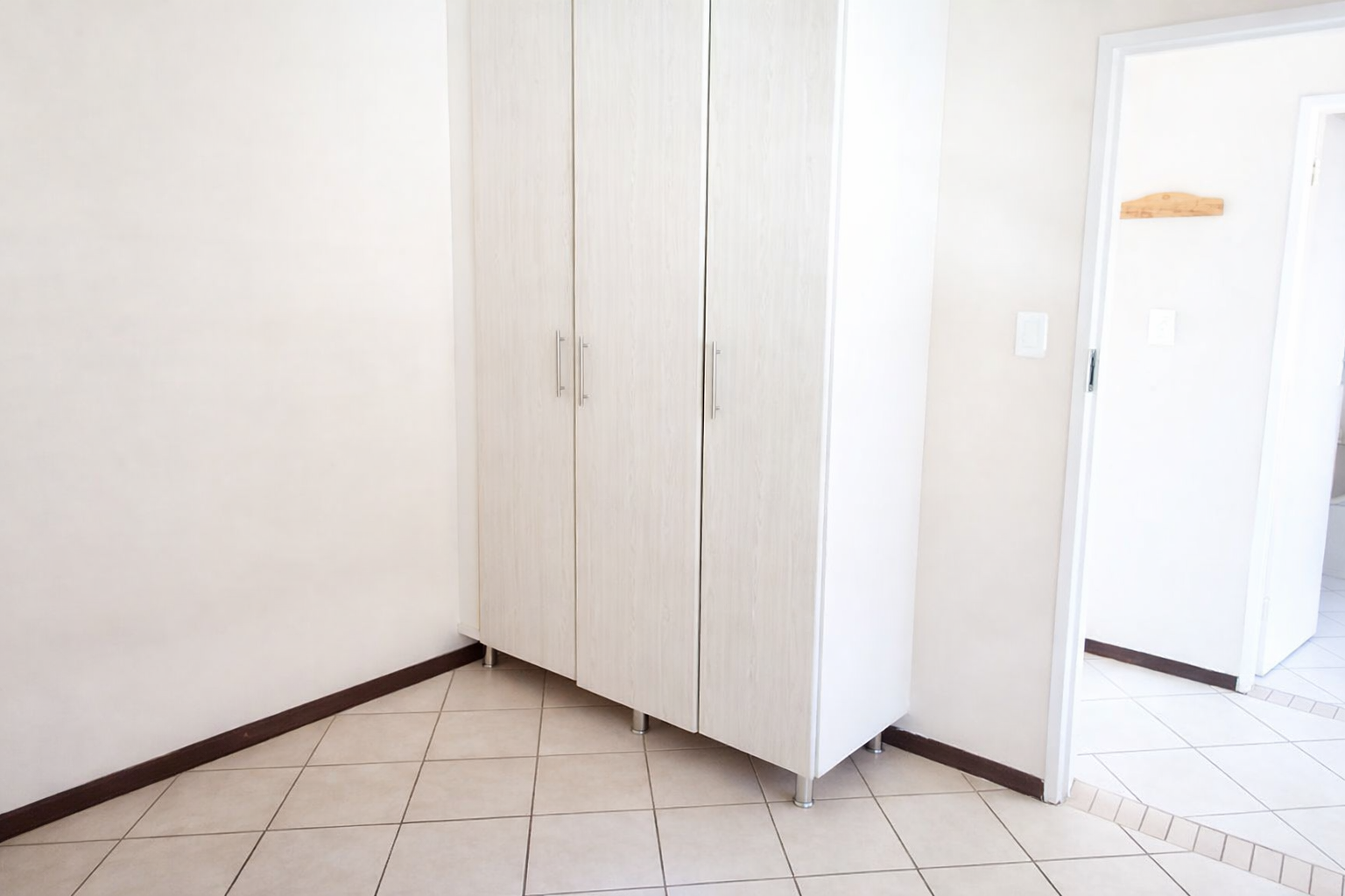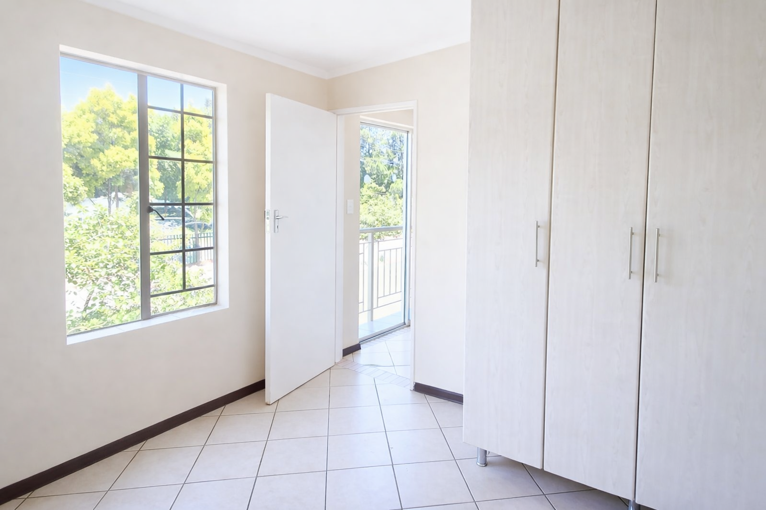 The entire apartment is tiled, alowing for easy cleaning. The bedrooms have built in cupboards.