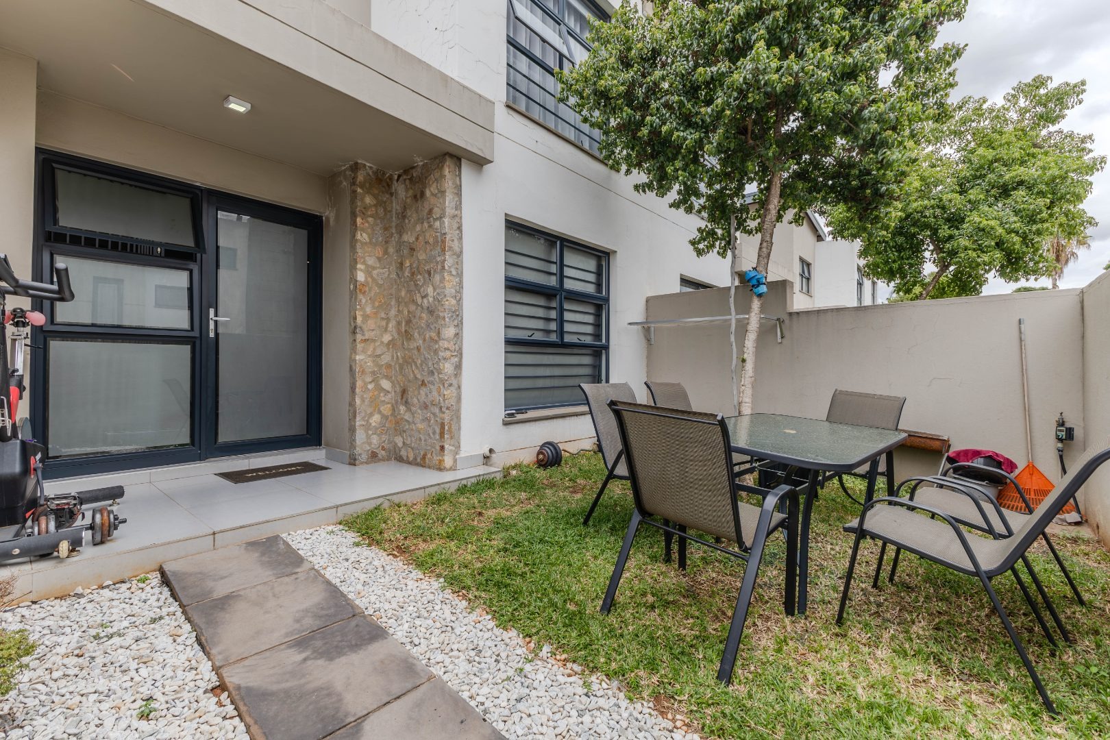 Discover comfortable living in this charming 2-bedroom residence, ideally situated within a secure estate in Equestria, Pretoria. This property offers a tranquil setting at the end of a cul-de-sac, providing both privacy and a sense of community. With a generous erf size of 30000 sqm, the estate provides a spacious environment for residents, complemented by a metropolitan lifestyle. The interior of this home spans 158 sqm, featuring a well-designed layout that includes two comfortable bedrooms and a single bathroom, which benefits from an en-suite configuration for added convenience. The living spaces comprise a dedicated lounge and a dining room, perfect for both relaxation and entertaining. A functional kitchen completes the internal amenities, catering to daily needs. Outdoor living is enhanced by a private patio, offering a pleasant space for enjoyment. The property includes a single garage and an additional parking bay, ensuring ample space for vehicles. While there is no private garden, the estate environment often provides communal green spaces and amenities. Pets are permitted, making this a suitable home for animal lovers. Security is a key feature of this property, being located within a security estate with an access gate, providing peace of mind. Residents can also enjoy the benefit of aquatic activities within the estate, adding to the lifestyle offerings. The property boasts a scenic view, contributing to its appeal. Equestria, a sought-after suburb in Pretoria, offers a blend of suburban tranquility and urban convenience. It is well-regarded for its secure estates and accessibility to various amenities, making it a desirable location for homeowners. Key Features: * 2 Bedrooms, 1 Bathroom (En-suite) * 1 Lounge, 1 Dining Room, 1 Kitchen * 1 Garage, 1 Parking * Private Patio * Security Estate with Access Gate * Cul-de-sac Location * Aquatic Activities Available * Scenic View * Pets Allowed
