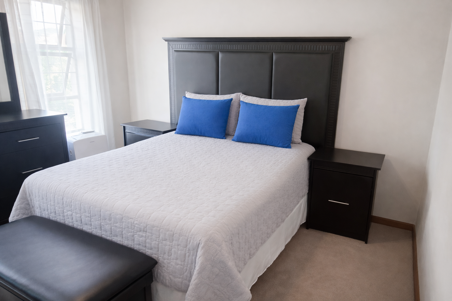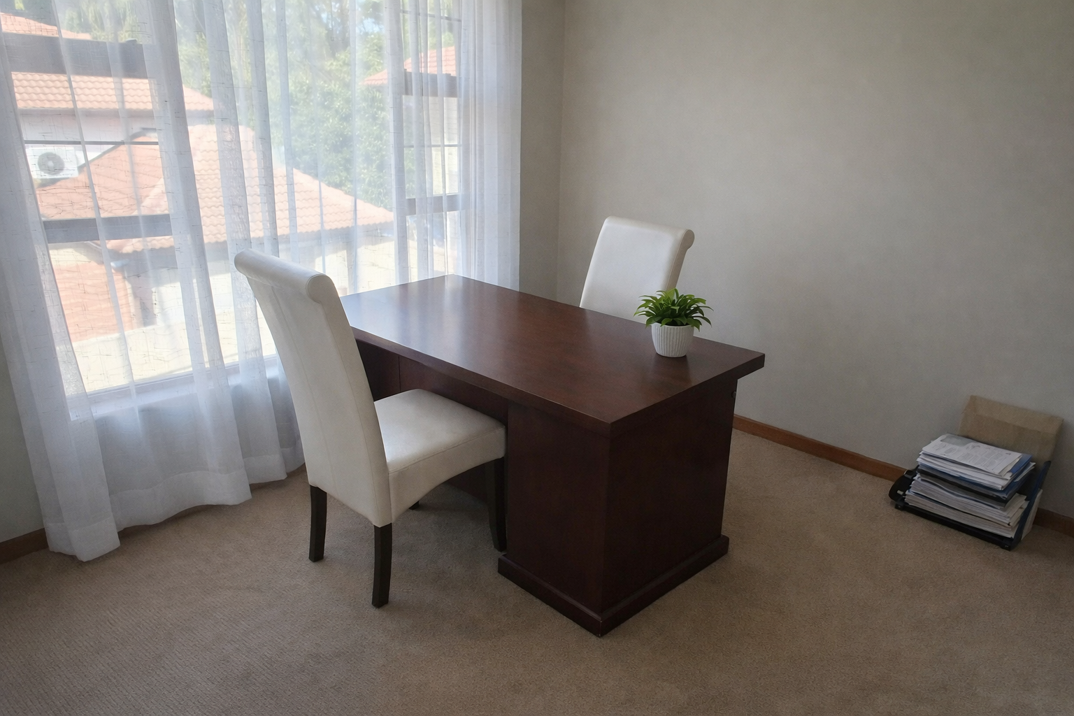 The home offers three comfortable bedrooms, providing ample accommodation. With 2.5 bathrooms, including a private en-suite and a guest toilet, convenience is assured. The neutral palette extends to these private spaces, allowing for personal customisation.