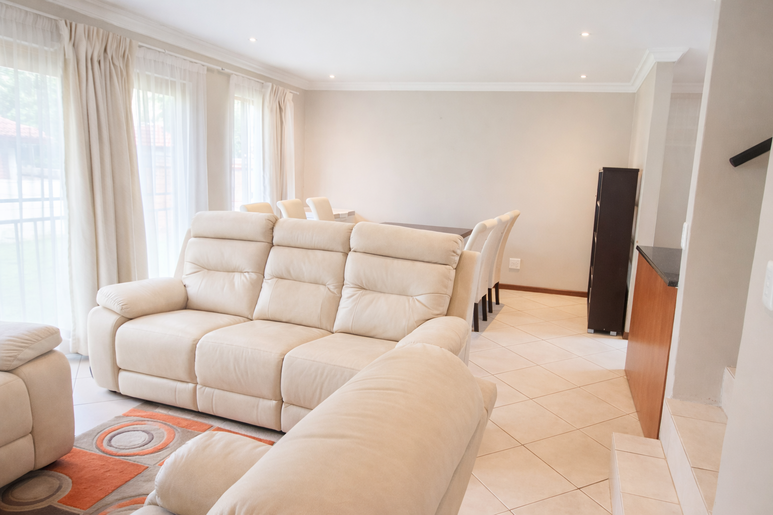 Situated on a 396 sqm erf with a 200 sqm floor size, the property includes a private garden and paved areas, perfect for outdoor enjoyment. The double garage provides secure parking. Pets are allowed, and a Wendy house offers practical storage. Located within a secure estate, residents benefit from 24-hour security, including a security post, access gate, and electric fencing, ensuring a tranquil living environment.