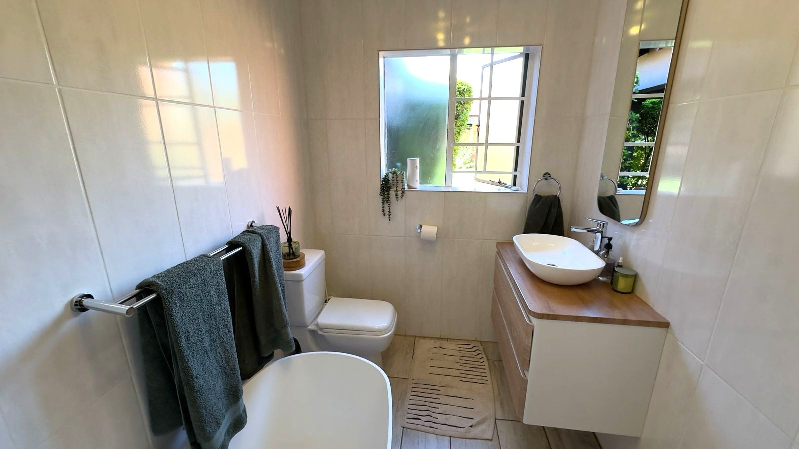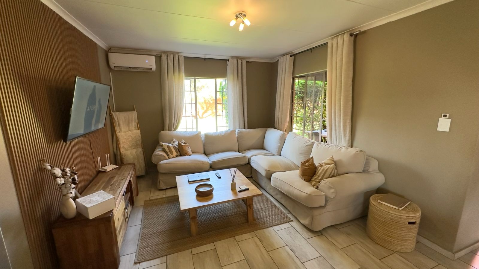 All three bedrooms are well sized and include built-in cupboards, while the two bathrooms are neatly finished, with the main bedroom enjoying the convenience of an en-suite.
