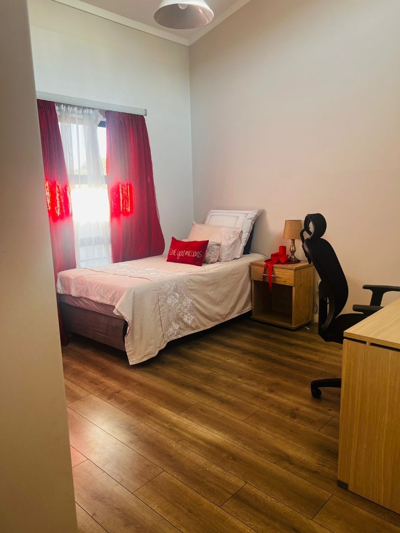 Two additional well-sized bedrooms and a stylish guest bathroom cater to family and friends. The open-plan layout enhances the spacious feel of the home, featuring a bright and airy lounge that seamlessly flows into the modern kitchen – ideal for entertaining and everyday living. Tiled throughout, the property exudes a sleek and sophisticated charm. Step outside to your own private backyard garden, a perfect spot for relaxing, braaiing, and creating cherished memories with loved ones. Priced to sell, this remarkable property combines beauty, functionality, and exceptional value. Don’t miss out on this incredible opportunity!