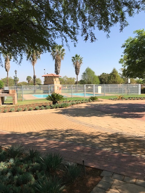 Discover comfortable living in this inviting 3-bedroom, 2-bathroom residence nestled within a secure estate in Pretoria's sought-after Equestria suburb. The property offers a generous 135 sqm of floor space, designed for modern family life and convenience. Upon arrival, the estate's well-maintained entrance, featuring robust brickwork, stacked stone finishes, and clear signage to the clubhouse, sets a welcoming tone, complemented by visible security measures.