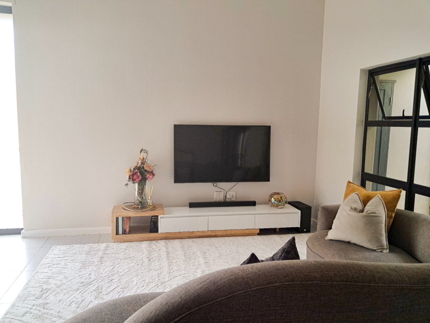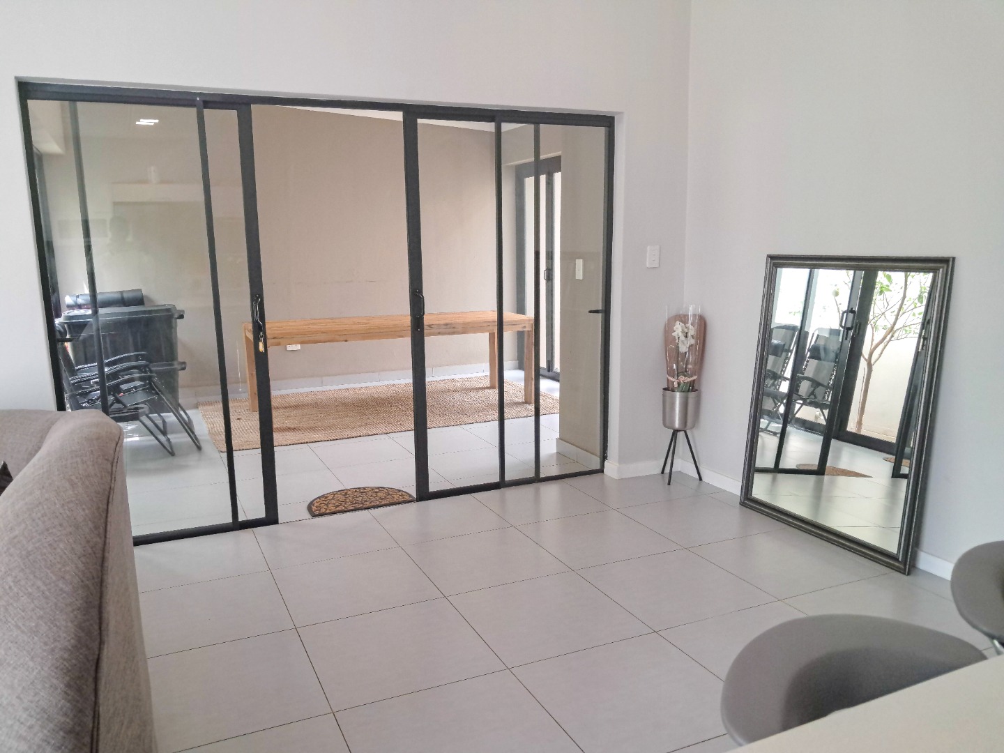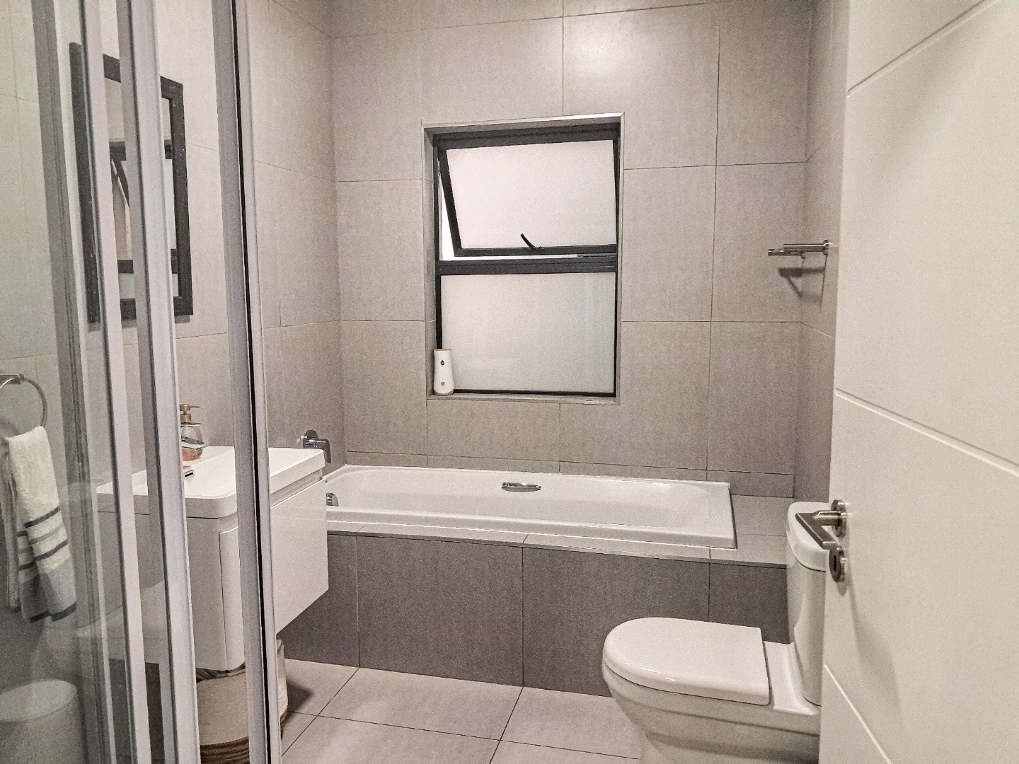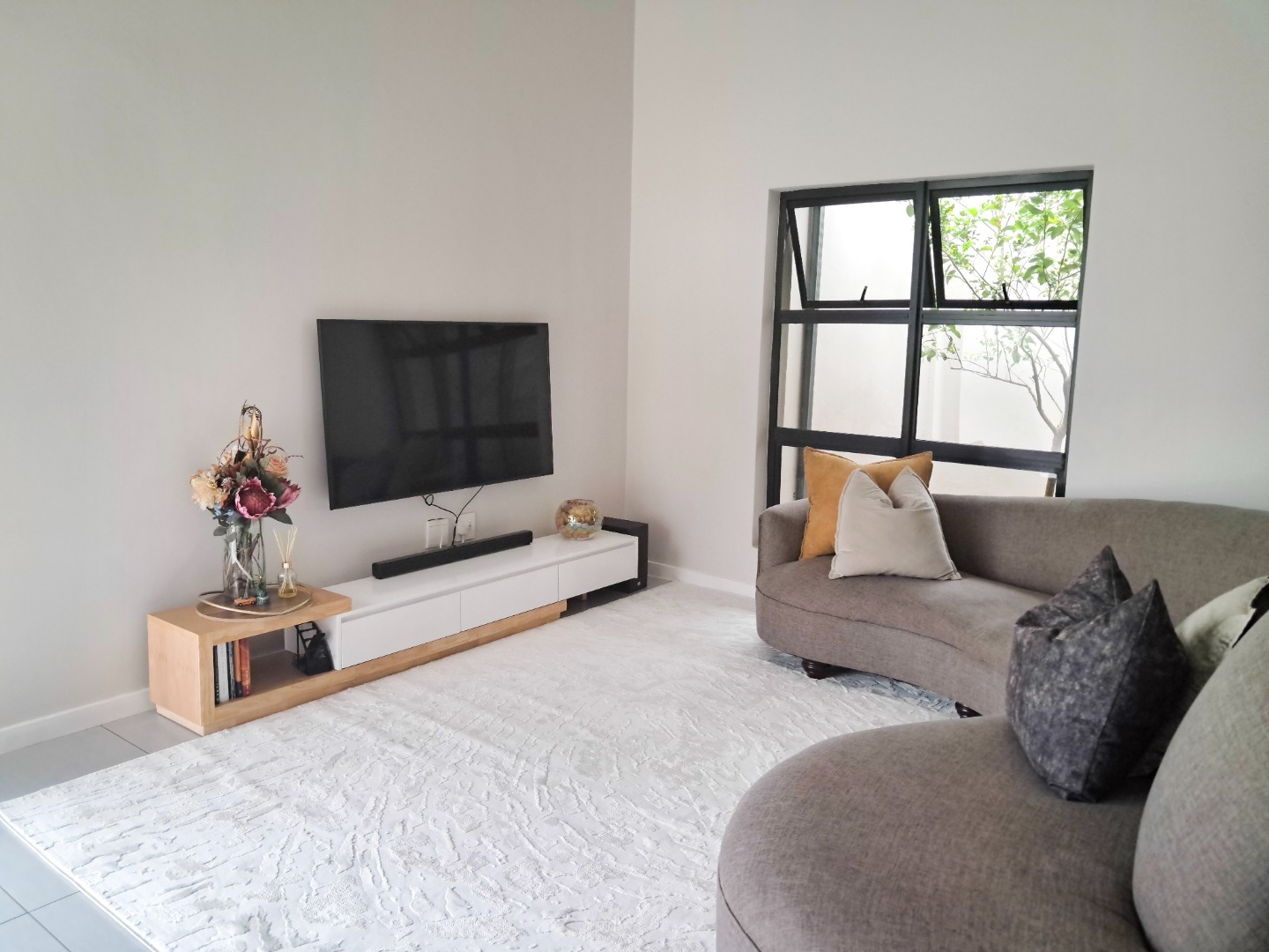 Discover this modern 3-bedroom, 3-bathroom residence situated in a secure estate in Equestria, Pretoria. The property boasts a contemporary architectural style with clean lines, a white exterior, and dark grey accents, complemented by attractive stone cladding near the entrance. Two prominent garages provide ample parking and storage, while integrated security cameras offer enhanced peace of mind. Inside, the home features a bright and inviting living area with high ceilings and abundant natural light streaming through large windows and glass doors. The modern aesthetic is evident with neutral colour palettes, stylish furniture, and practical tiled flooring throughout. The contemporary kitchen is designed with a two-tone finish, white upper cabinets, dark base units, and stainless steel appliances, complete with an integrated breakfast bar. Each of the three bedrooms offers comfortable living, with the main bedroom featuring an en-suite bathroom. The bathrooms are modern and clean, showcasing sleek fixtures, including a floating vanity, basin, and a spacious built-in bathtub, alongside a glass-enclosed shower stall in another. The property also includes a dedicated braai room and a patio, perfect for entertaining. Outdoor living is enhanced by paving and the property's location within a secure estate, offering 24-hour security, an access gate, and a security post. Pets are allowed, adding to the home's appeal. Equestria is a metropolitan suburb known for its convenient location and family-friendly environment. Key Features: * 3 Bedrooms, 3 Bathrooms (1 En-suite) * Modern Architectural Design * 2 Garages & 1 Parking * Secure Estate Living with 24-hour Security * Spacious Living Areas with Natural Light * Contemporary Kitchen with Breakfast Bar * Patio and Braai Room * Pet-Friendly * Floor Size: 188 sqm, Erf Size: 320 sqm