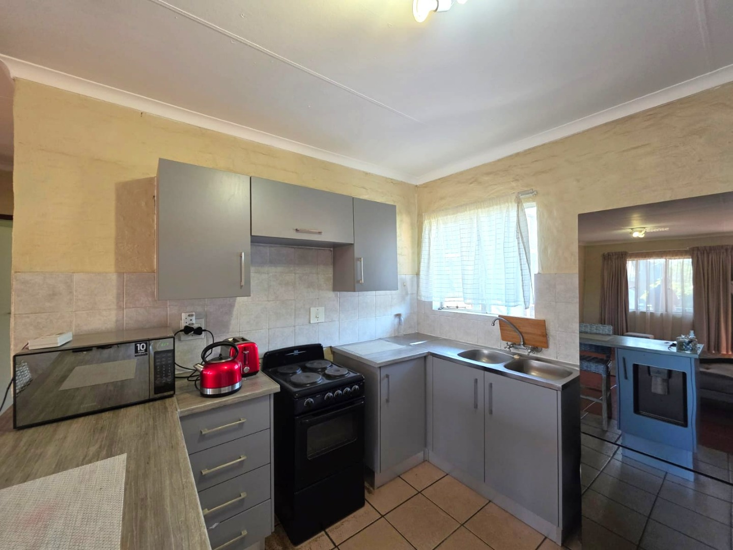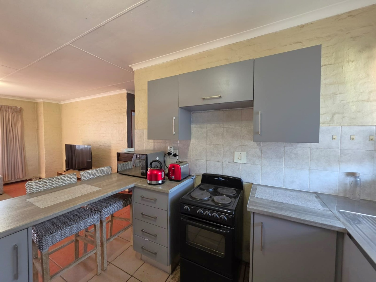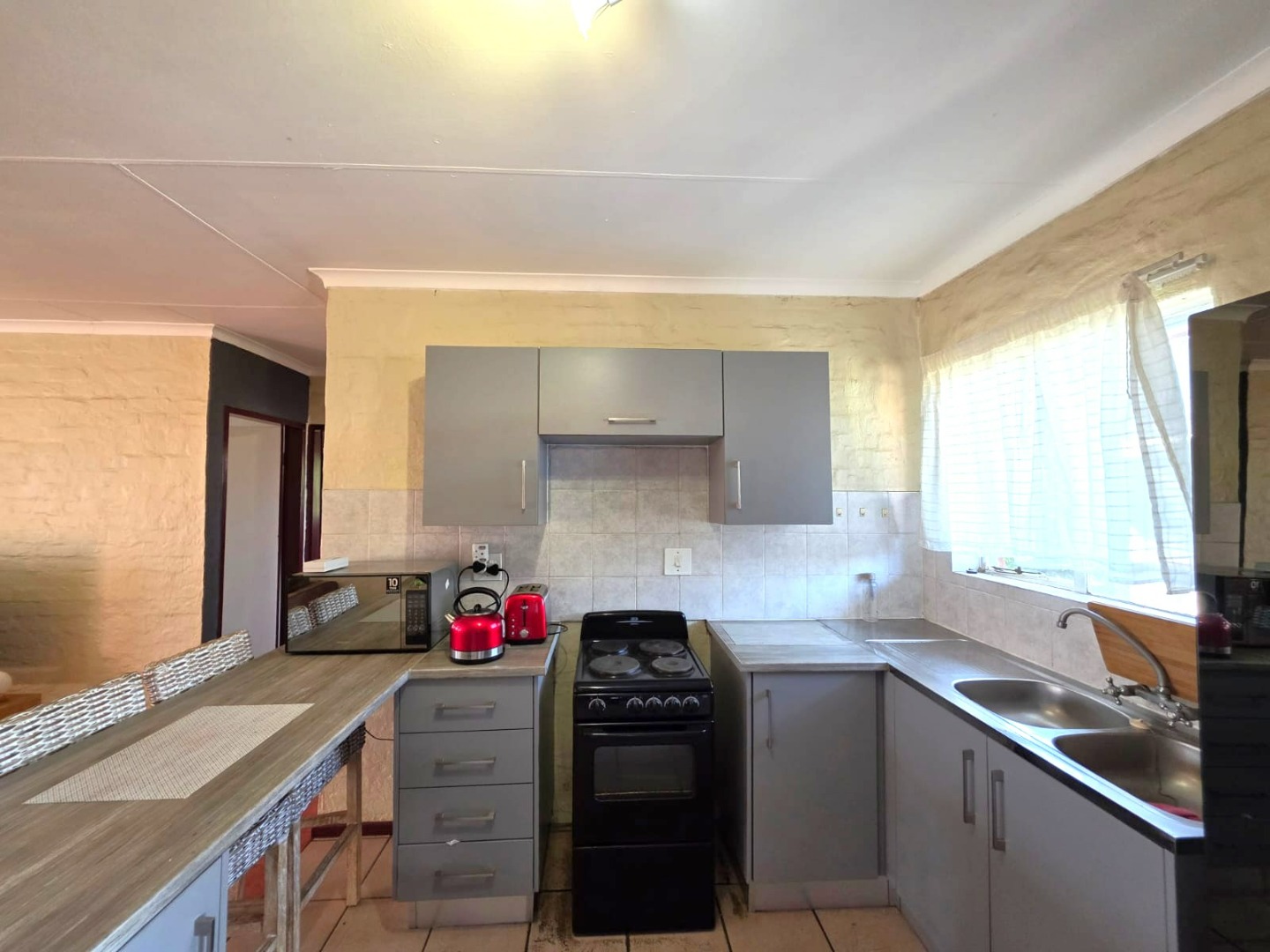 This neat home offers a practical layout with an open-plan kitchen featuring a breakfast counter and space for your appliances.
