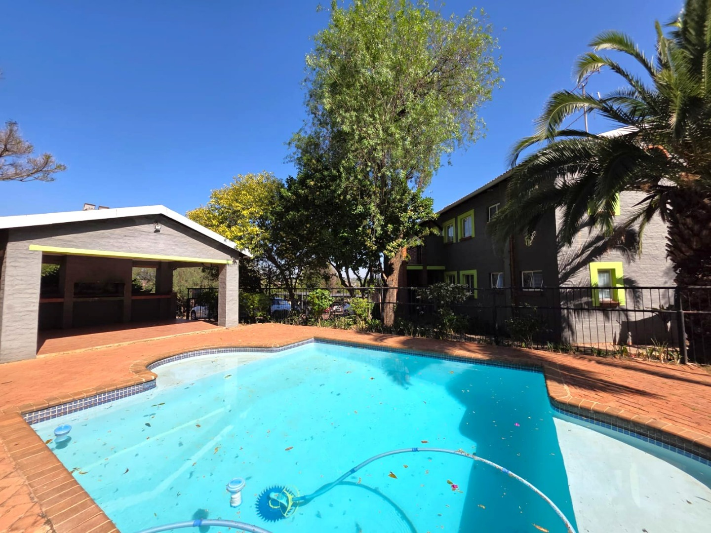 Residents enjoy access to a communal swimming pool, adding to the lifestyle appeal of this secure complex.