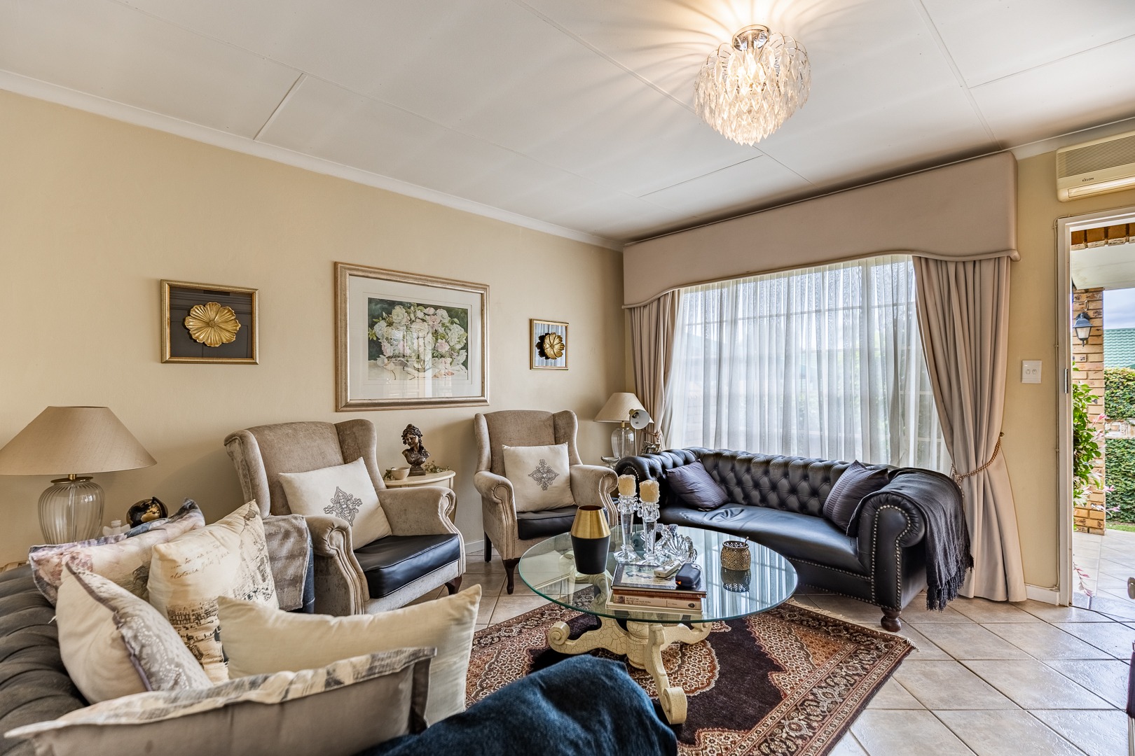 The home offers a spacious lounge and dining area that flows onto a covered patio, creating a seamless indoor-outdoor living experience.
