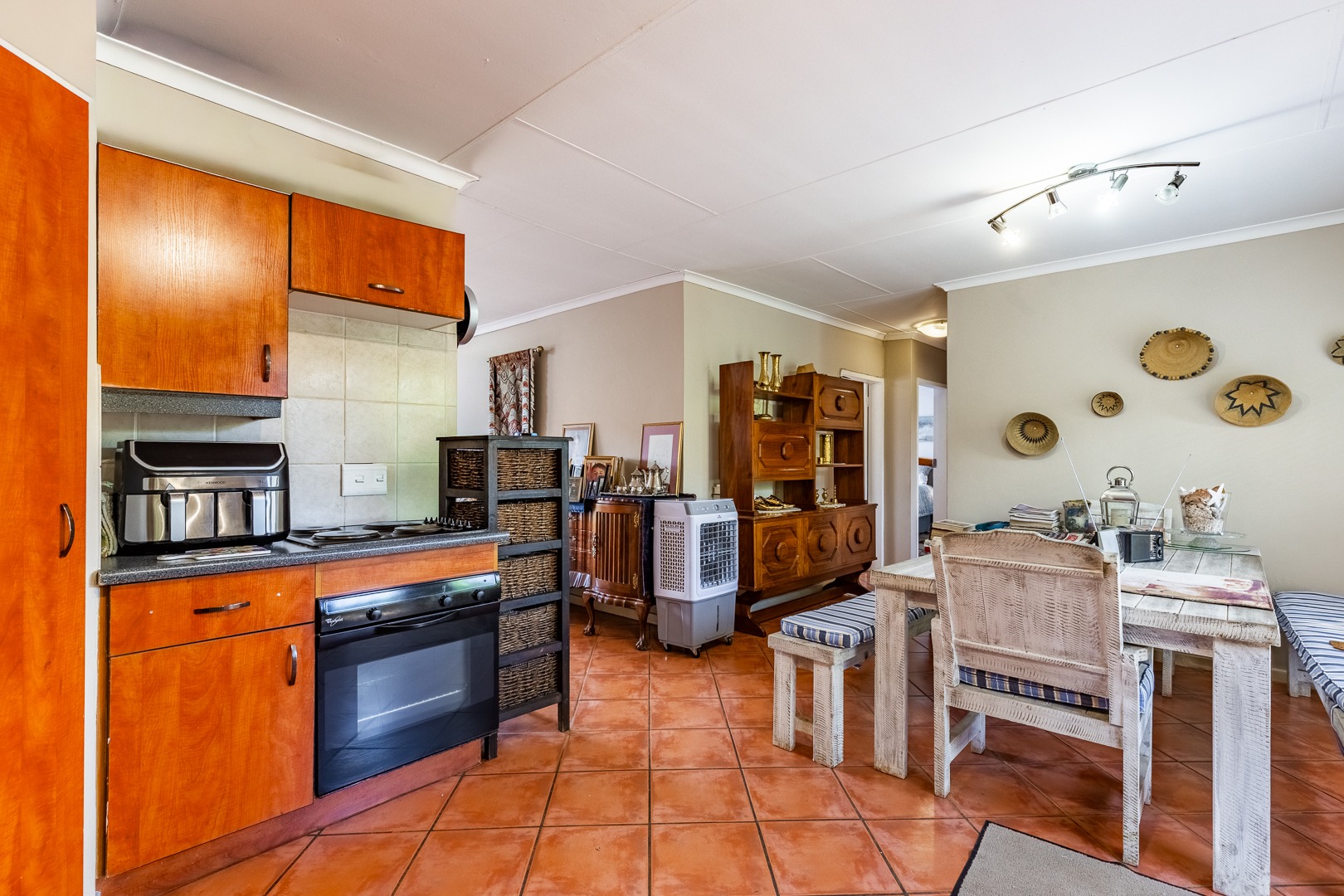The kitchen offers plenty of cupboard space and is designed to accommodate all your essential appliances with ease.