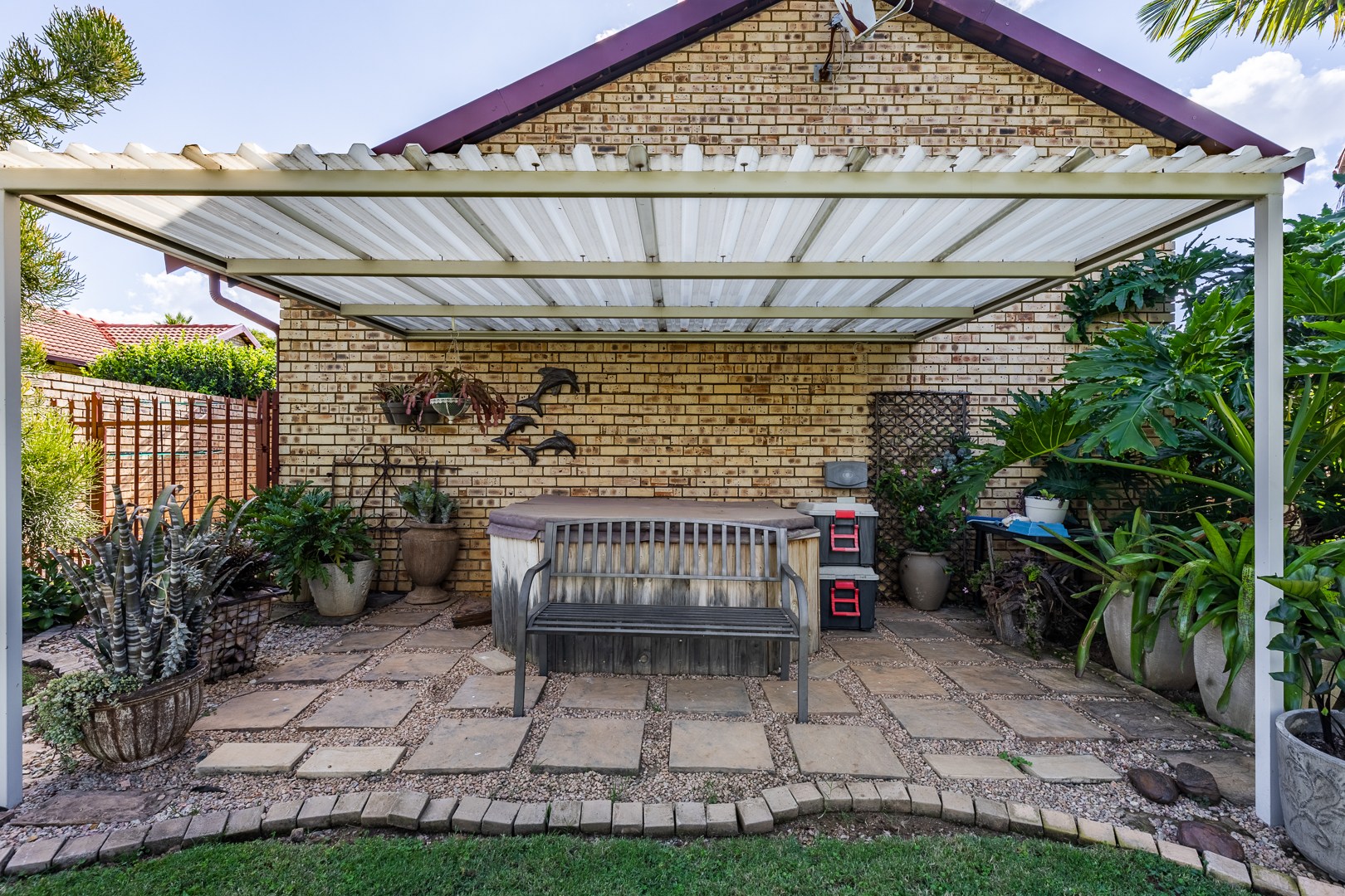 The property also includes a lock-up garage and two covered carports, ensuring ample parking for residents and guests.