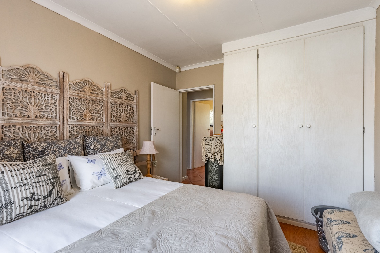 The complex offers 24-hour security and access to a communal swimming pool, adding to the convenience and lifestyle appeal of the home.