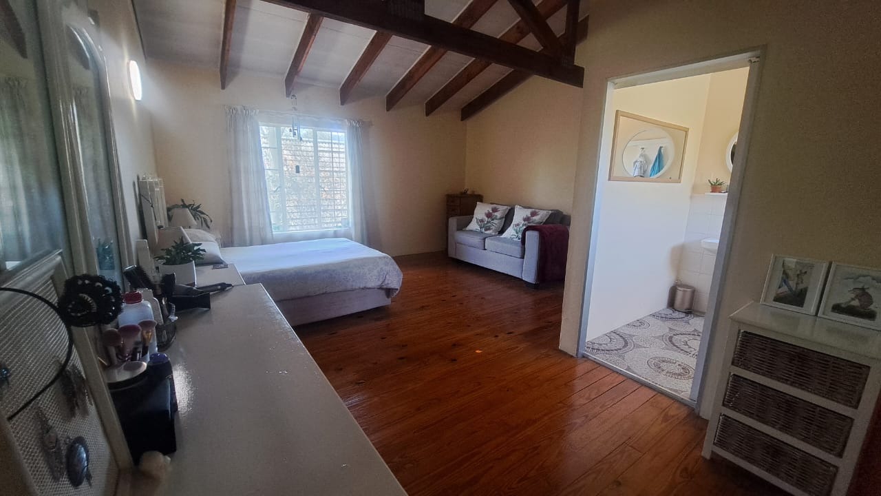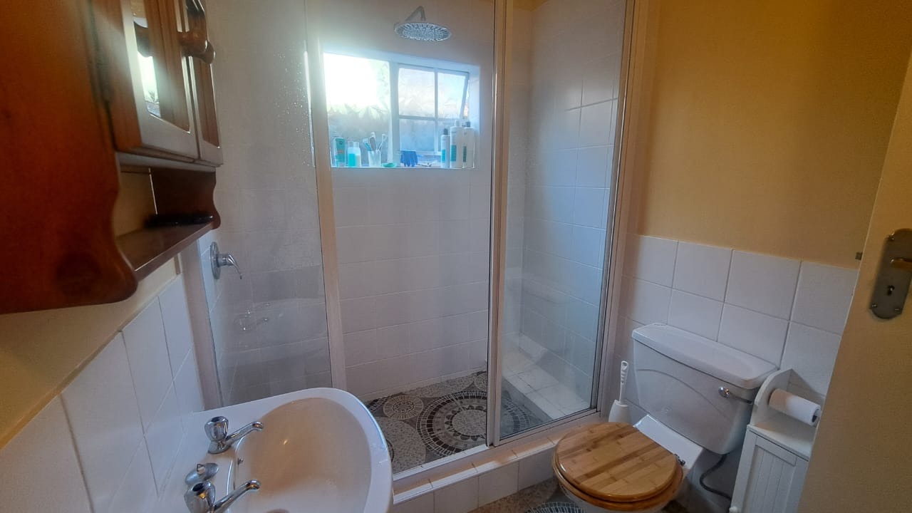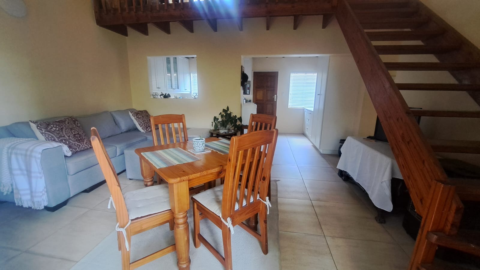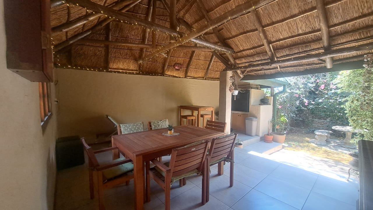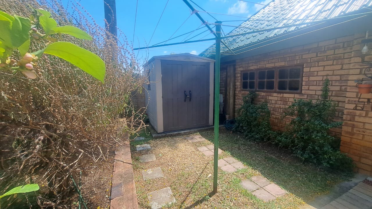 Outdoor living is well-catered for with a private garden, paved areas, a lapa, and a built-in braai, perfect for entertaining. A wendy house offers additional storage or utility space, and pets are welcome. The property benefits from a dedicated parking bay.