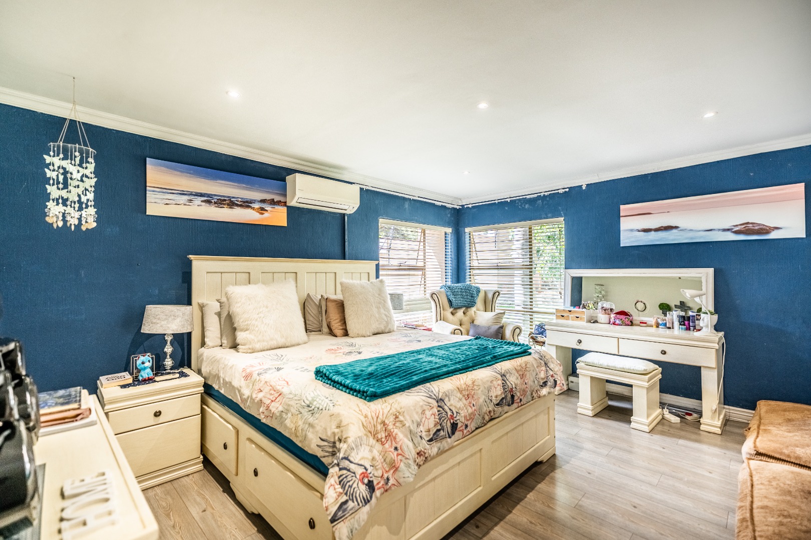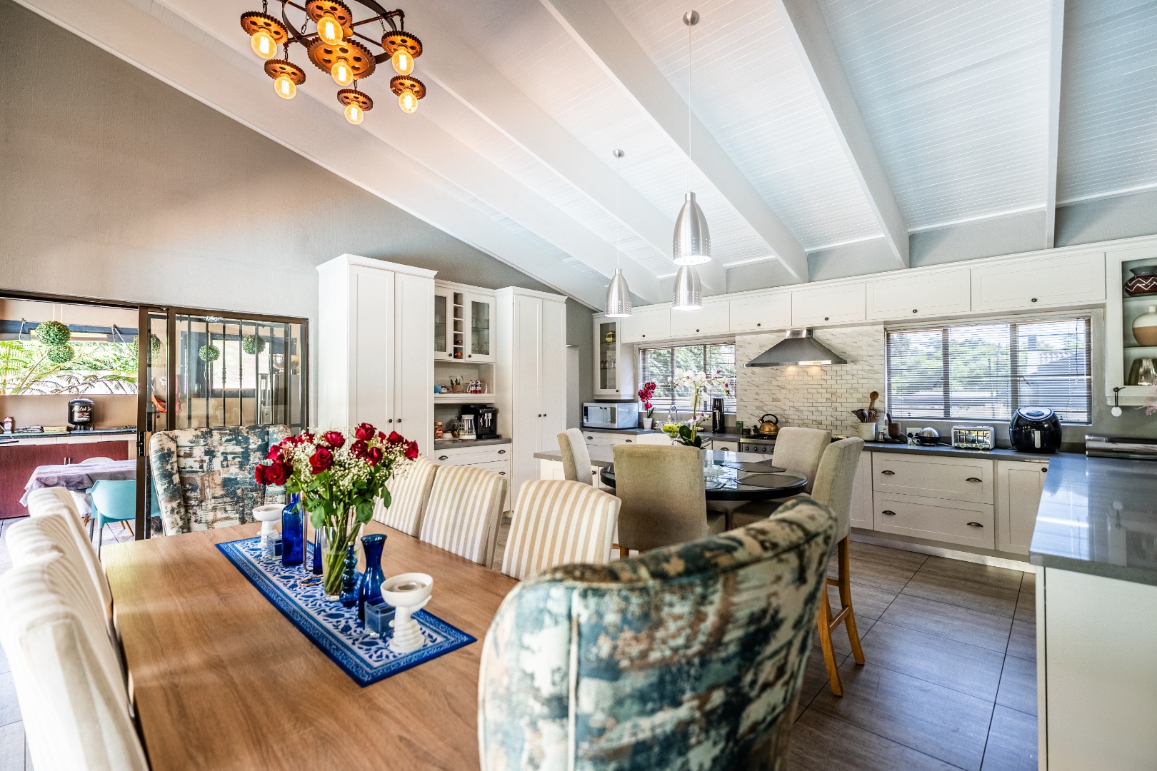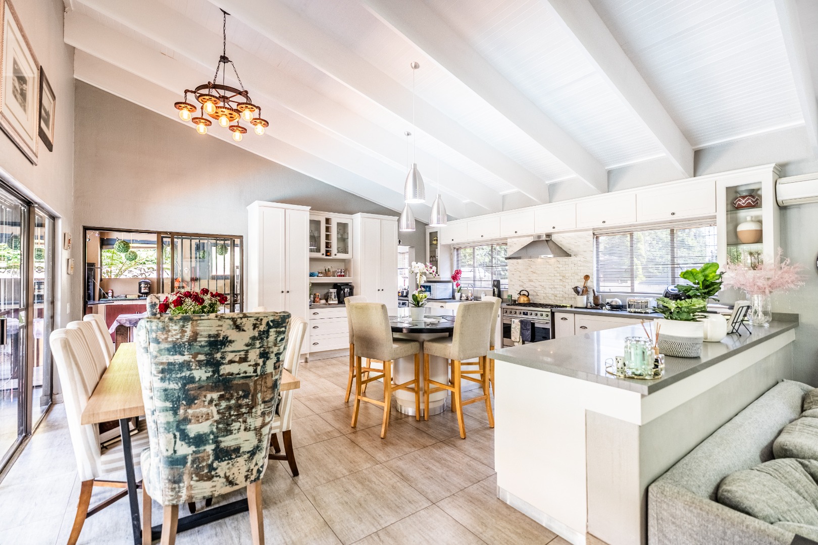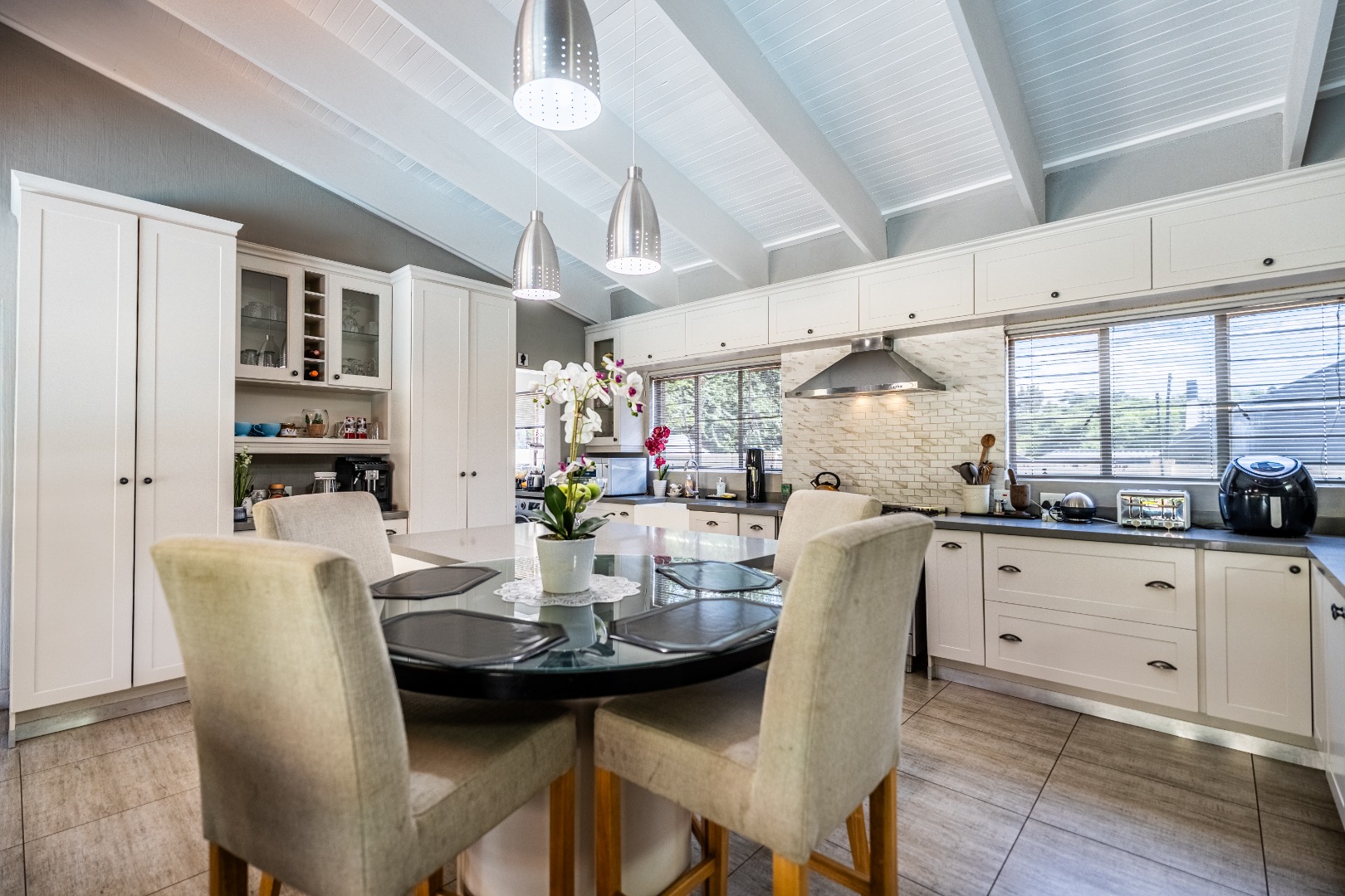 This home boasts four spacious bedrooms, including an en-suite bathroom, and guest bathroom. The bedrooms feature laminate flooring and built-in wardrobes. Air conditioning in three of the bedrooms ensures you stay cool during those hot South African summers.