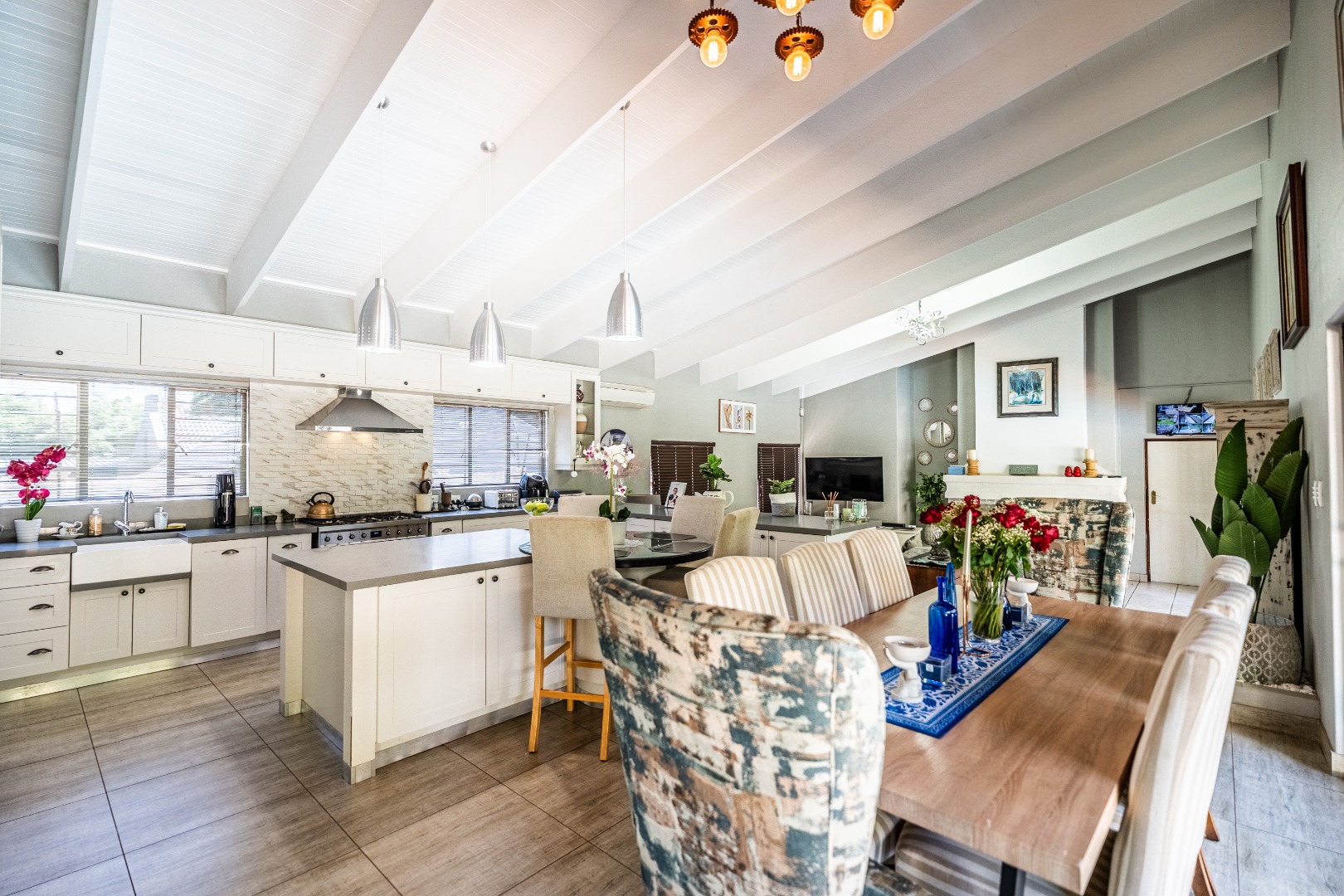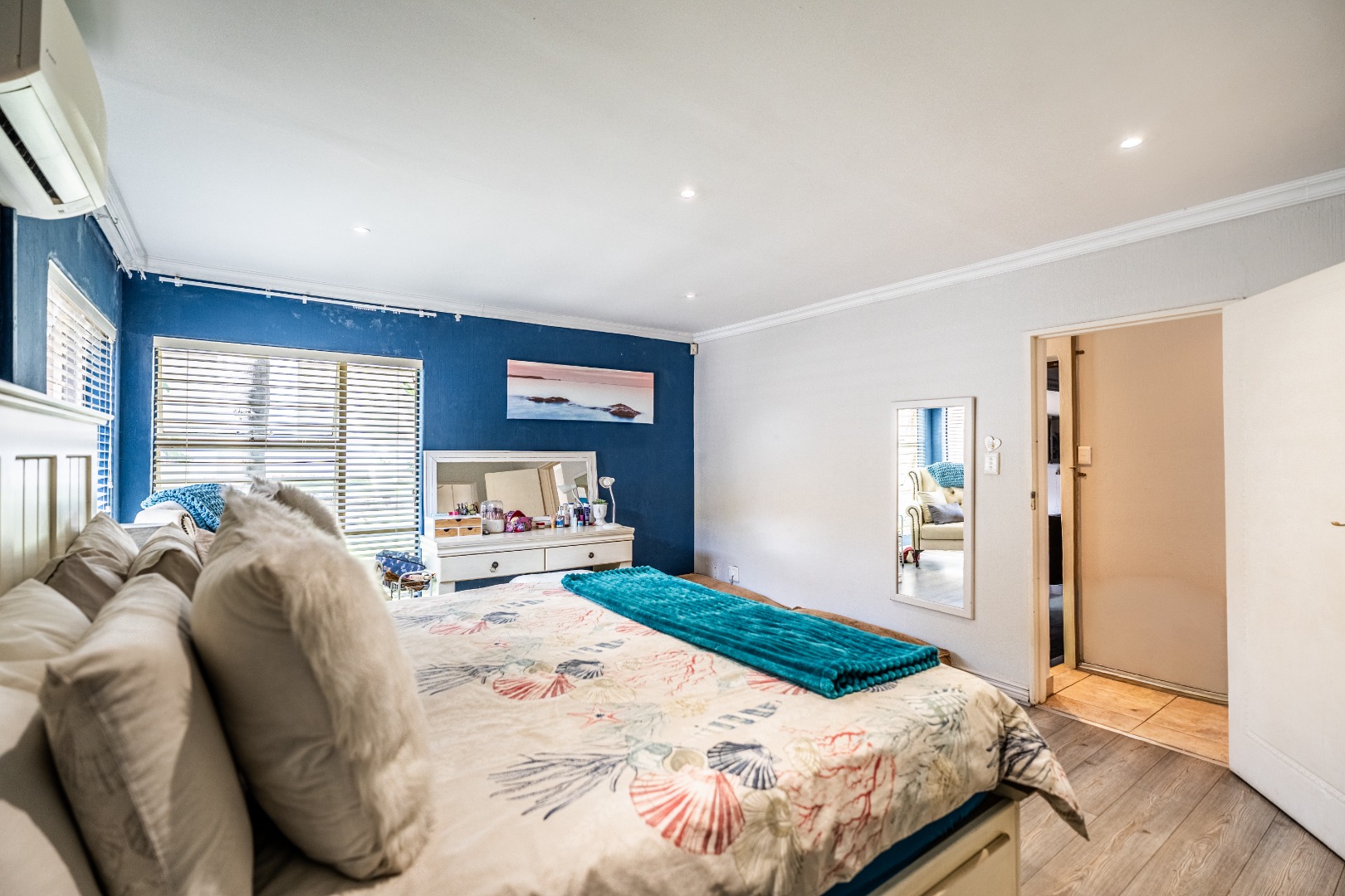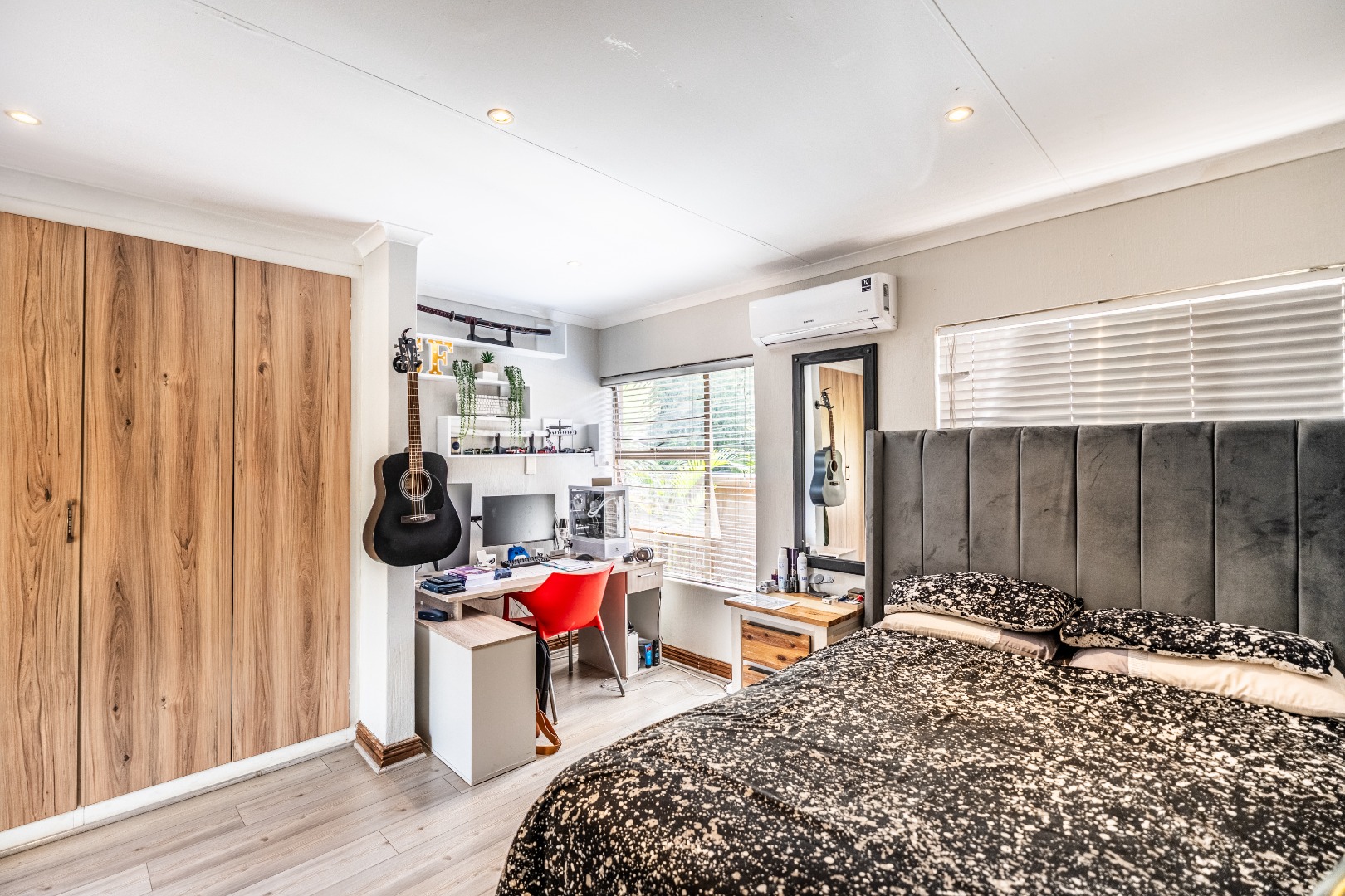 This home boasts four spacious bedrooms, including an en-suite bathroom, and guest bathroom. The bedrooms feature laminate flooring and built-in wardrobes. Air conditioning in three of the bedrooms ensures you stay cool during those hot South African summers.