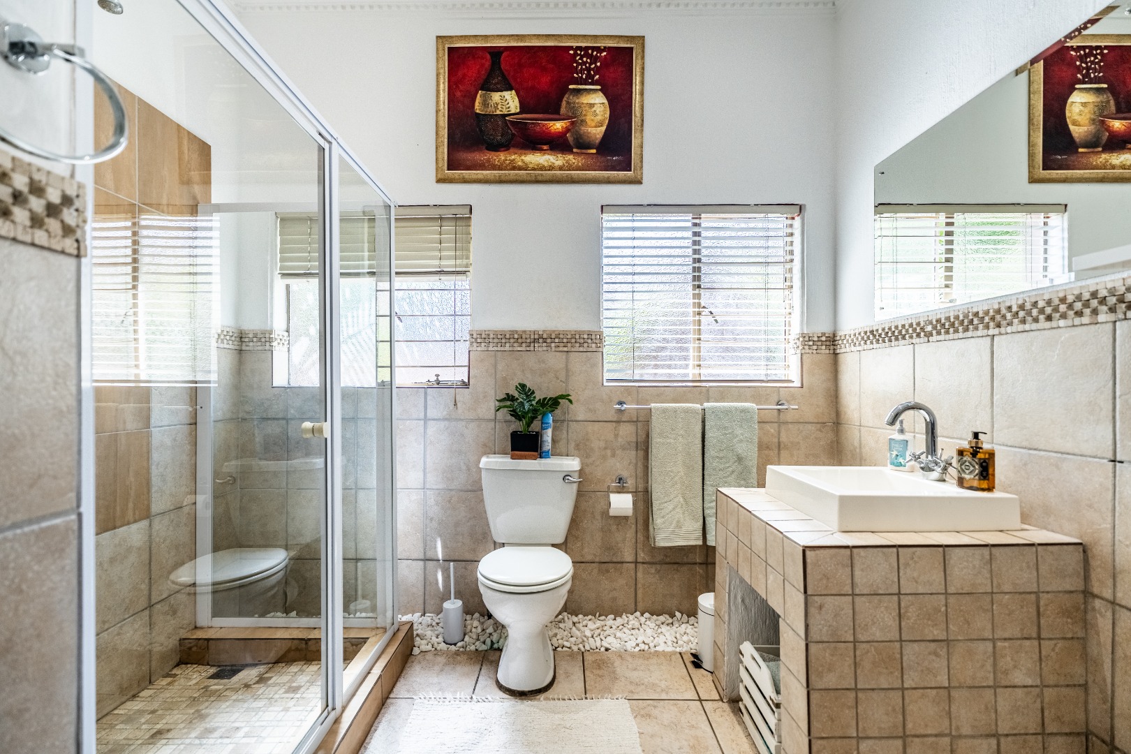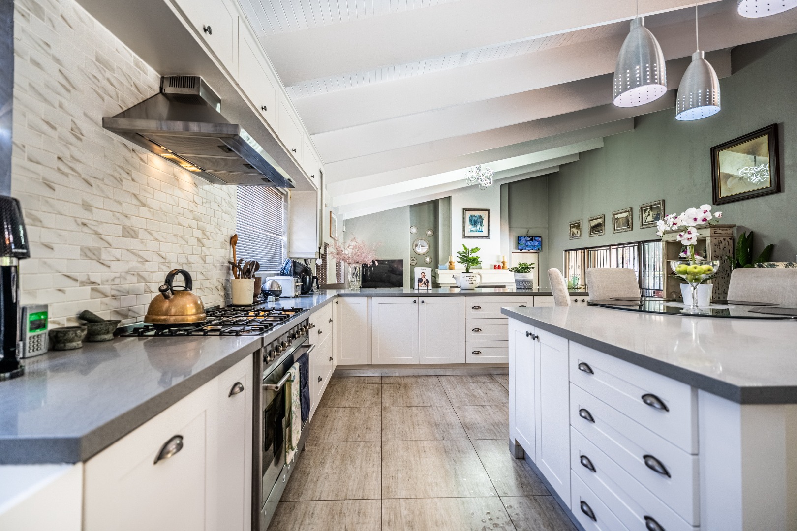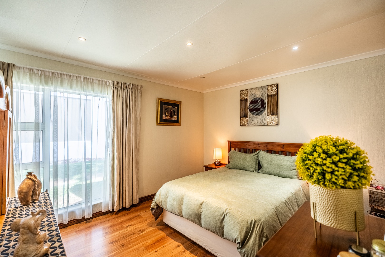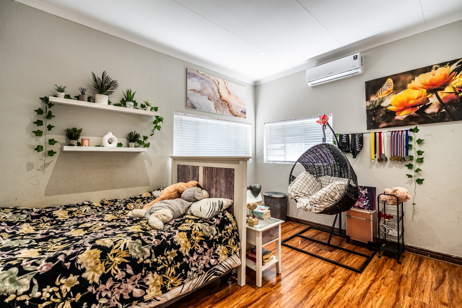 This home boasts four spacious bedrooms, including an en-suite bathroom, and guest bathroom. The bedrooms feature laminate flooring and built-in wardrobes. Air conditioning in three of the bedrooms ensures you stay cool during those hot South African summers.