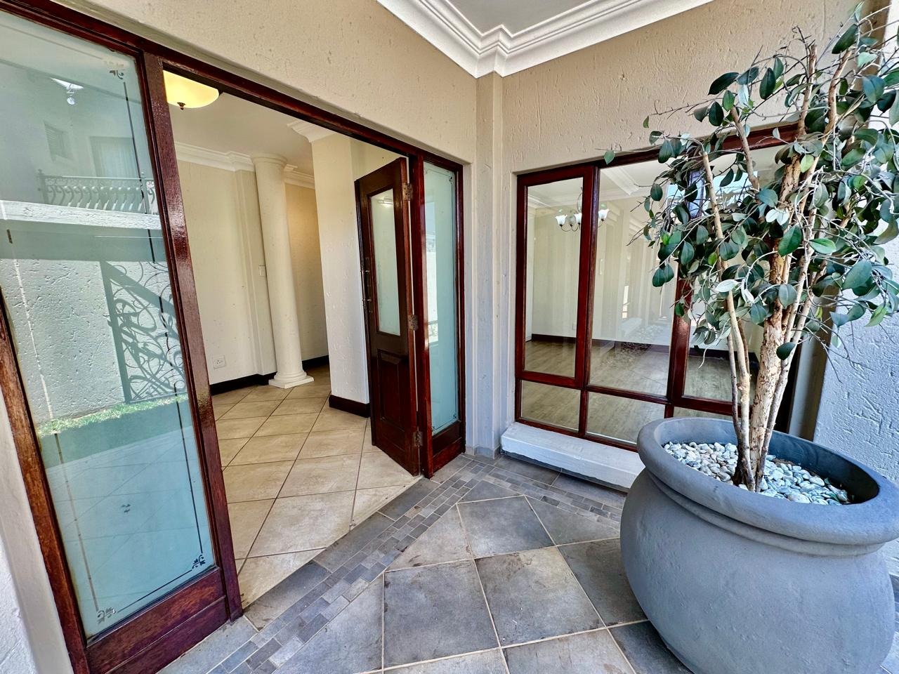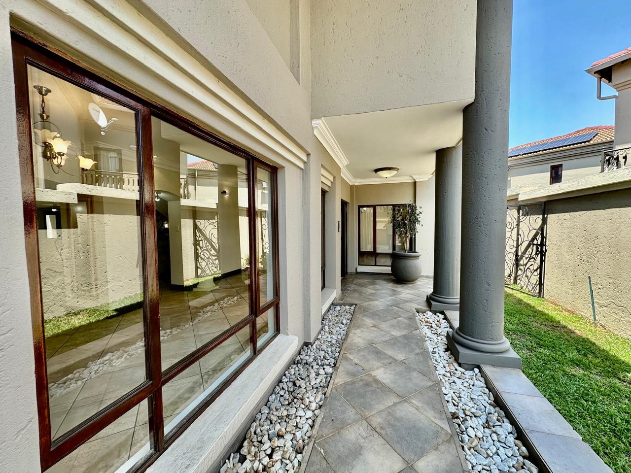 Discover an exceptional residential opportunity within a prestigious security estate in Faerie Glen, Pretoria. This expansive property, boasting a generous 480 sqm under roof on a 510 sqm erf, offers a blend of comfort and secure living ideal for families. The home features five well-appointed bedrooms and five bathrooms, providing ample space and privacy for all residents. A notable addition is the versatile flatlet, perfect for extended family, guests, or potential rental income. The interior is designed for practical living, including a cozy fireplace for cooler evenings and sliding doors that enhance natural light and flow. The property also benefits from a special balcony feature, adding an elegant touch and outdoor enjoyment. With pets allowed, this home caters to a complete family lifestyle. Outdoor living is well-catered for with a private patio and a well-maintained garden, complemented by practical paving. The property includes two garages, ensuring secure parking and additional storage. Located within a security estate with 24-hour security and a security gate, residents can enjoy peace of mind. Fibre connectivity is also available, supporting modern work-from-home and entertainment needs. Nestled in the sought-after suburb of Faerie Glen, Pretoria, this property offers convenient access to local amenities and a desirable lifestyle. Key Features: * Five Bedrooms * Five Bathrooms * Dedicated Flatlet * Private Patio and Garden * Two Garages * Fireplace * Balcony Special Feature * 24-Hour Security Estate * Fibre Ready * Pets Allowed