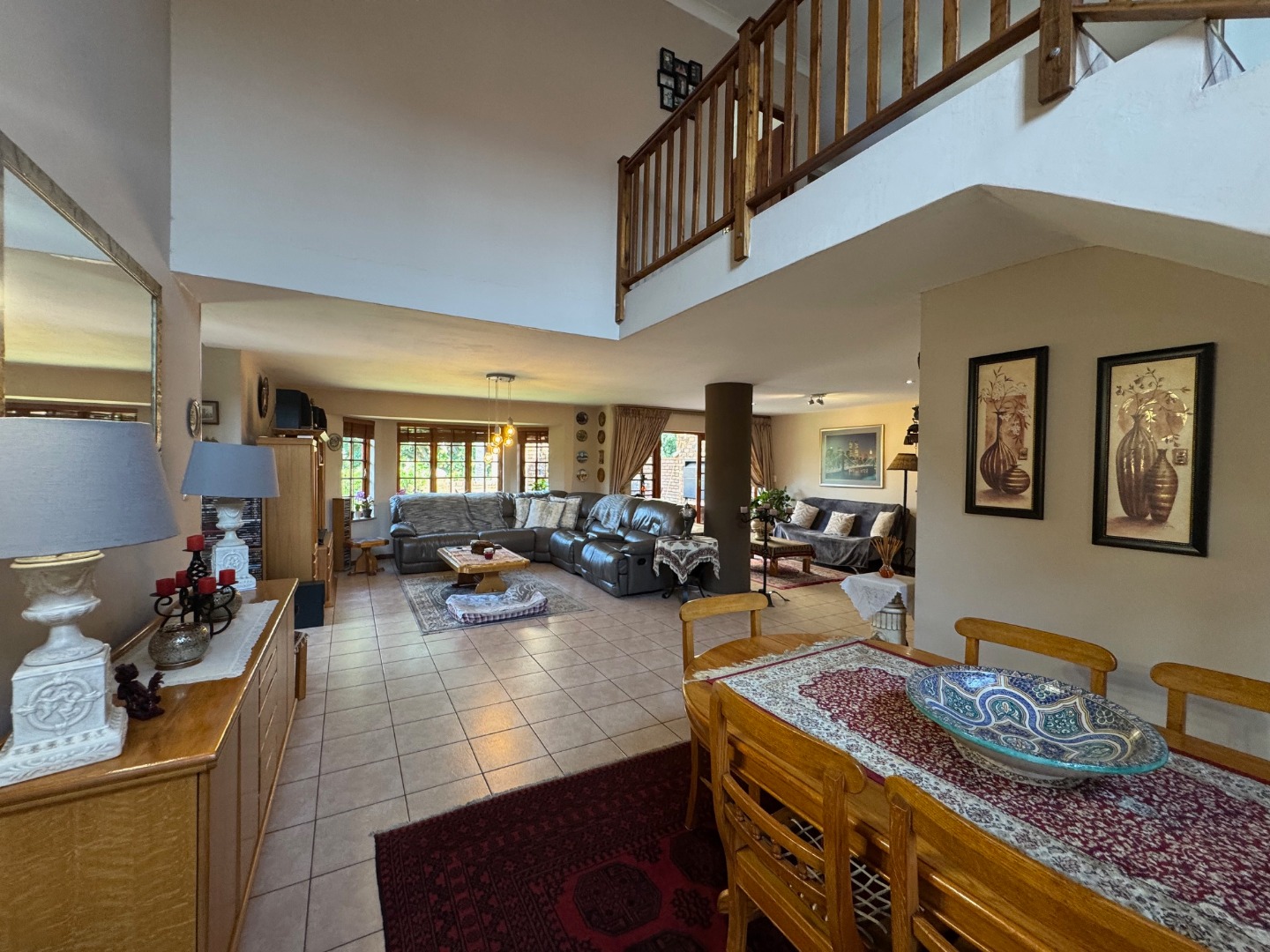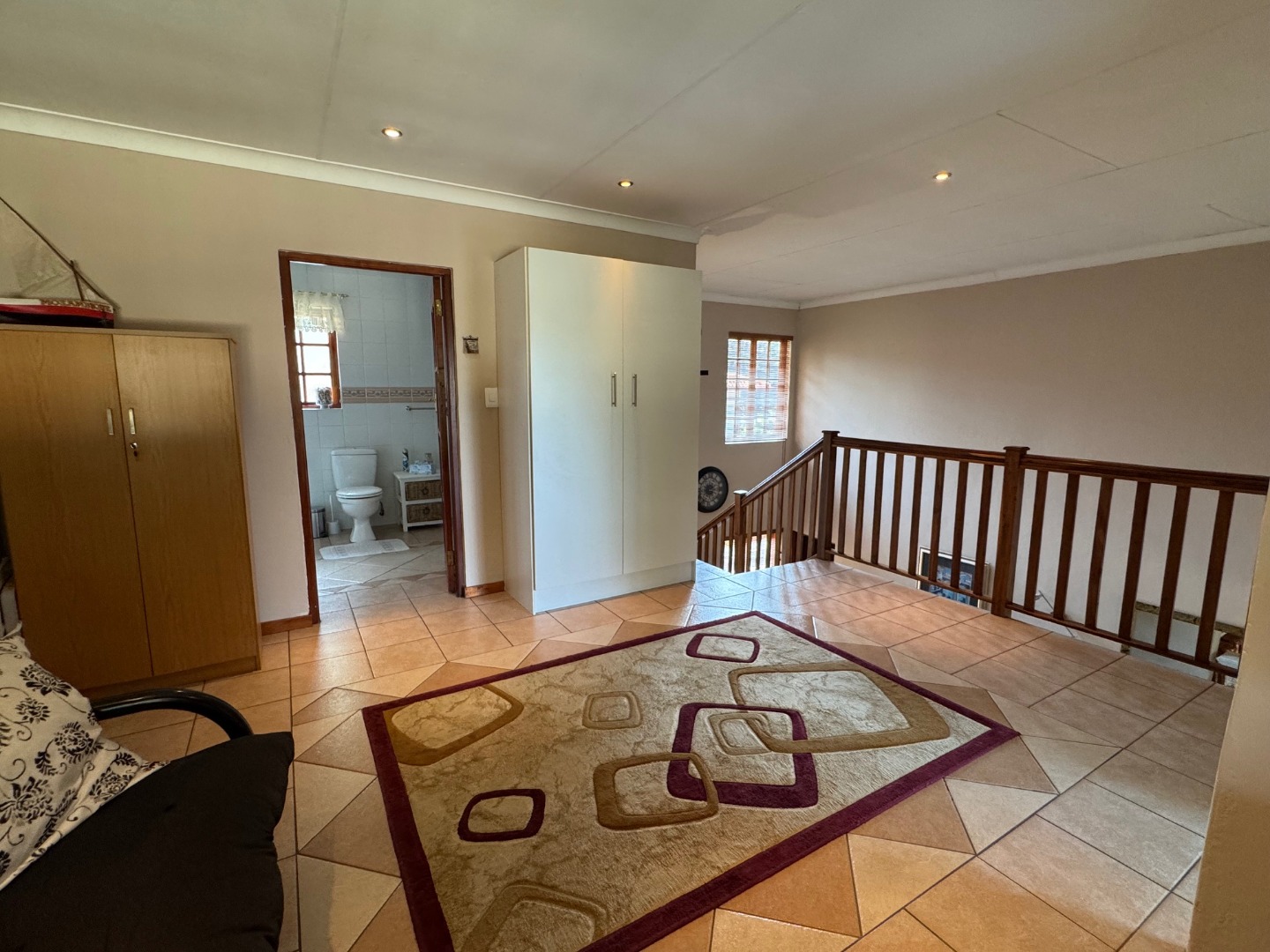 Upstairs Pyjama lounge leading to a Large undercover balcony