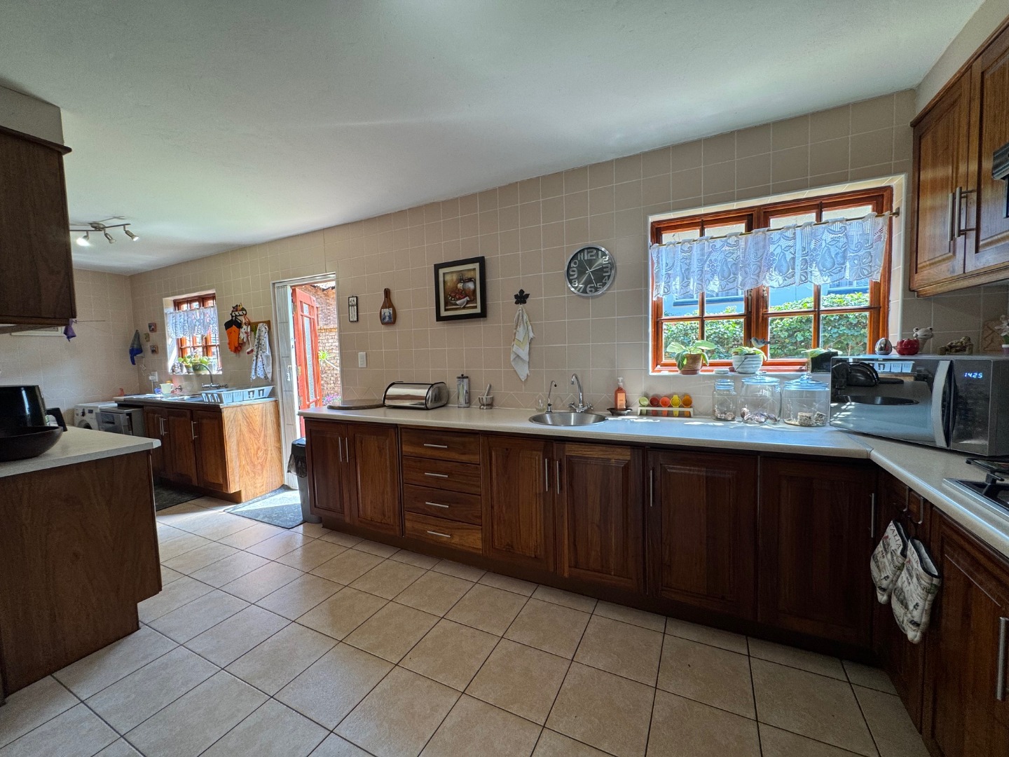 Kitchen has space for 2 double door fridges