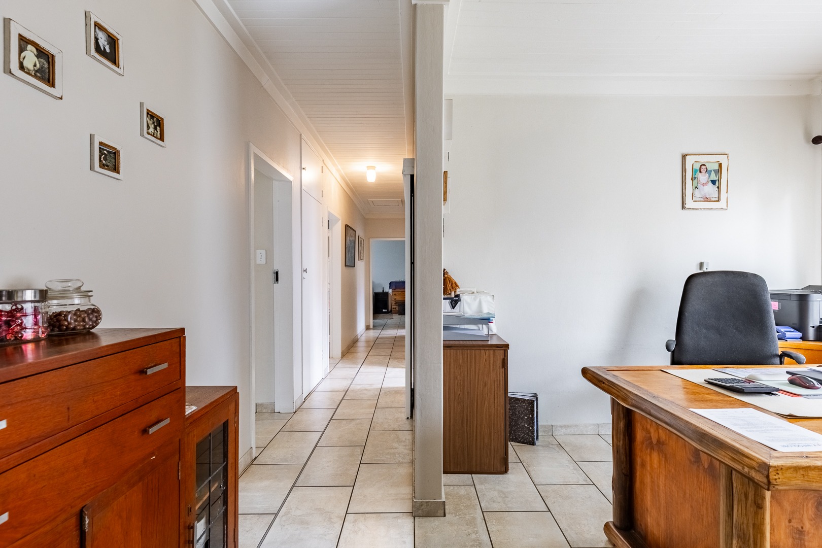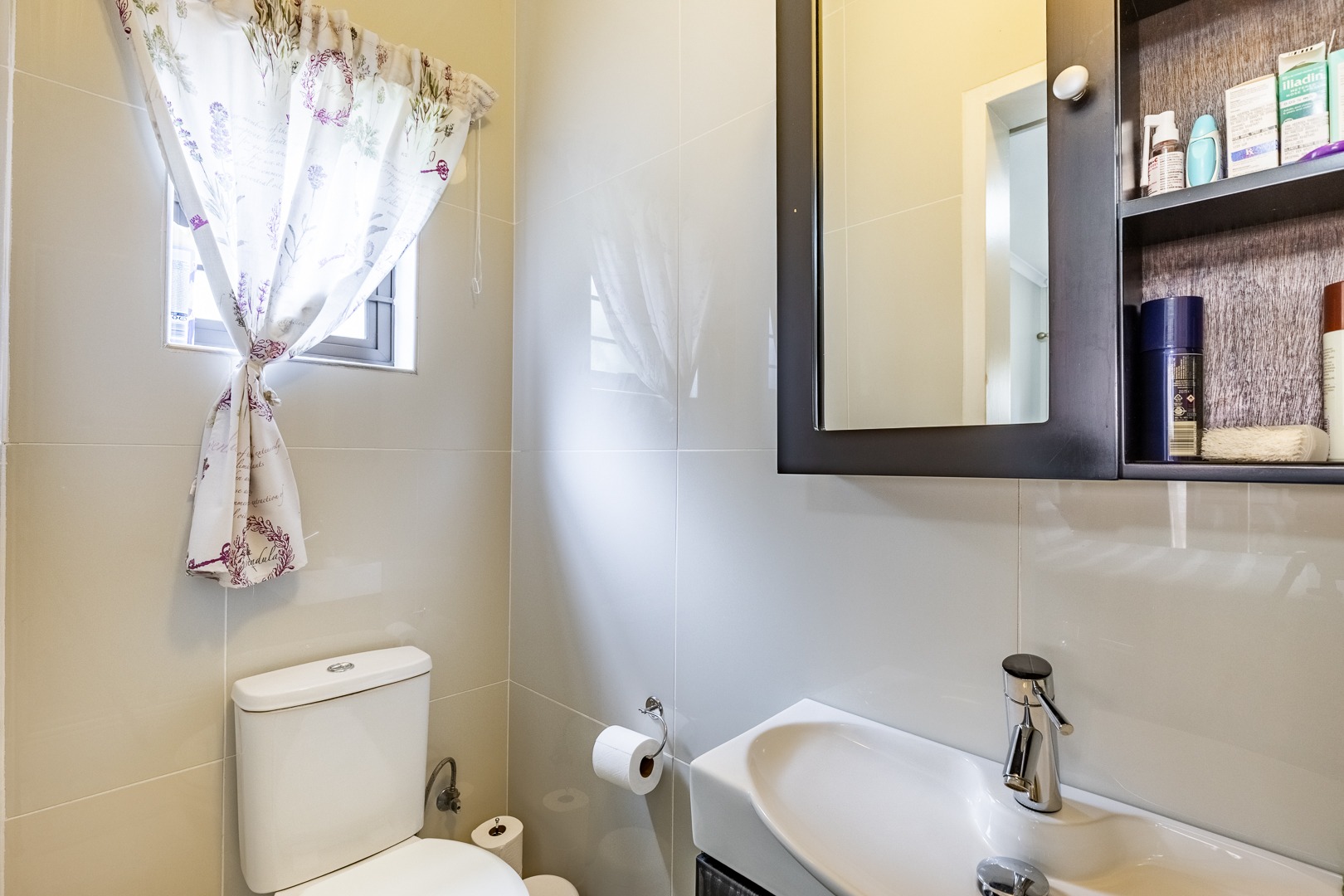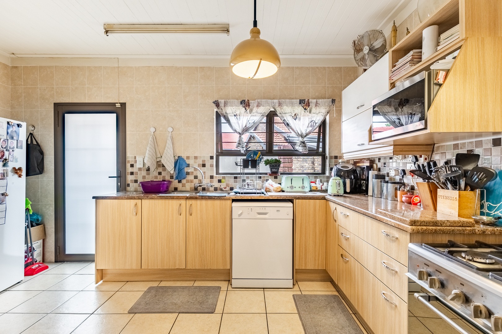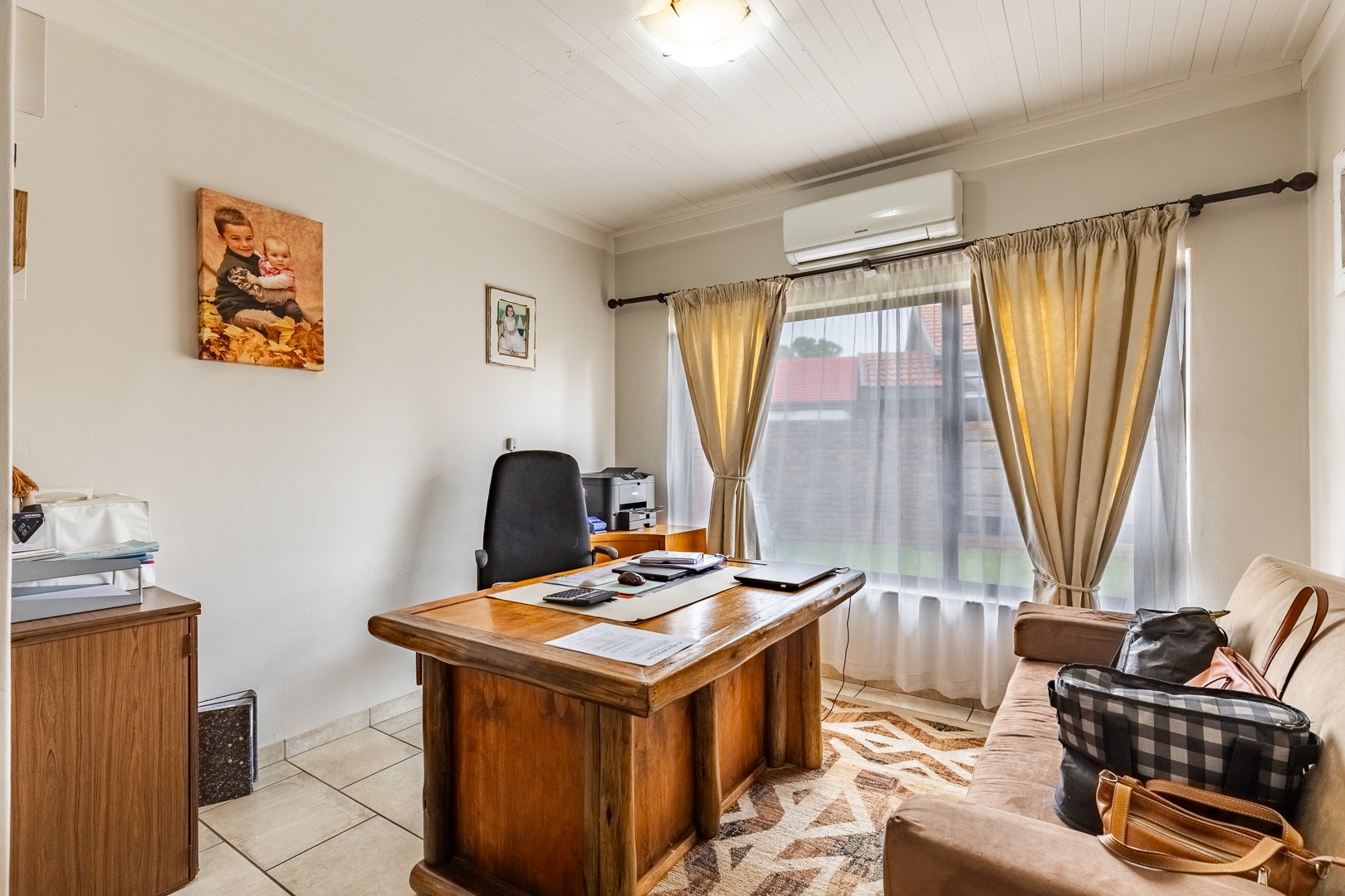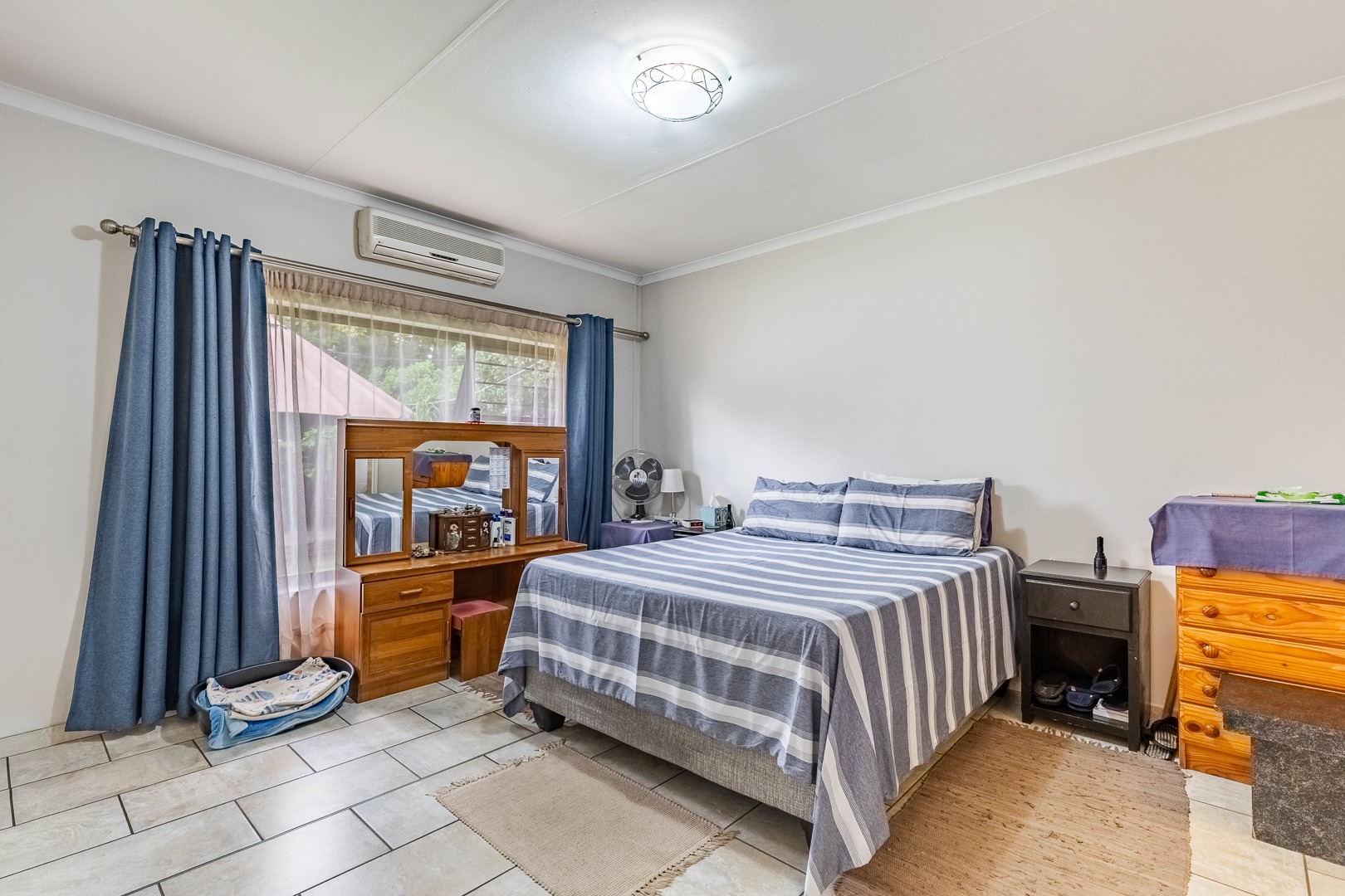 The home offers a spacious living area, and the owner has enclosed the patio and converted it into a dining room with a built-in braai, creating a versatile entertainment space that can be enjoyed all year round. The kitchen is well-designed with granite countertops, a separate pantry, a gas stove, and ample space for all your appliances, making it both practical and stylish.