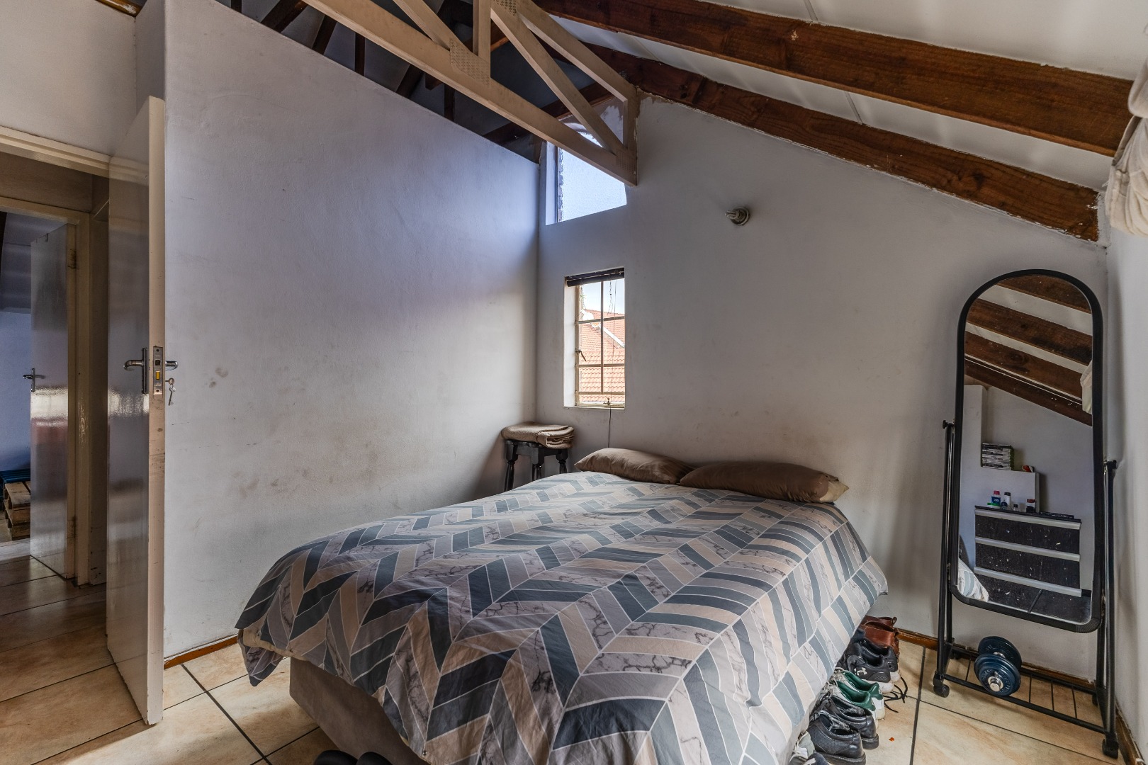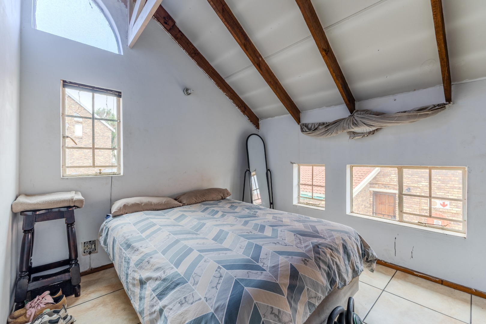 The main bedroom is conveniently located downstairs, providing privacy and ease of access, and is perfectly suited for relaxed living.