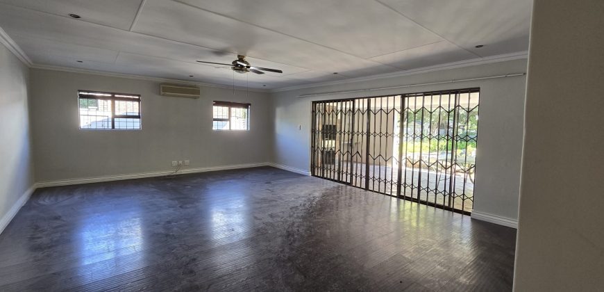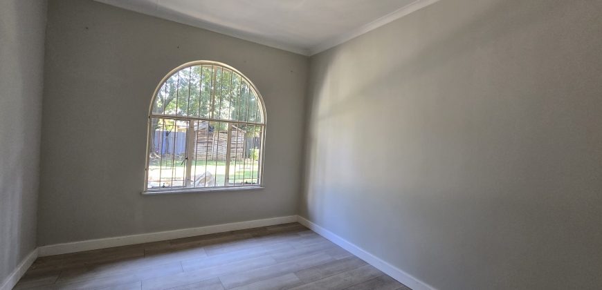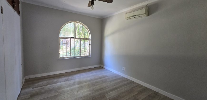 The heart of this home is its stunning, large kitchen, equipped with abundant cupboard space and a convenient scullery, catering to all culinary needs. Accommodation is well-appointed with four spacious bedrooms, each featuring ample built-in cupboards for organised storage. These are complemented by two lovely bathrooms, ensuring comfort and practicality for the entire household.