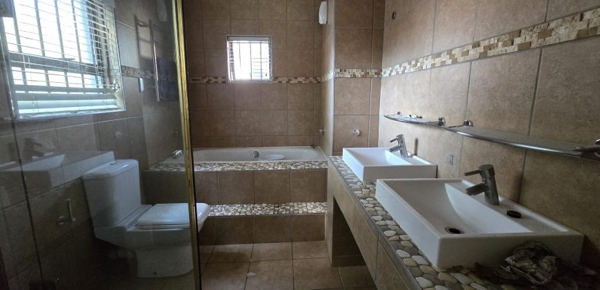 A spacious 4-bedroom, 2-bathroom family home in Garsfontein, Pretoria, featuring generous living areas, a large kitchen with scullery, and a double garage. The property includes a garden, patio with built-in braai, staff facilities, and a pool currently being fitted. Located conveniently near Menlyn Park, this home offers comfort and potential in a sought-after suburban area.