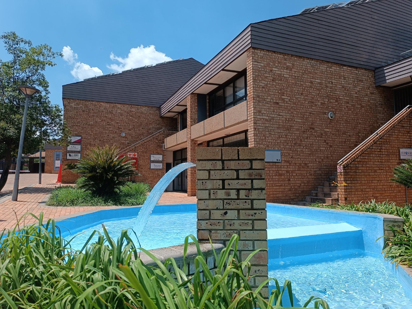 The office park offers good security, controlled access, safe parking for clients, and neat gardens along the walkways.