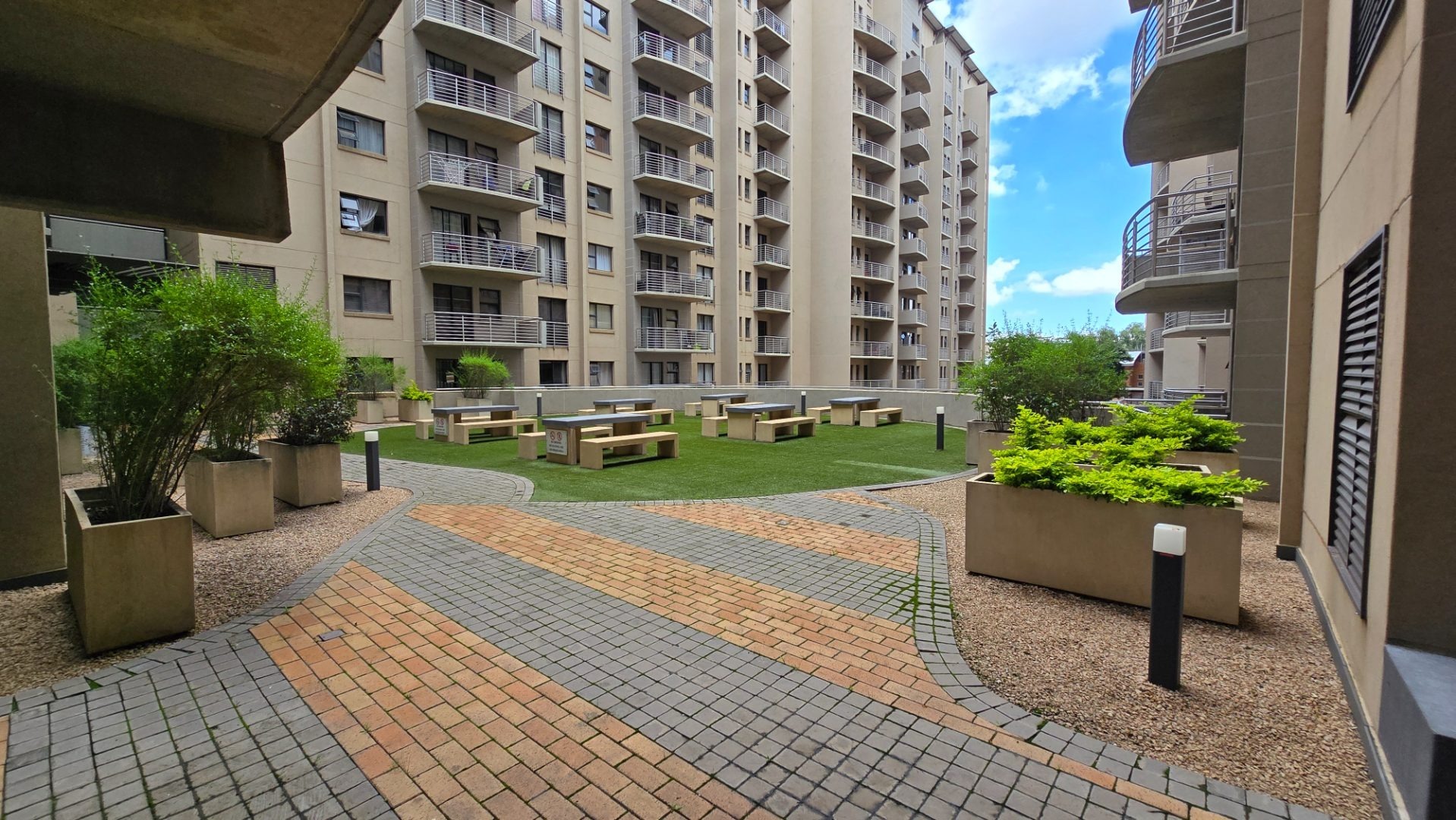 Step outside onto your private balcony, a special feature offering panoramic city and green views, perfect for relaxation or enjoying the urban landscape. The property includes one dedicated parking bay, adding to the convenience. Accessibility is also a key feature, with the building being wheelchair-friendly and equipped with lifts, ensuring easy movement throughout the complex.