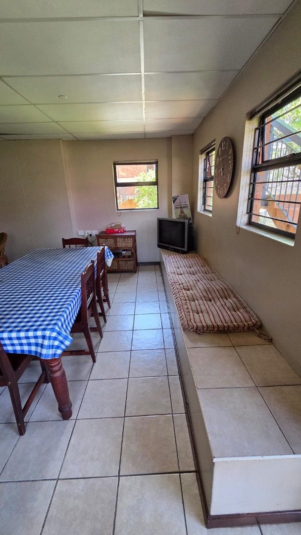 Discover this exceptional student accommodation opportunity located in the vibrant suburb of Hatfield, Pretoria. This modern, multi-story building presents a robust red brick facade, complemented by individual balconies that offer private outdoor spaces. The property boasts a well-maintained exterior, featuring a lush green lawn, vibrant gardens with flowering Jacaranda trees, and tropical palms, all secured by a black wrought-iron fence. Step inside to find a functional and spacious interior spanning 211 sqm. The open-plan living areas are designed for communal living, featuring durable tiled flooring throughout. A large dining area, capable of seating many, flows seamlessly into a practical kitchen equipped with ample light wood-colored cabinetry, dark granite-look countertops, and a convenient breakfast bar. While some elements like the drop ceilings and decor offer a classic aesthetic, the space is highly functional and ready for immediate occupation. This property is uniquely configured with eight comfortable bedrooms, each benefiting from its own en-suite bathroom, ensuring privacy and convenience for residents. Natural light floods the living spaces through multiple windows, some fitted with security bars for added peace of mind. The layout is ideal for shared living, providing both communal zones and individual retreats. Outdoor amenities include a covered parking area with eight dedicated bays, accessible via a paved driveway, enhancing convenience and security. The presence of visible water tanks suggests a commitment to sustainability. Situated within a security complex, this Hatfield property offers a secure environment, making it an attractive option for student living in Pretoria. Key Features: * 8 Bedrooms, each with an en-suite bathroom * 8 Dedicated parking bays * 211 sqm Floor Size * Open-plan living and dining areas * Functional kitchen with breakfast bar * Modern brick architecture with individual balconies * Lush, well-maintained gardens * Located in a secure complex in Hatfield, Pretoria * Ideal student accommodation
