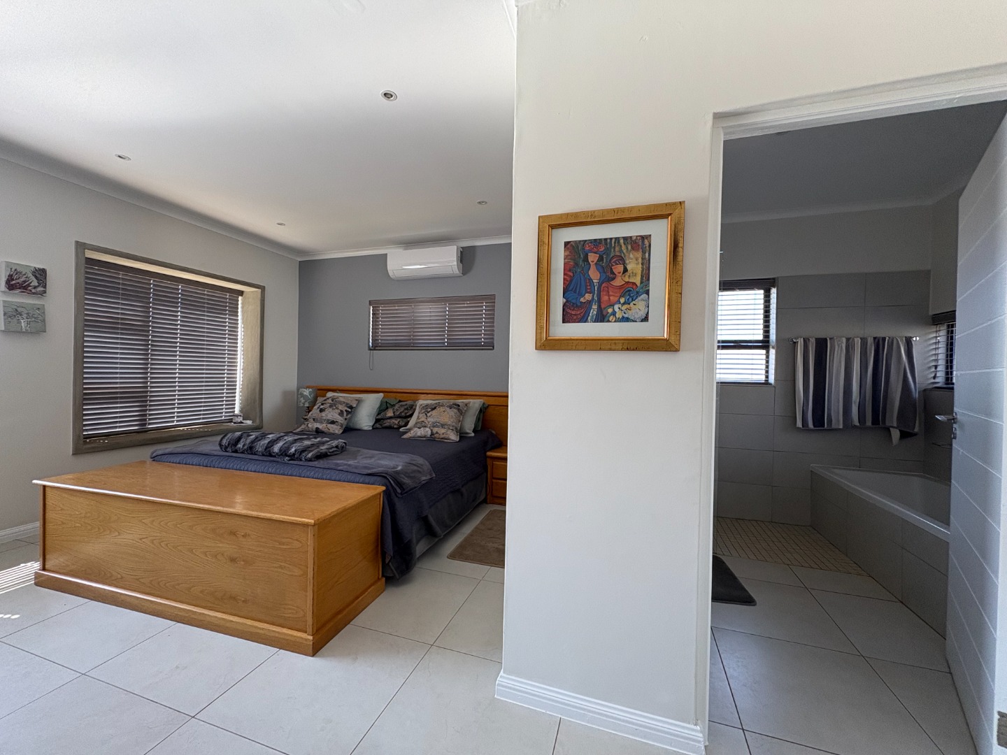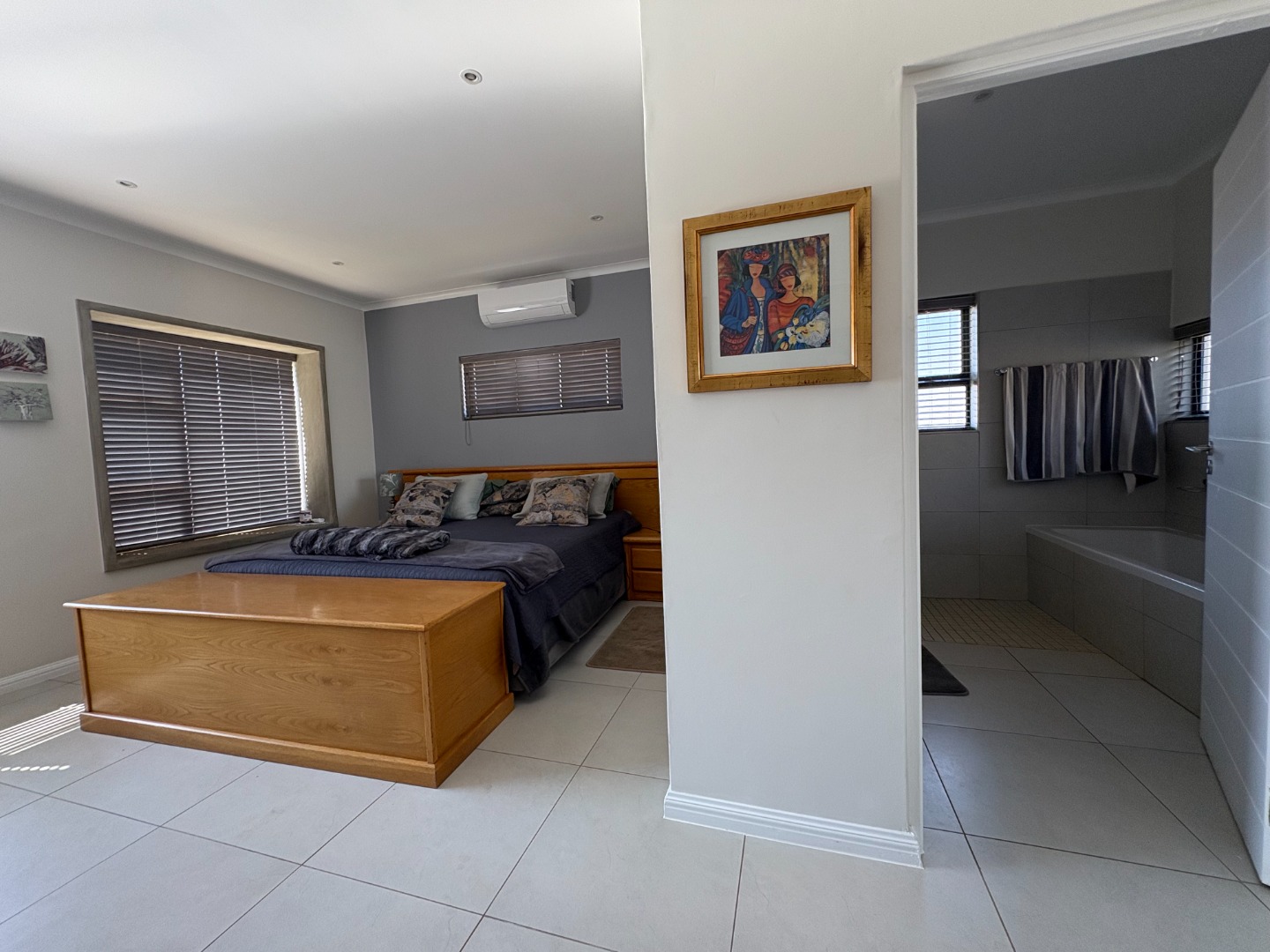 Additional features include an air conditioner in the master bedroom, a solar system with inverter, a solar geyser, and fibre internet connectivity.