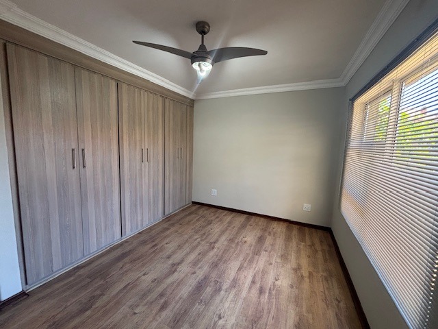 - Main-en-suite spacious room north facing with laminate flooring, built-in cupboards, ceiling fan and blinds
