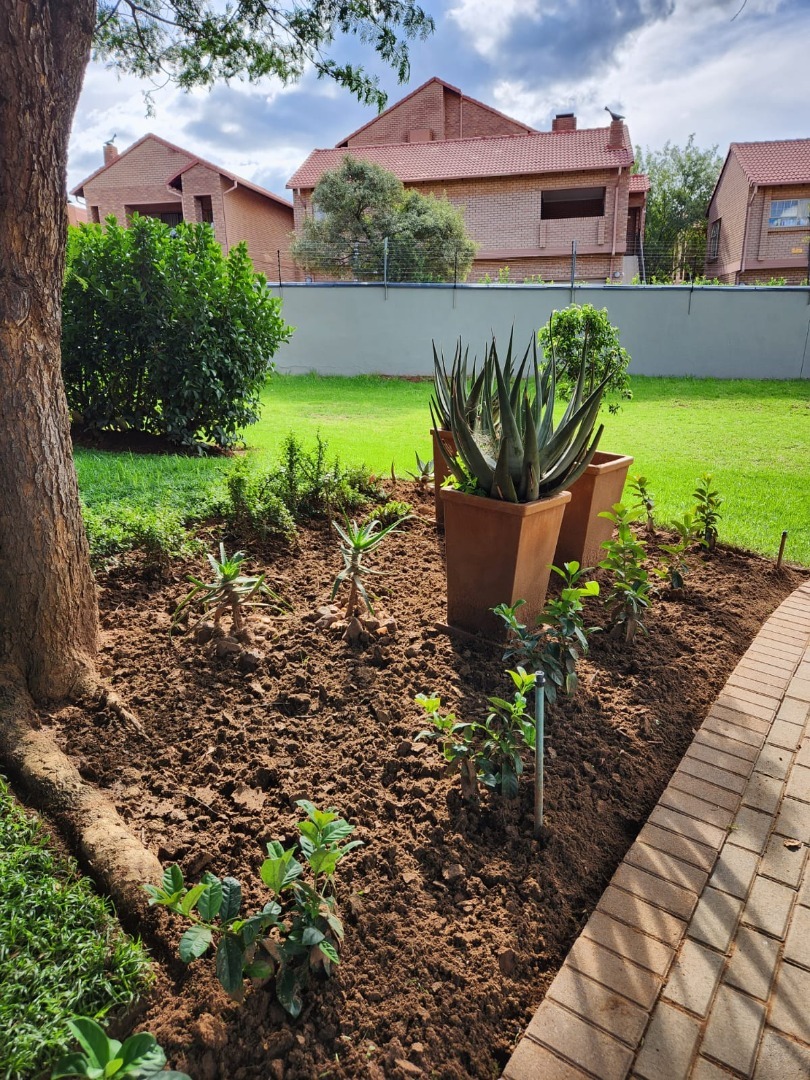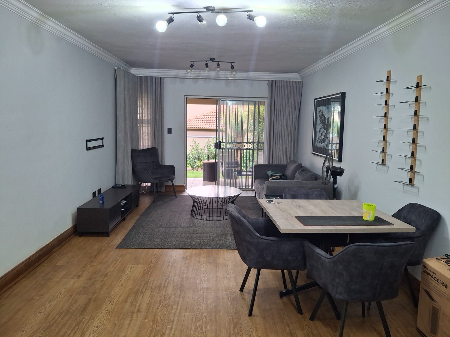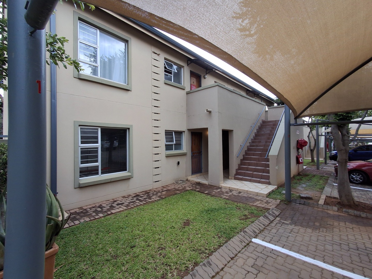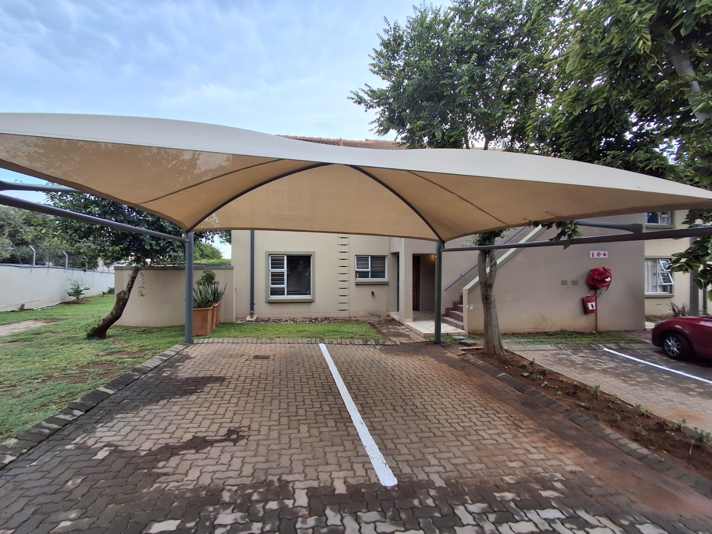 Discover modern living in the secure Leeuwenhof Estate, Pretoria. This appealing ground floor unit boasts a well-maintained exterior with a lush green lawn, mature trees, and a welcoming paved pathway, offering excellent kerb appeal within a tranquil, security-conscious environment. Residents benefit from 24-hour security, access gates, electric fencing, and a security post, alongside communal amenities like a swimming pool and clubhouse.