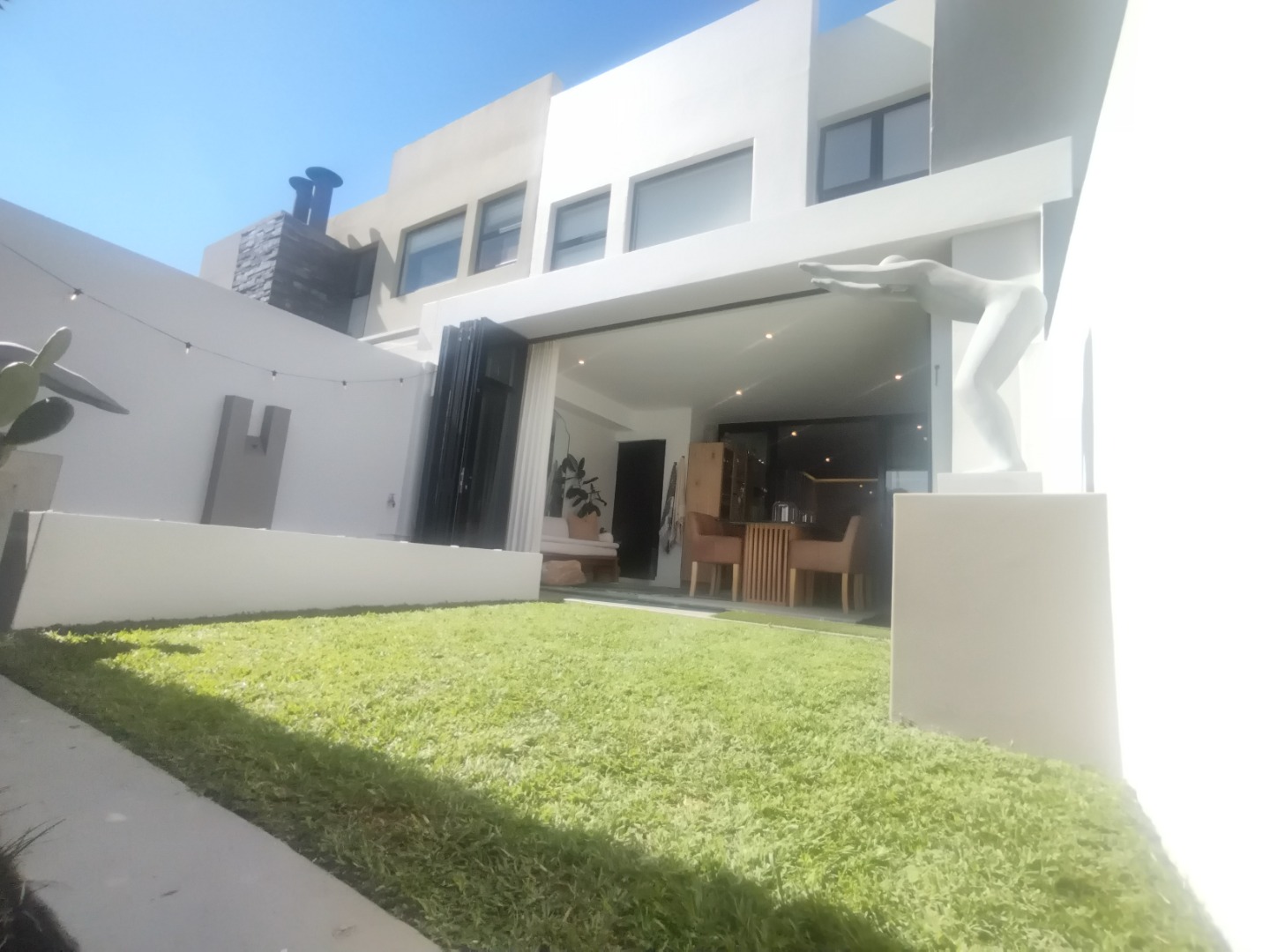 Discover contemporary living in this stylish property located within the secure Lombardy Estate in Pretoria, South Africa. Boasting a modern architectural design with a sleek white and grey facade, this home offers excellent kerb appeal and large tinted windows for both light and privacy. The interior features an inviting open-plan layout, seamlessly connecting the living, dining, and family TV room, all bathed in natural light from expansive sliding glass doors that promote effortless indoor-outdoor flow. The residence includes one well-appointed bedroom, complemented by a dedicated study for remote work or creative pursuits, and 1.5 bathrooms, featuring a convenient guest toilet. The modern kitchen is designed for functionality and style. Step outside to a private, well-maintained garden complete with a refreshing plunge pool and a comfortable patio, perfect for relaxation and entertaining. A built-in braai enhances outdoor living, and pets are welcome. Security is paramount within this estate, offering 24-hour security, an access gate, and electric fencing for peace of mind. This home is also equipped with modern sustainability features, including solar panels and a battery inverter, ensuring energy efficiency. Fibre connectivity is available, catering to all your digital needs. Parking is provided with 1.5 garages and additional open parking, while residents also benefit from access to a club house. Key Features: * Modern Architectural Design * Open-Plan Living & Dining * Private Garden with Plunge Pool * 1 Bedroom, 1 Study, 1.5 Bathrooms * 1.5 Garages & Additional Parking * Solar Panels & Battery Inverter * Fibre Connectivity * 24-Hour Security Estate * Pet-Friendly * Built-in Braai & Patio