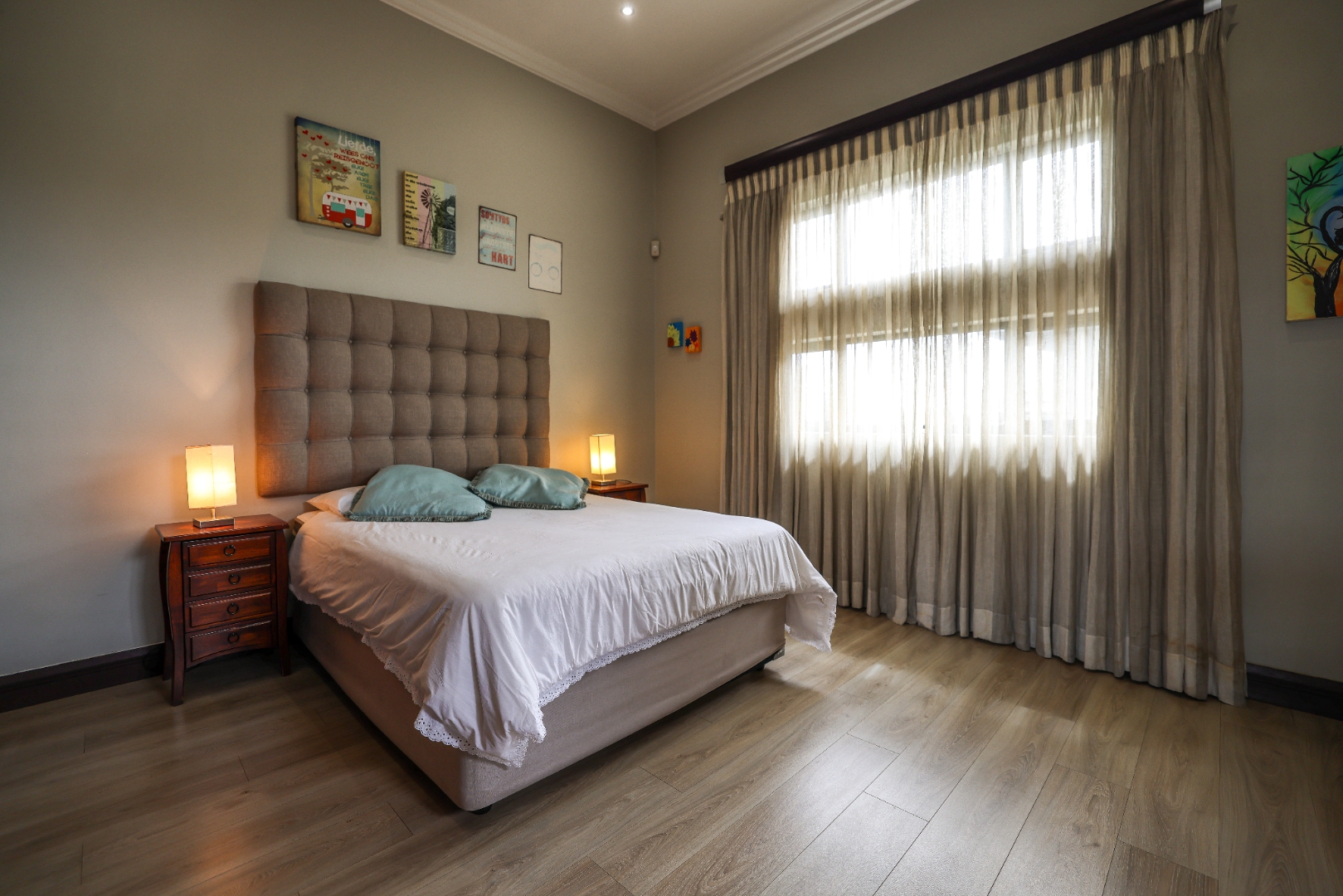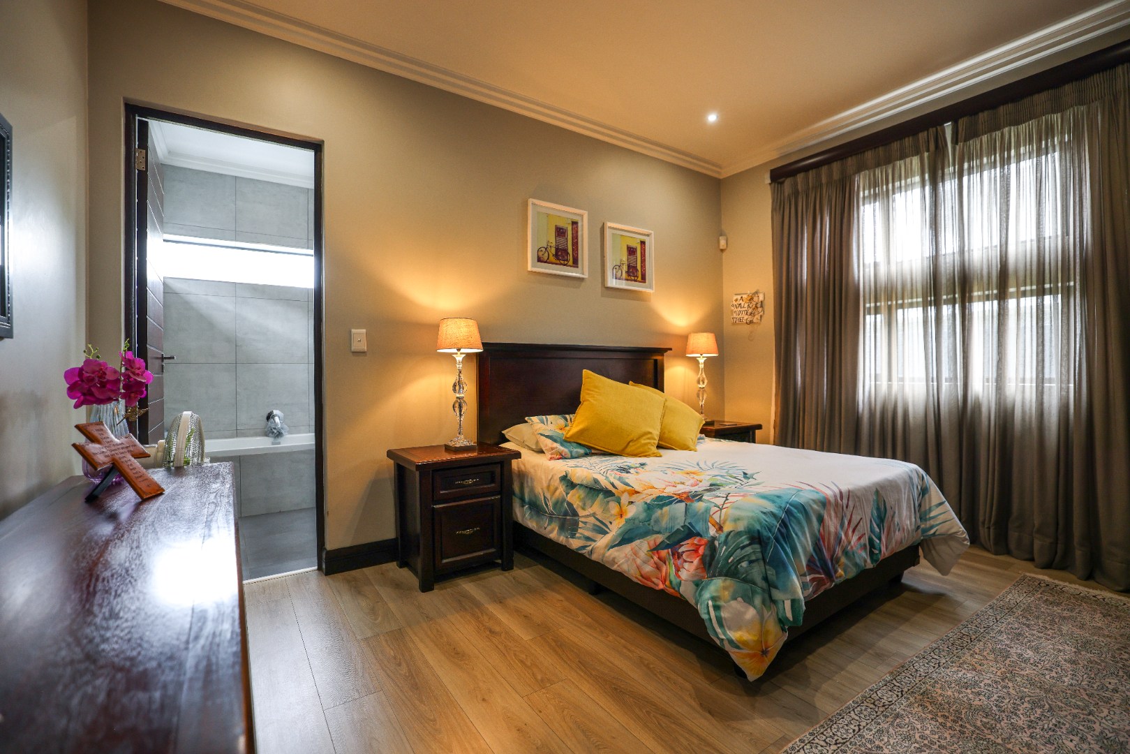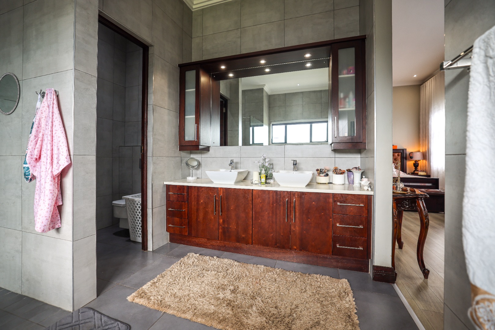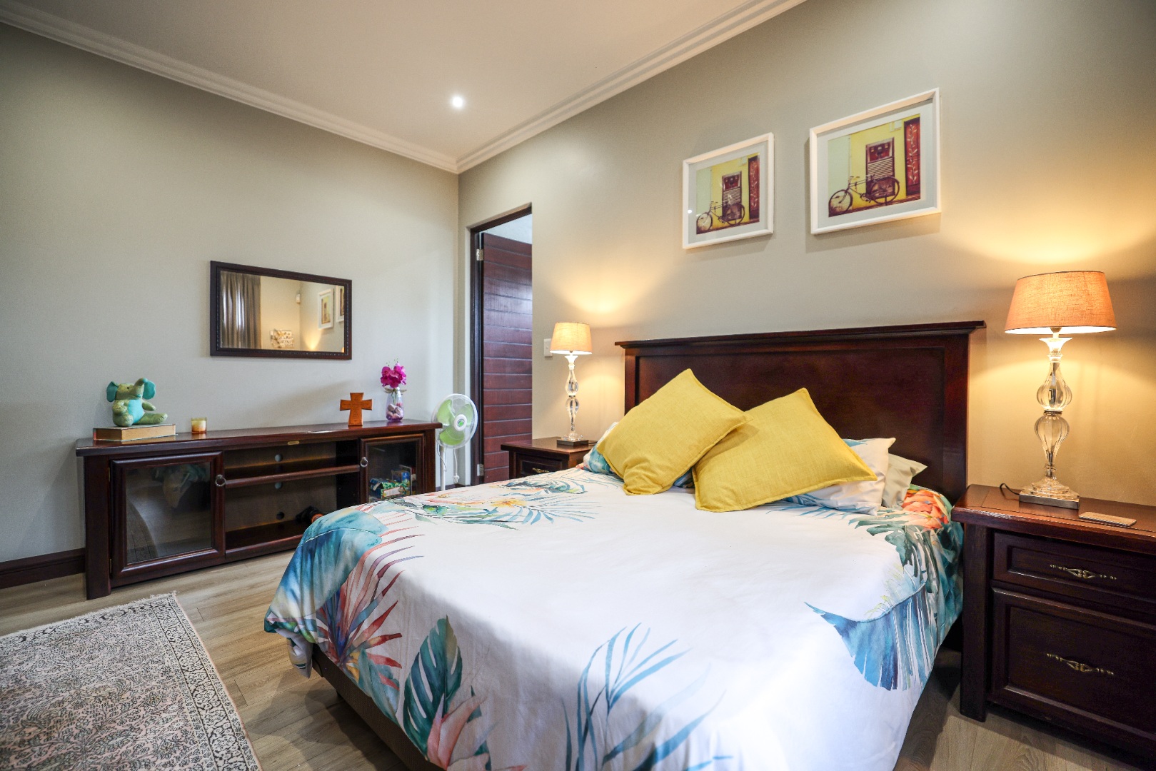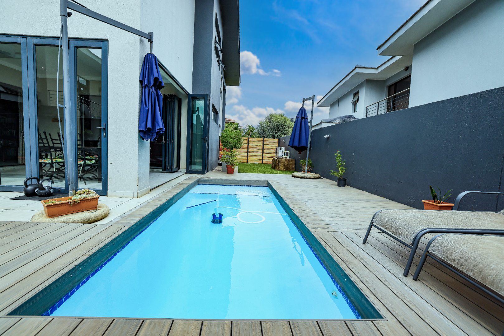 Beyond the interiors, the home extends into a lifestyle of leisure and sophistication, with a heated pool, landscaped gardens, and serene views of the estate’s lakes and greenery. Domestic quarters add convenience, while solar power, a borehole, and a water tank ensure sustainable living without compromise.