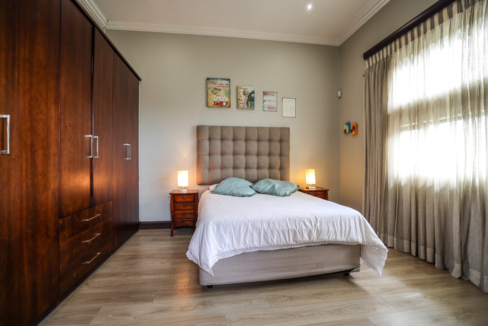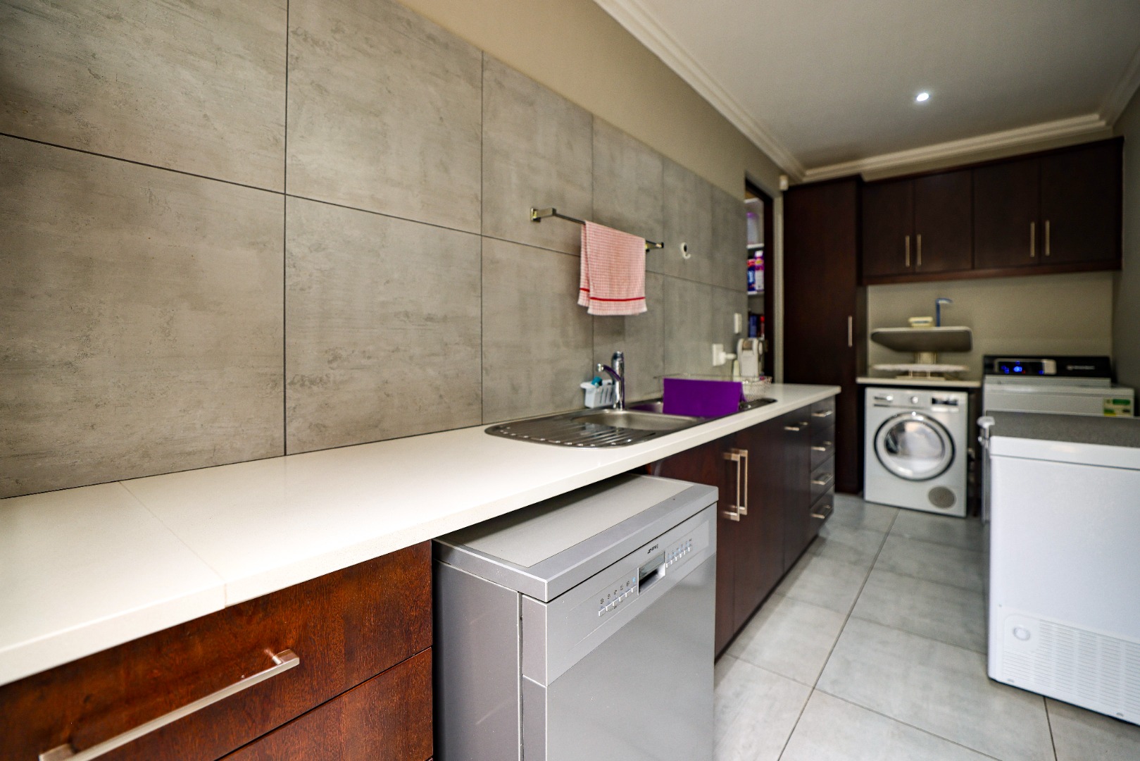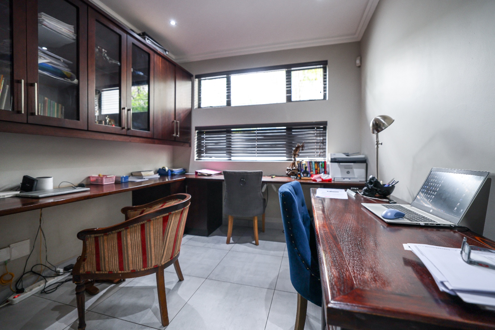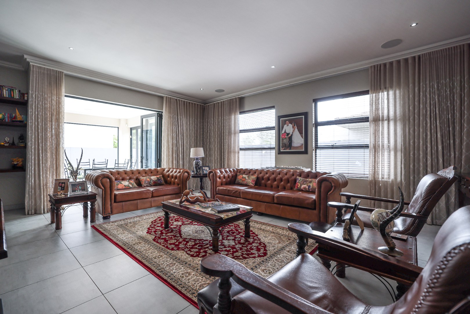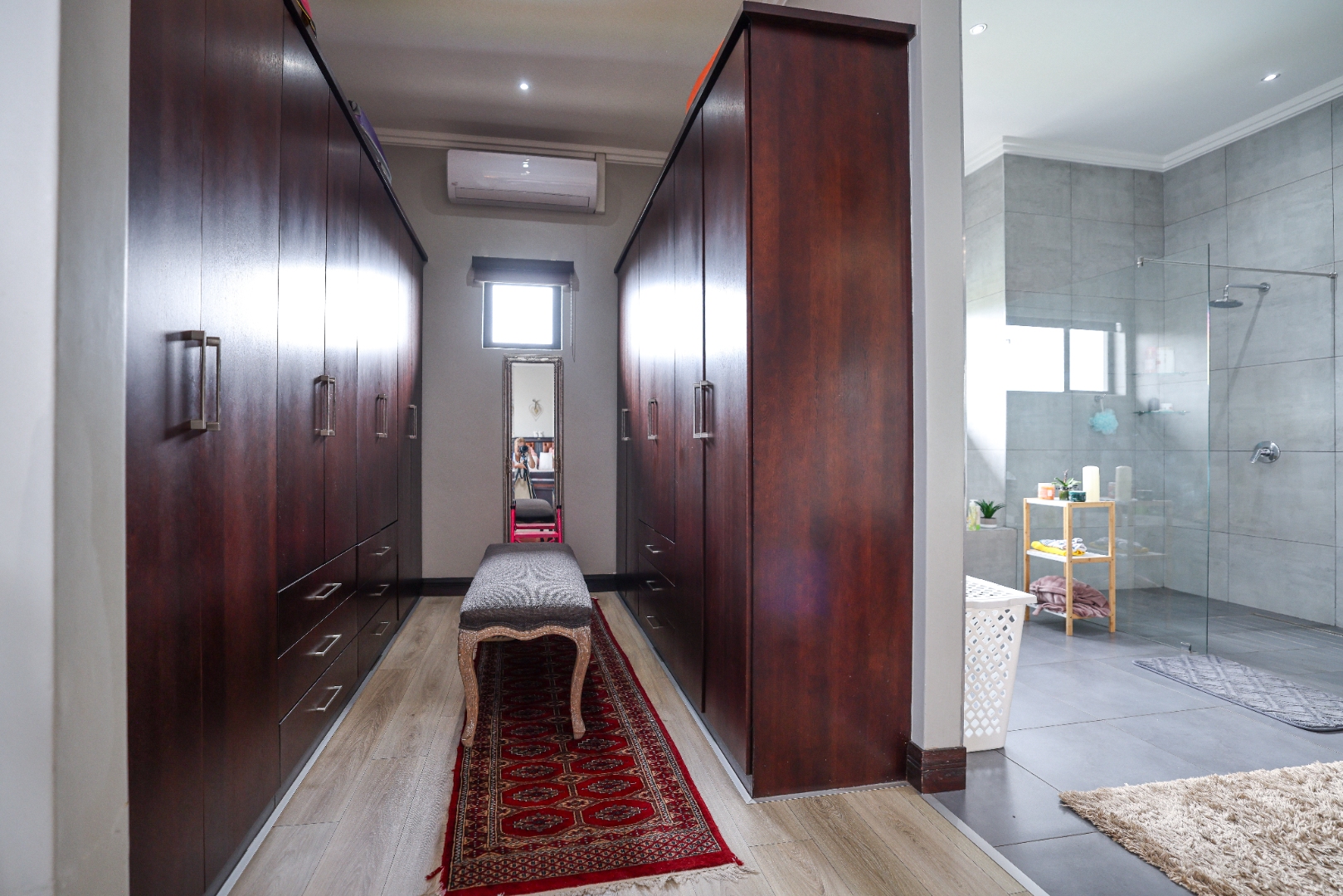 Beyond the interiors, the home extends into a lifestyle of leisure and sophistication, with a heated pool, landscaped gardens, and serene views of the estate’s lakes and greenery. Domestic quarters add convenience, while solar power, a borehole, and a water tank ensure sustainable living without compromise.