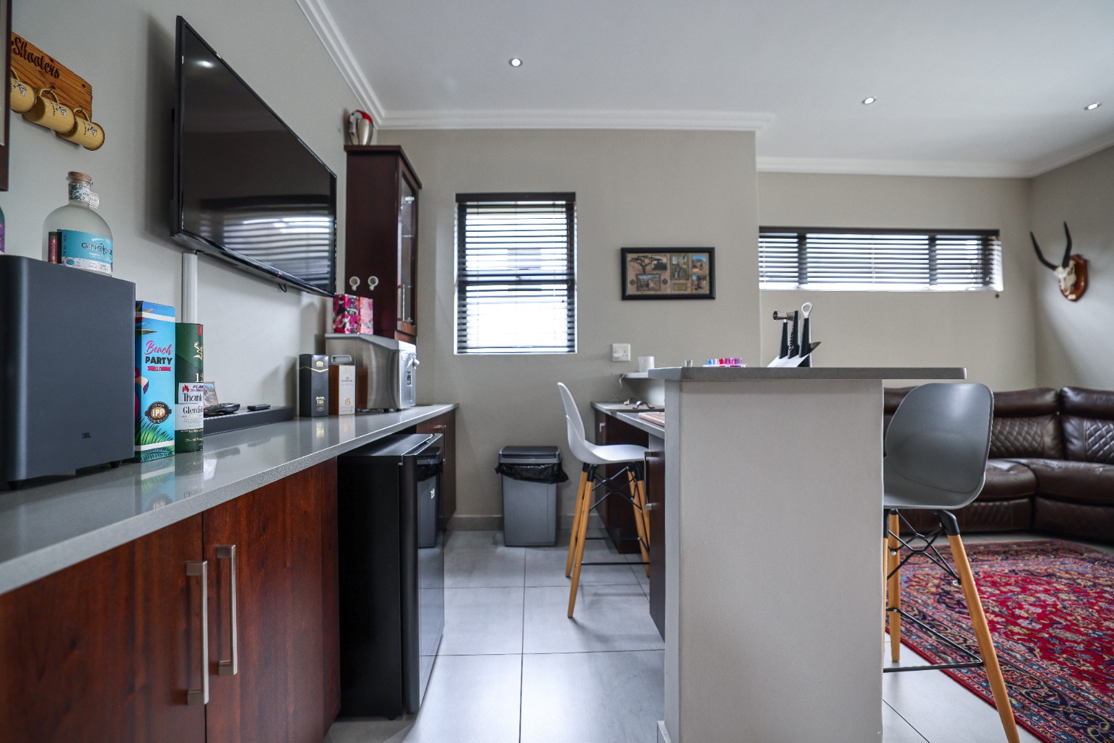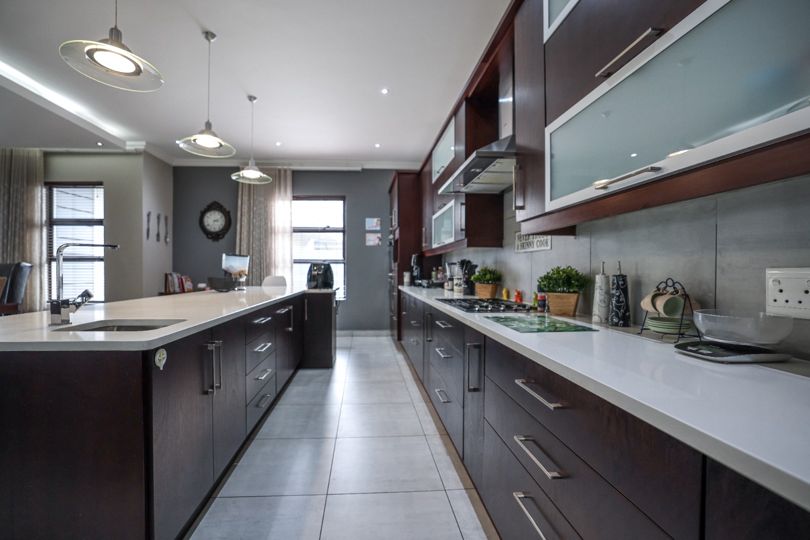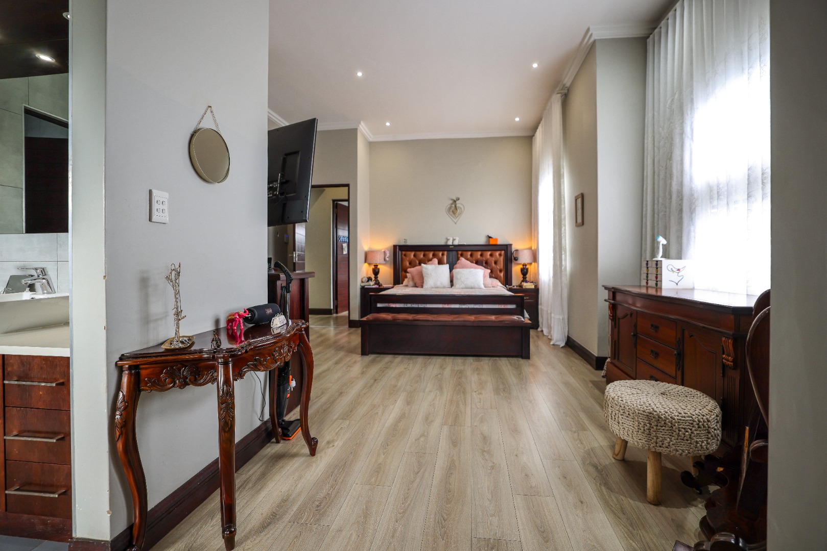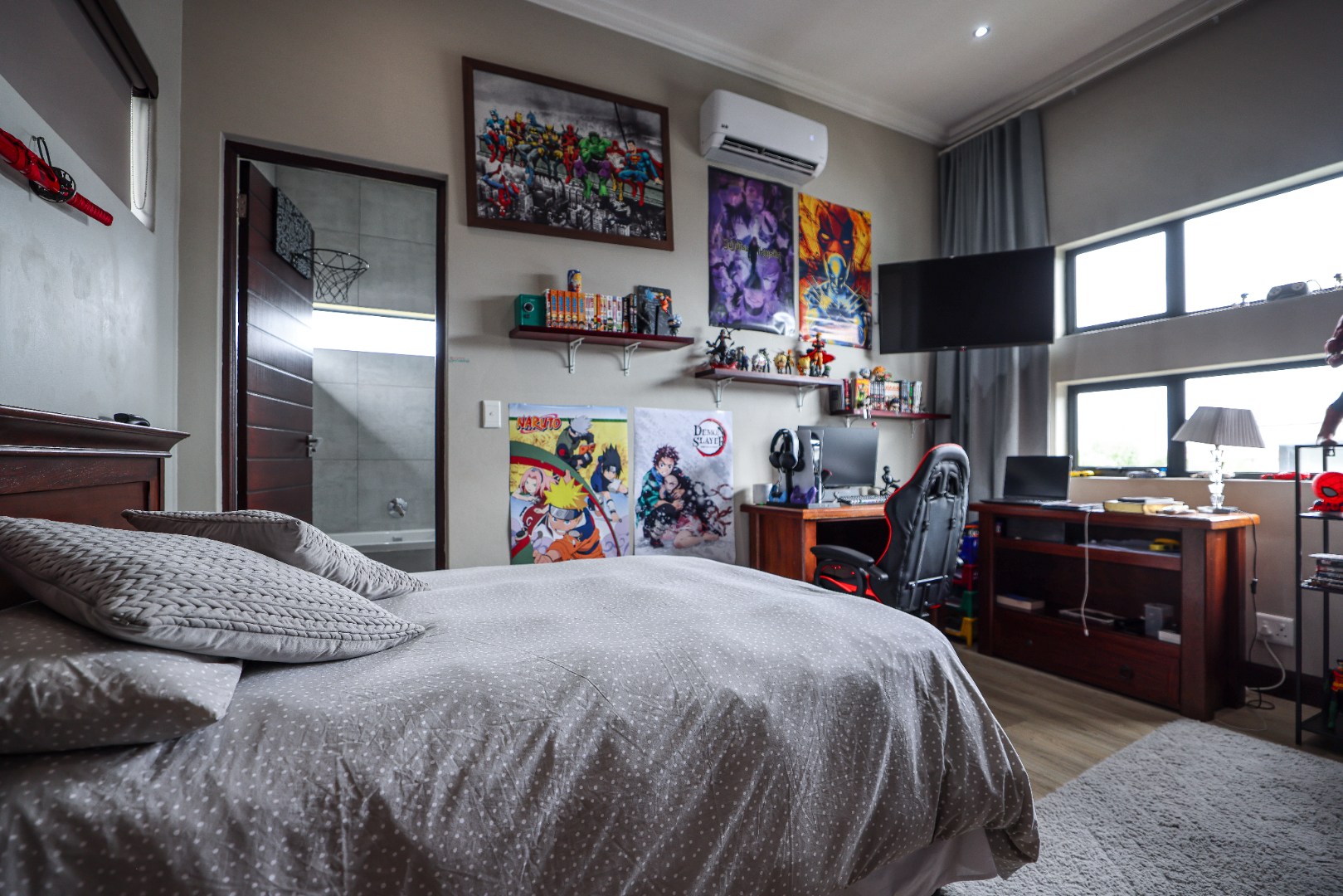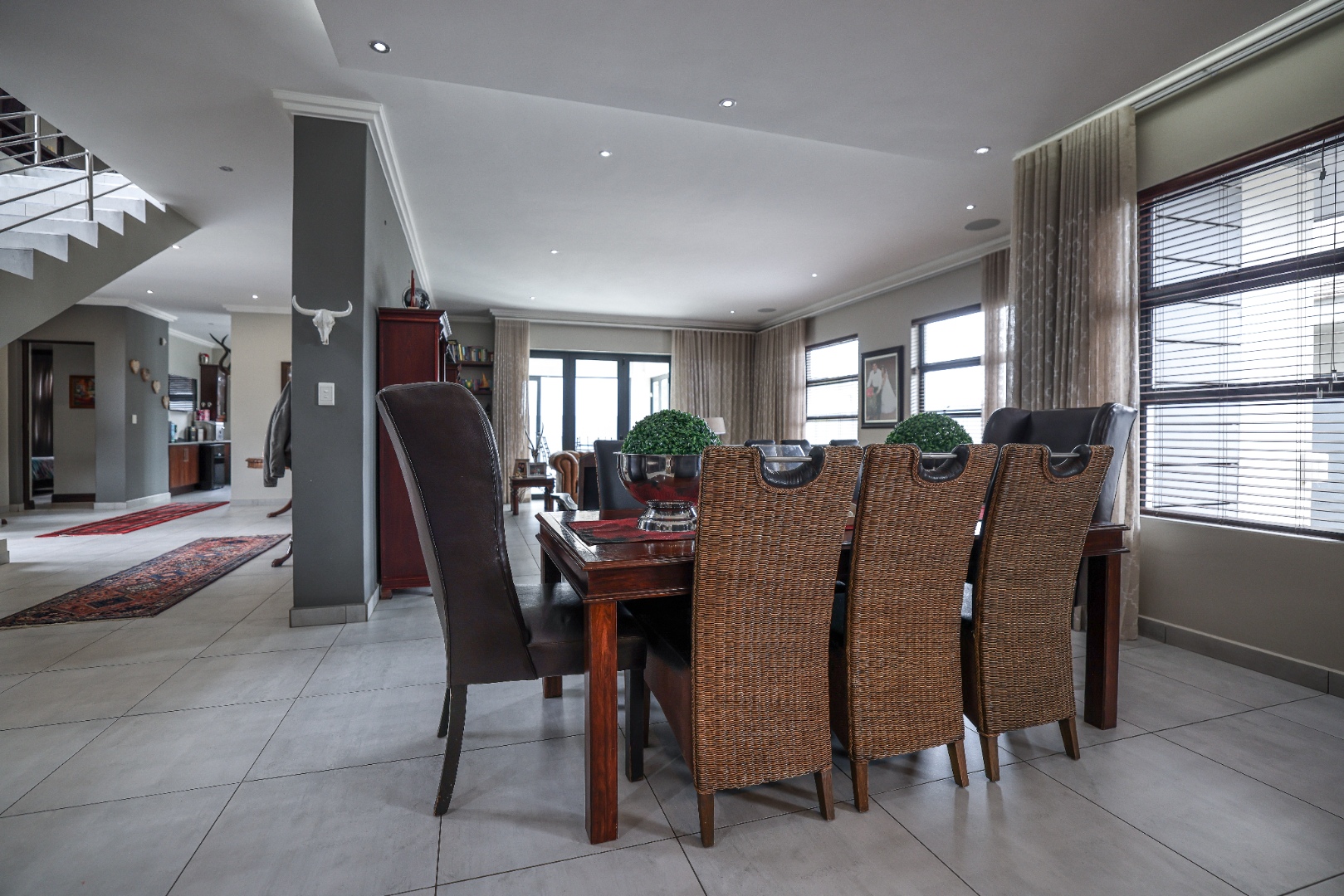 Beyond the interiors, the home extends into a lifestyle of leisure and sophistication, with a heated pool, landscaped gardens, and serene views of the estate’s lakes and greenery. Domestic quarters add convenience, while solar power, a borehole, and a water tank ensure sustainable living without compromise.