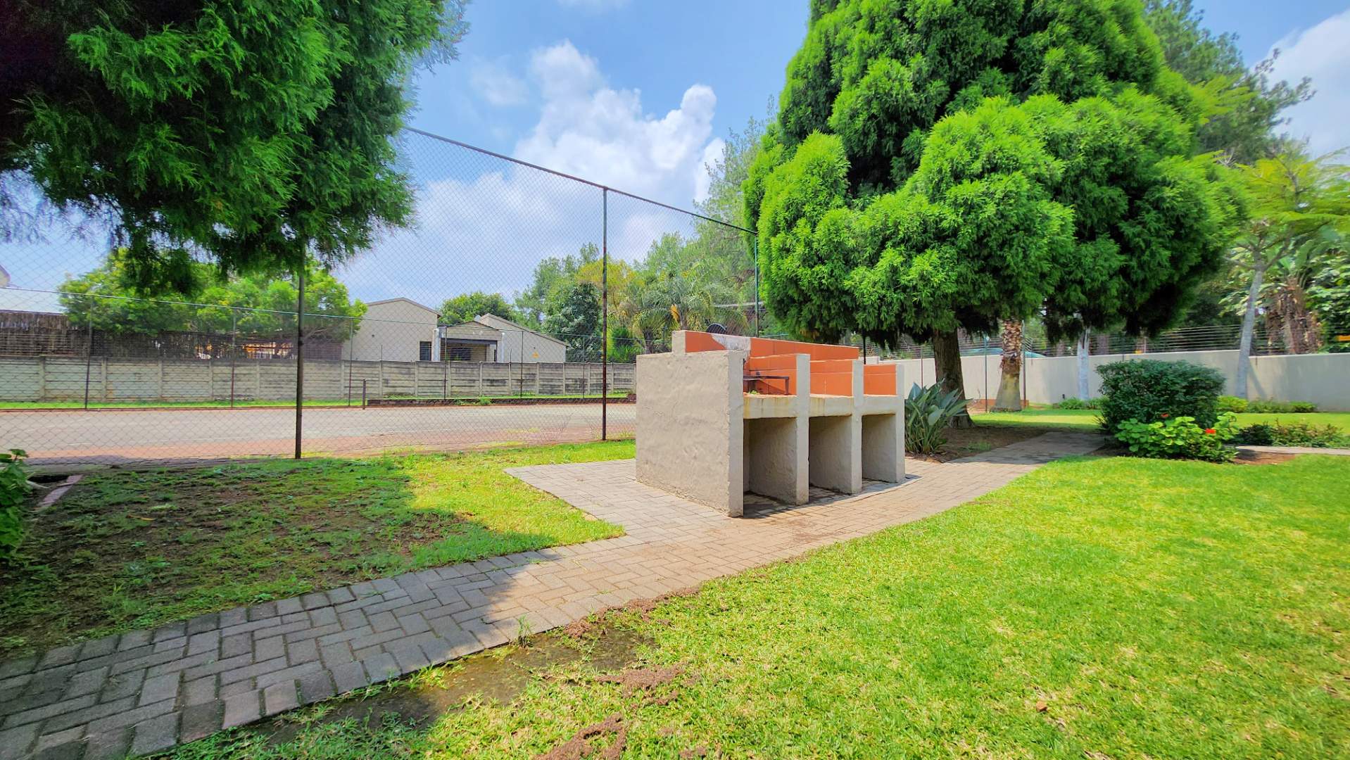 Enjoy the swimming pool and garden, perfect for relaxation and entertaining. The property includes a dedicated parking bay and is pet-friendly. Residents also benefit from a communal braai area for social gatherings. Additional security features like burglar bars and security gates complement the estate's comprehensive measures. Situated in the desirable Lynnwood Glen suburb, this home offers convenient access to local amenities and the vibrant city life of Pretoria.