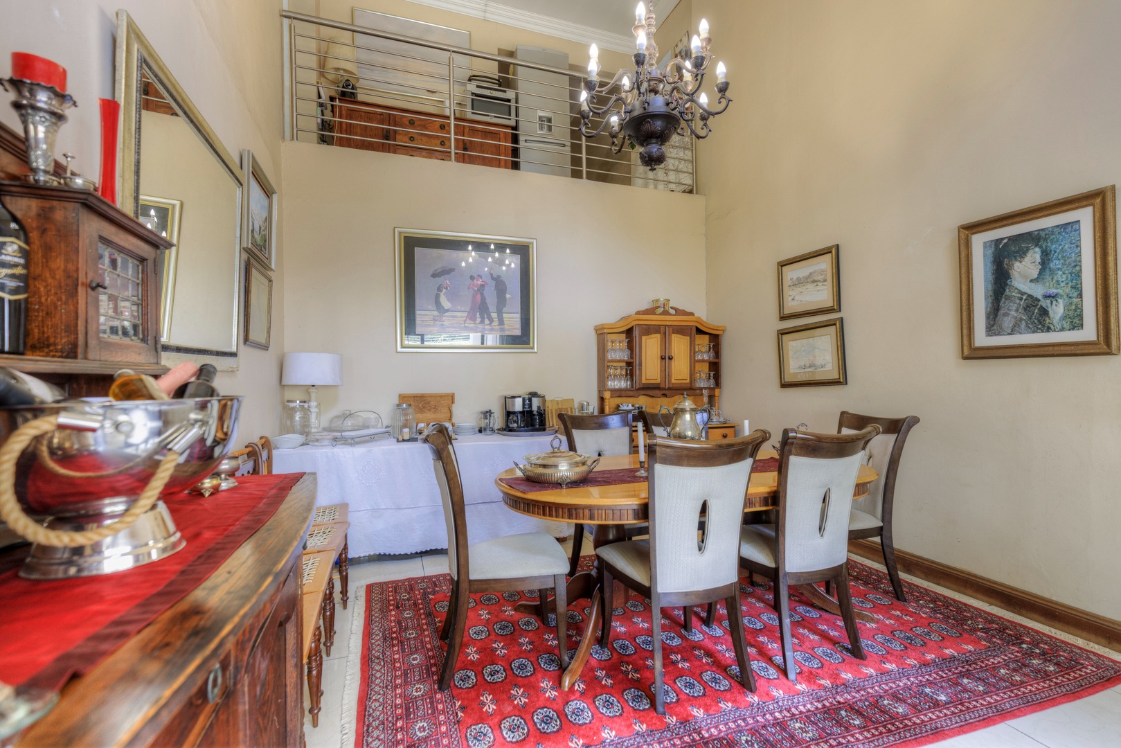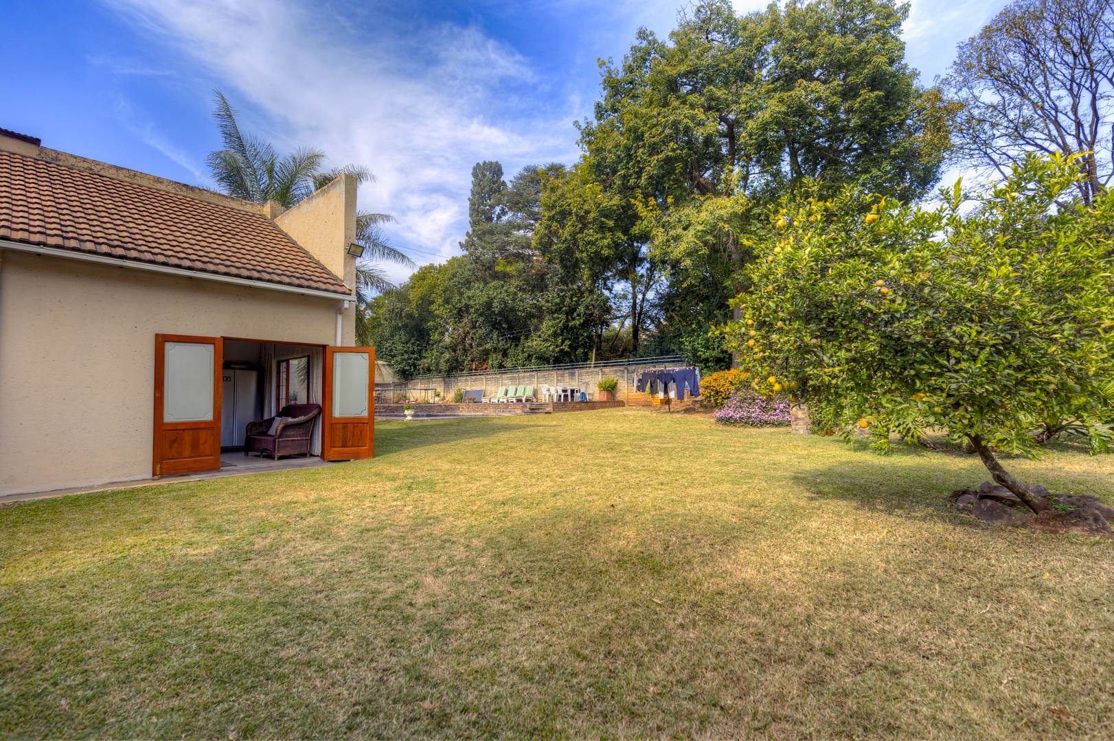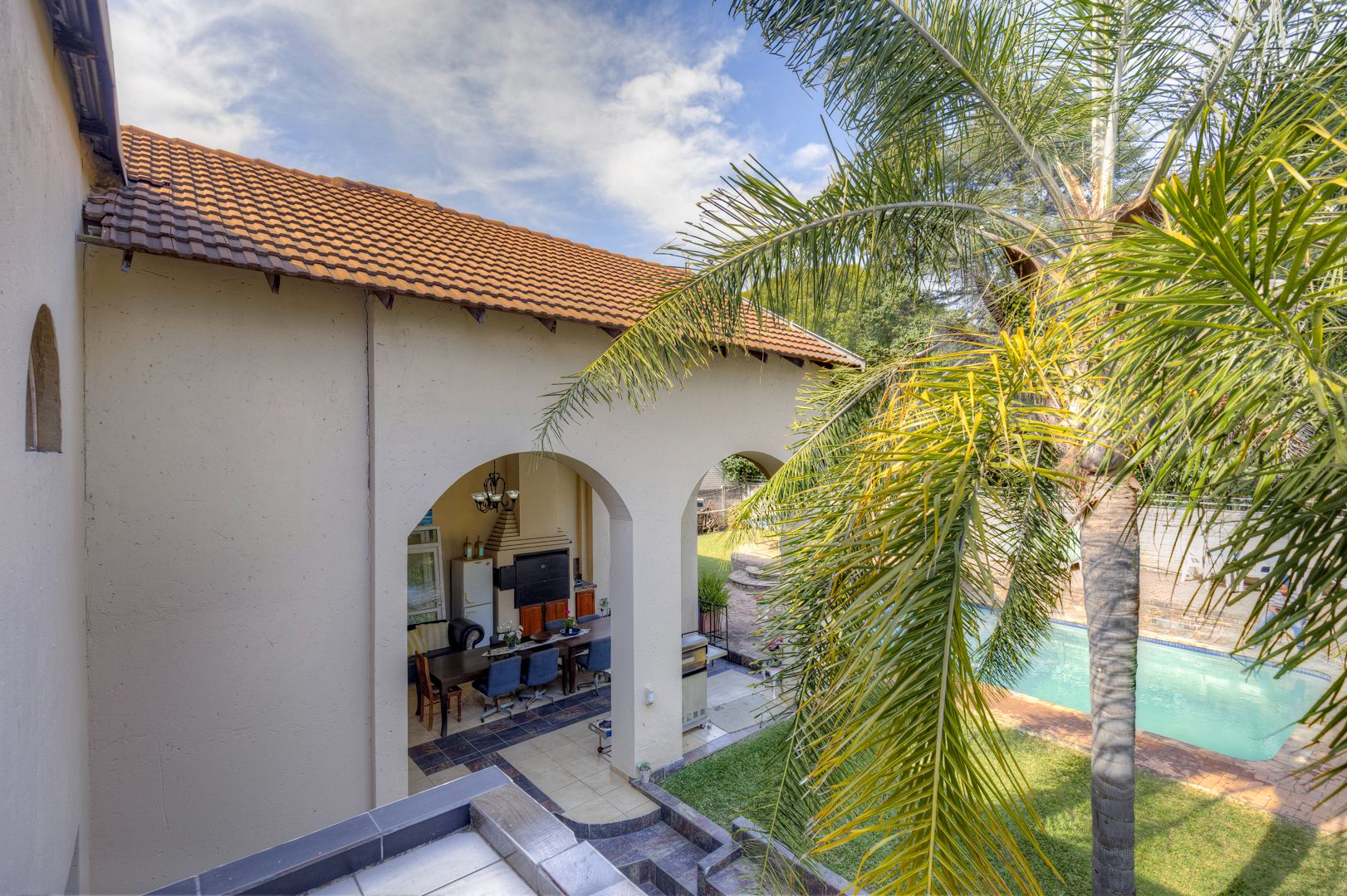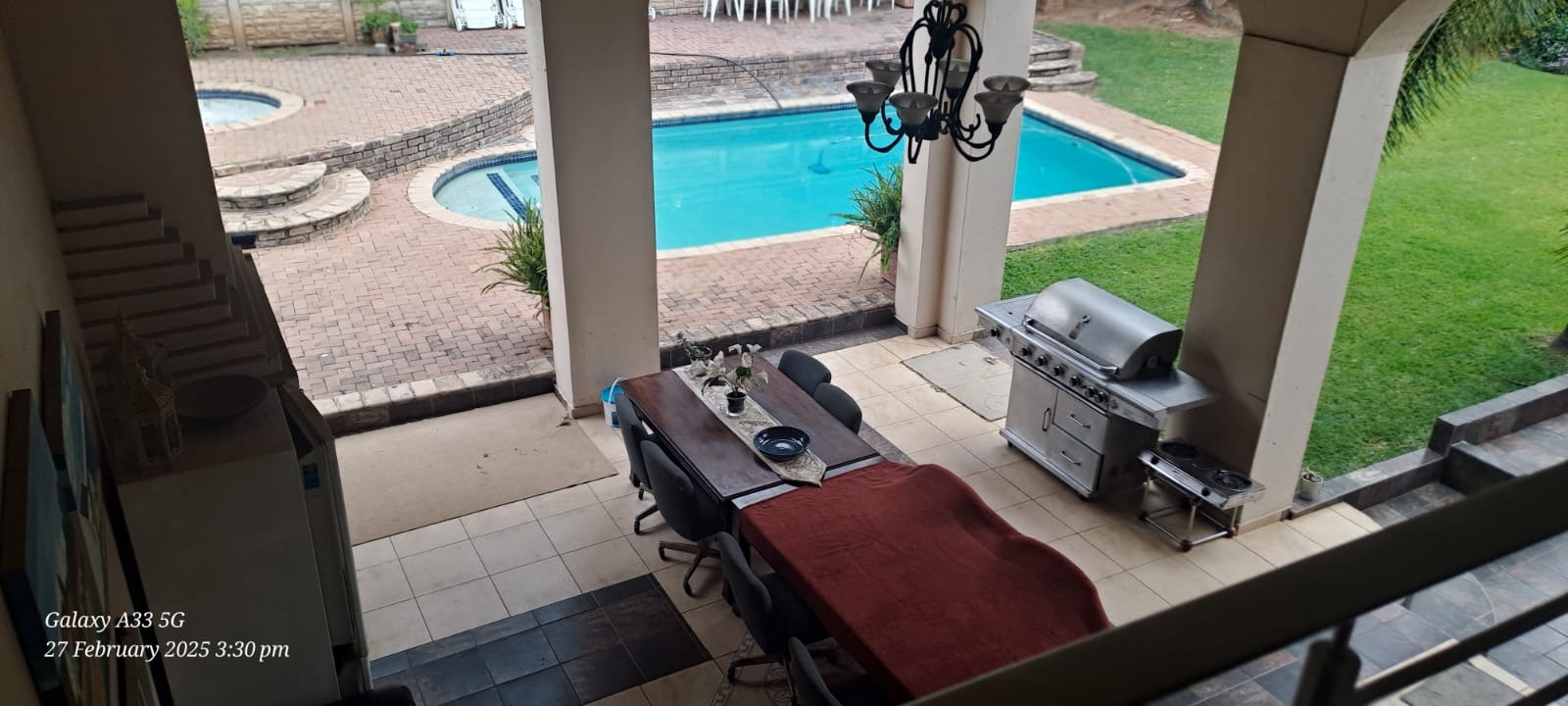 This beautiful spacious property has so much potential and can work for so many requirements without changes to the existing buildings. This is not a renovated property but re-constructed from the ground up to offer the following layout. Eight double bedrooms, each with their own en-suite bathroom and solid wood double door private access to the garden. An impressively spacious reception room that can be used as a high-class reception space or used as a lounge or entertainment hall. A separate TV/ Lounge area spacious enough to cater for all the family or guests. An open plan kitchen catering to two dining areas all looking out onto the garden. Upstairs, you have two other private and very spacious bedrooms with en-suite bathroom and walk in closet. On the one side is the main suit and in between the main and second en-suite room on the top area, a convenient coffee station area to serve the two top units. The entertainment rooms all lead onto an impressive double volume covered patio for glamorous entertainment and enough space to cater for the all the family or house guests as well as friends and family. This space features a double sized gas build in braai and caters for serious entertainment. The space then have access to the garden and lovely extra big pool with its own cute kiddies pool. Separate to the main house and built on top of the five garages are a full-sized separate flatlet with space for lounge, dining, kitchen, bedroom and bathroom. It features its own balcony and private entrance.